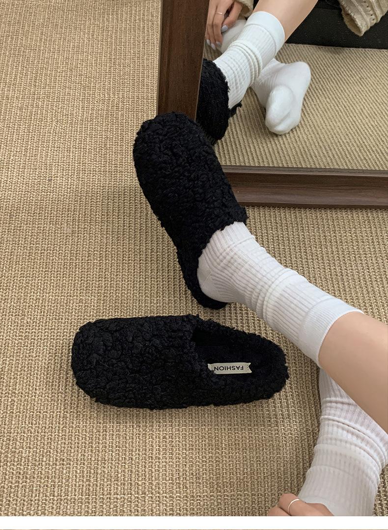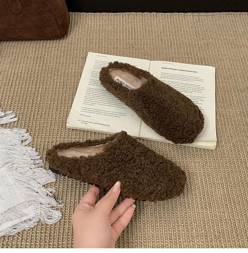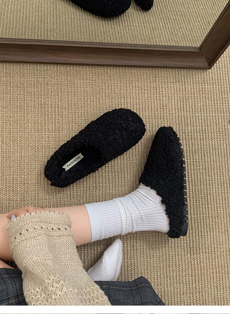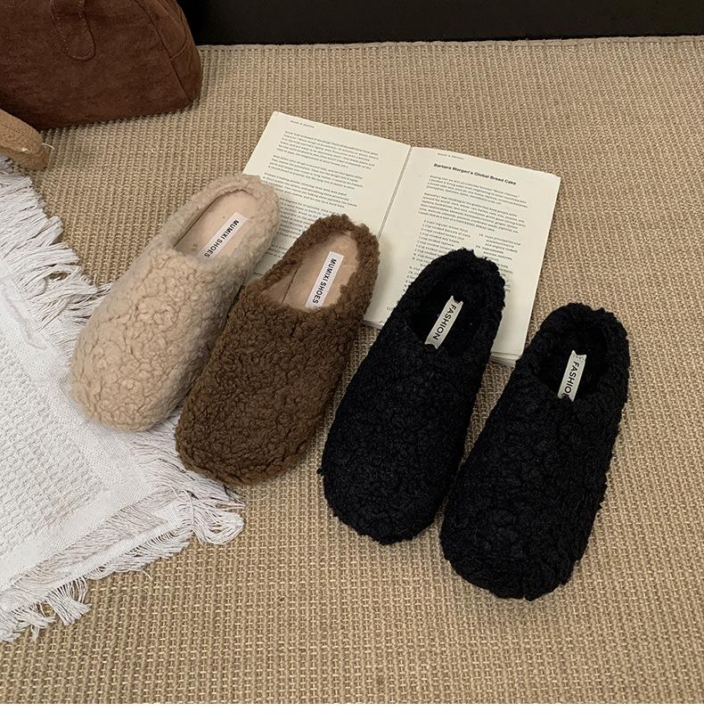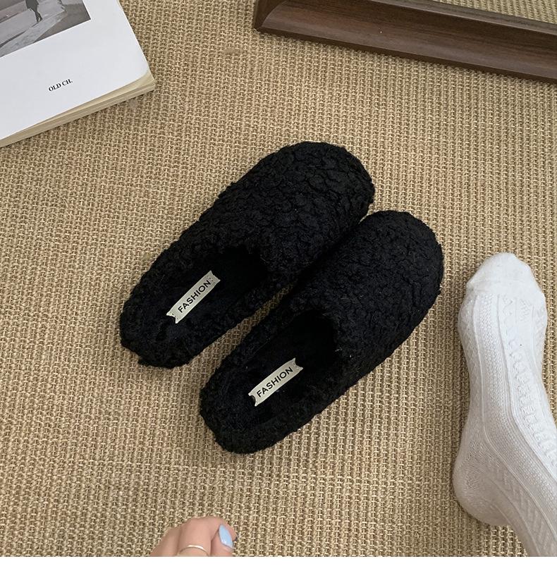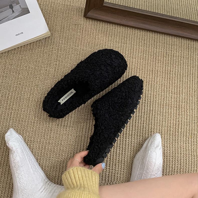Compra Zapatillas planas peludas negras estilo reina francés para mujer para usar en exteriores 2025 nuevo otoño e invierno para combinar con vestido suela suave zapatillas de algodón al por mayor en Joom.pro