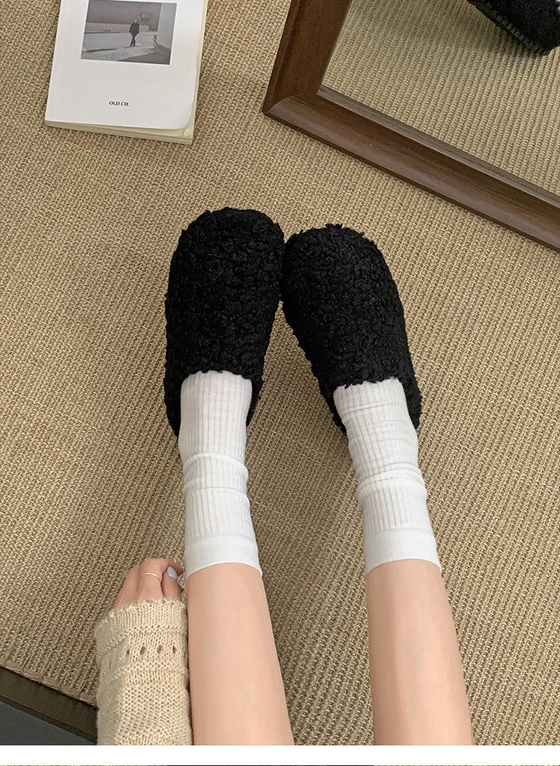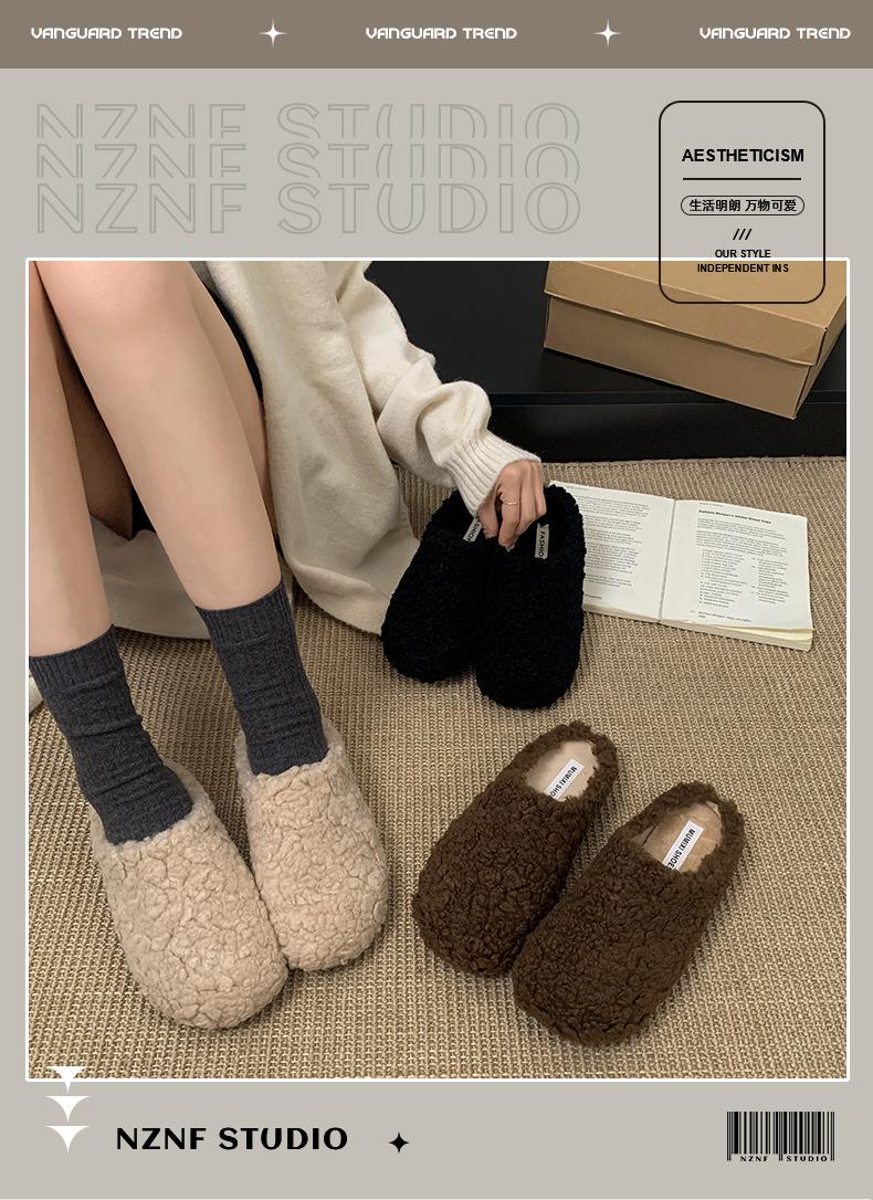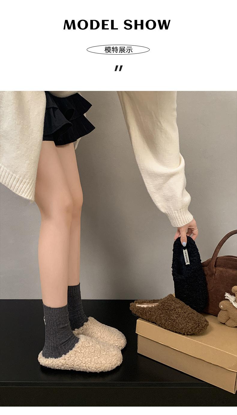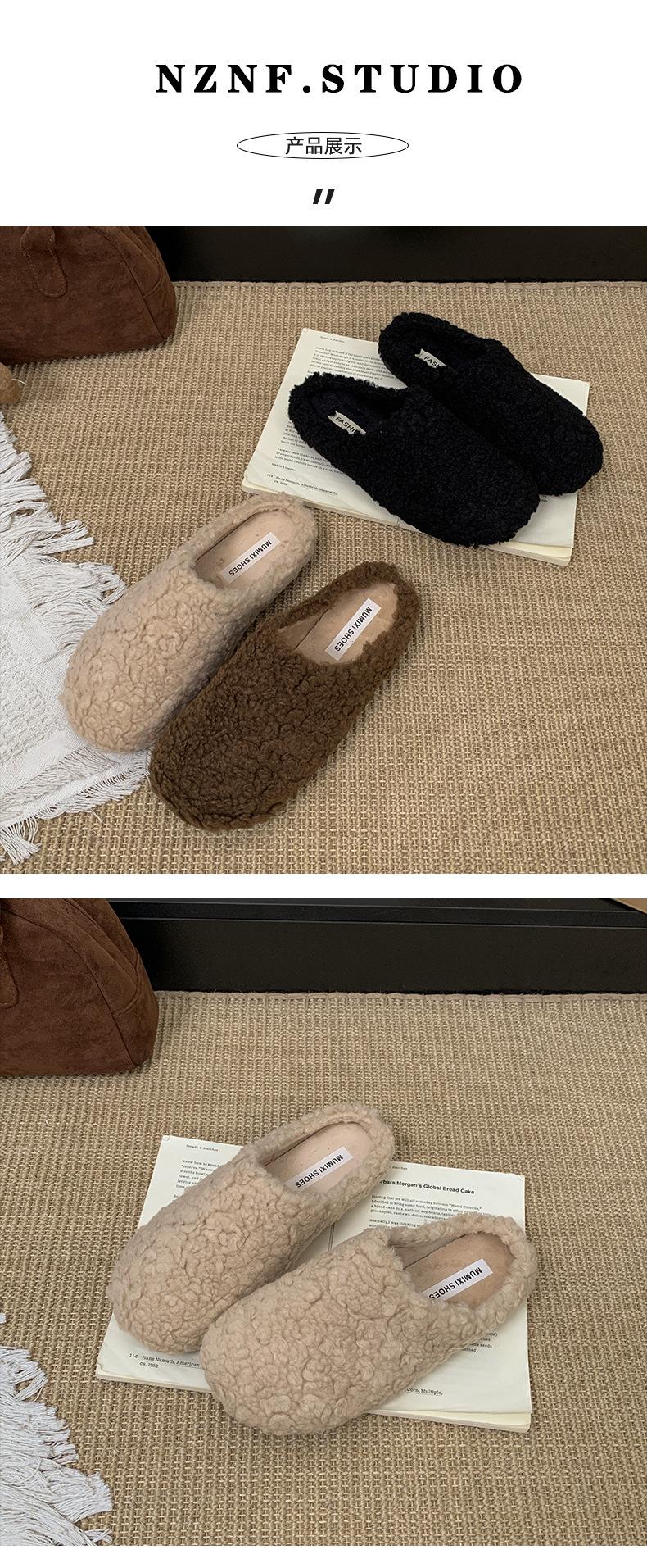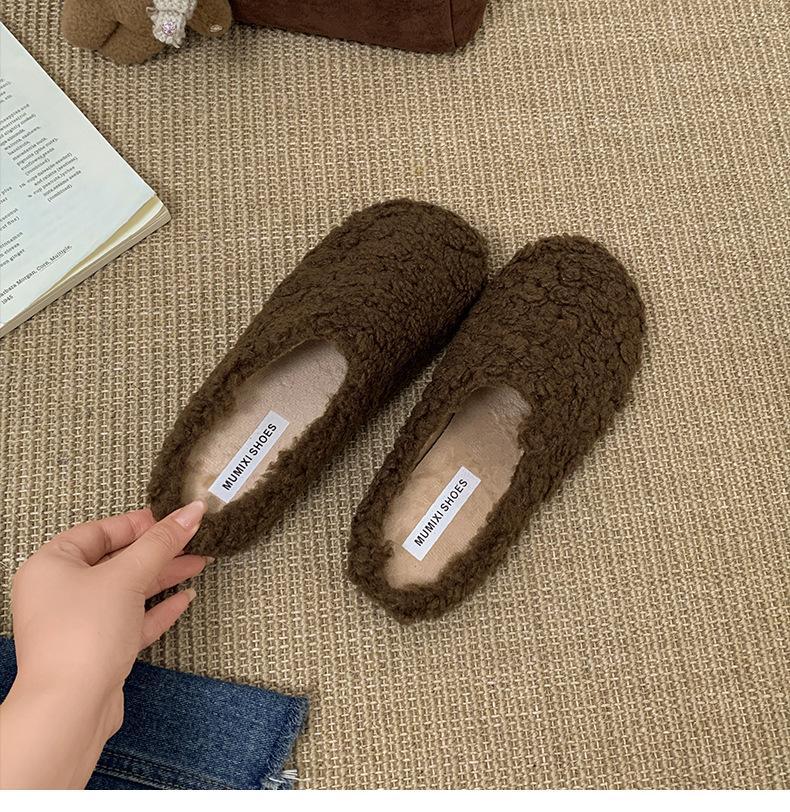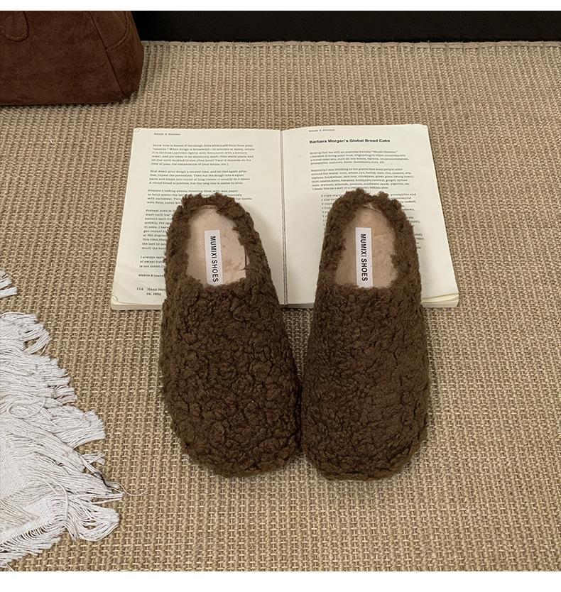 Compra Zapatillas planas peludas negras estilo reina francés para mujer para usar en exteriores 2025 nuevo otoño e invierno para combinar con vestido suela suave zapatillas de algodón al por mayor en Joom.pro
