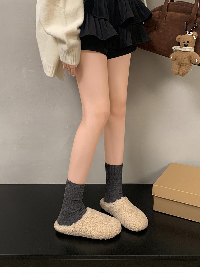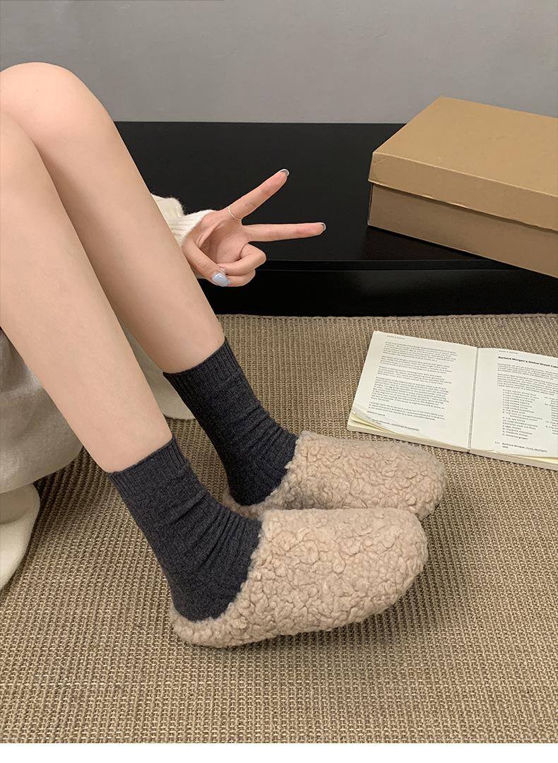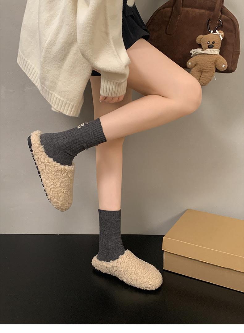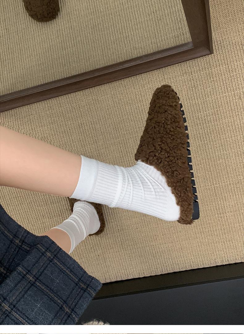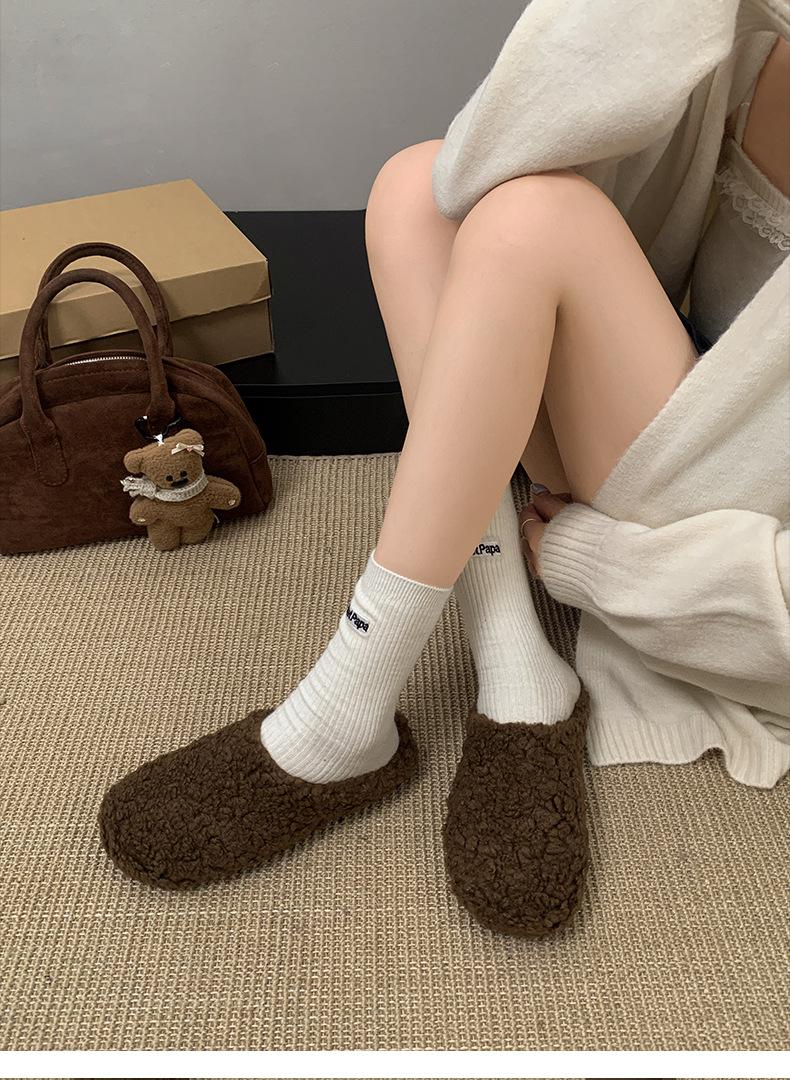 Compra Zapatillas planas peludas negras estilo reina francés para mujer para usar en exteriores 2025 nuevo otoño e invierno para combinar con vestido suela suave zapatillas de algodón al por mayor en Joom.pro