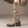 Botas altas hasta la rodilla de punta cuadrada para mujer 2025 Otoño/Invierno Nueva Moda Versátiles Botas de Caballero Tacón Grueso Botas Slouch Modernas