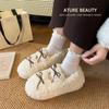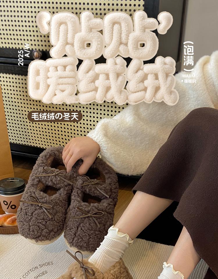 Pantuflas de Algodón para Mujer Otoño e Invierno 25 Nuevas Cálidas Antideslizantes Zapatos de Confinamiento para el Hogar Interior Zapatos de Algodón para Mujer Invierno Cubretalón Suela Gruesa