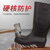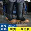 Botas de Lluvia para Hombre de Caña Alta Negras Engrosadas Puntera de Acero Escarchada Suela de Acero Antiperforación Botas de Goma Antideslizantes para Sitio de Construcción Zapatos de Protección Laboral Resistentes al Desgaste