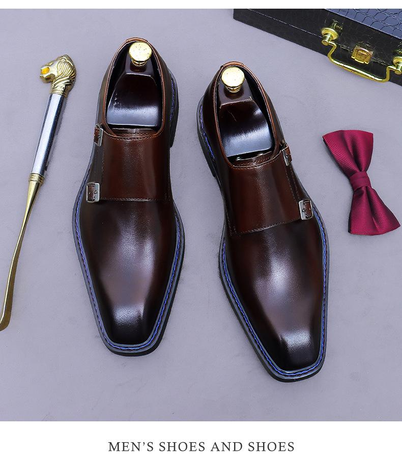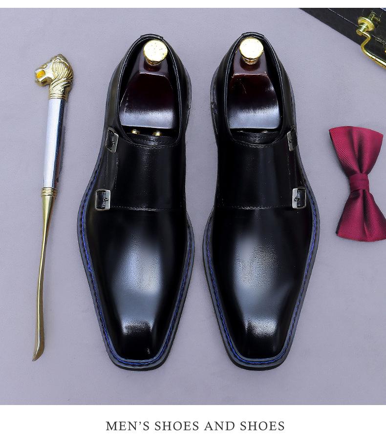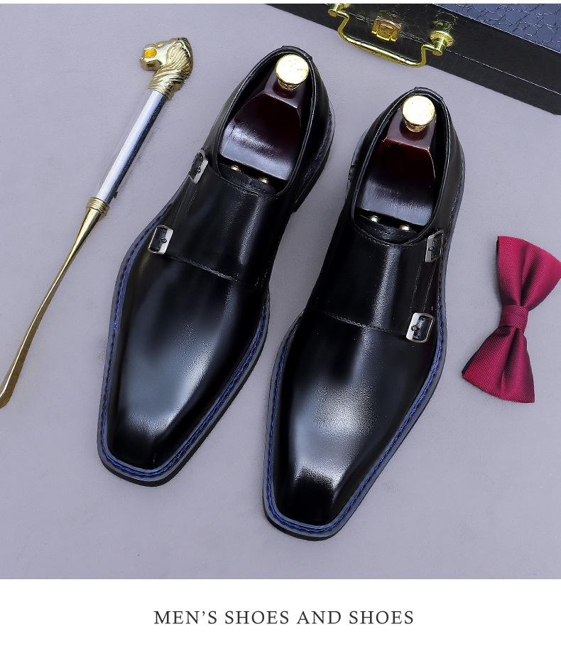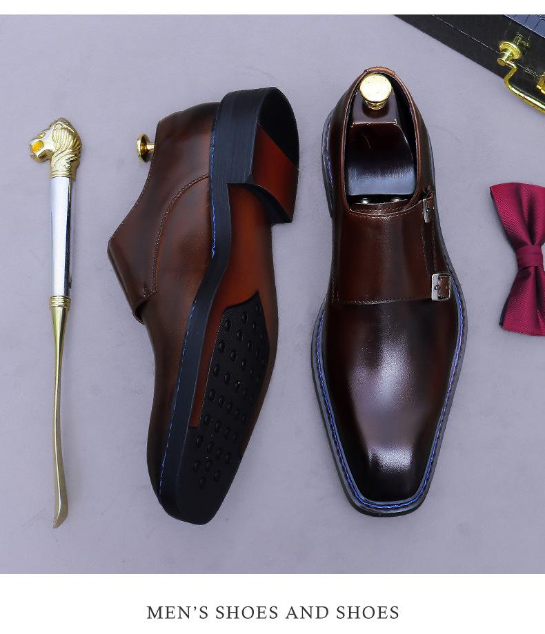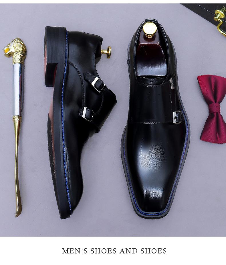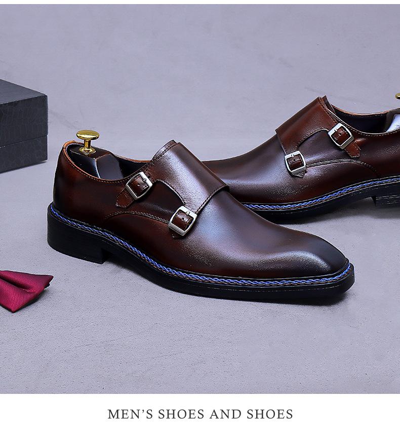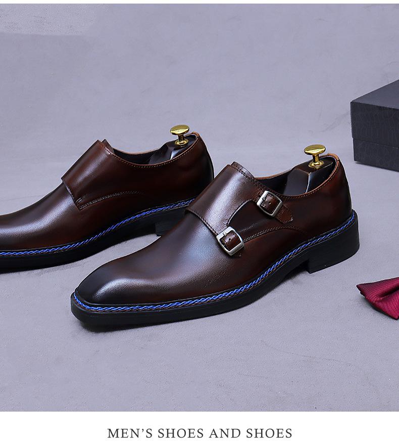 Zapatos de Vestir de Hebilla para Hombre de Cuero Genuino de Piel de Vaca para Negocios Talla Extra Zapatos de Oficina Estilo Británico Moda Set Zapatos de Goma