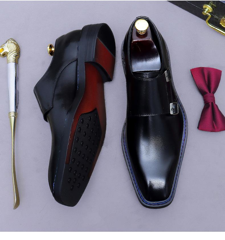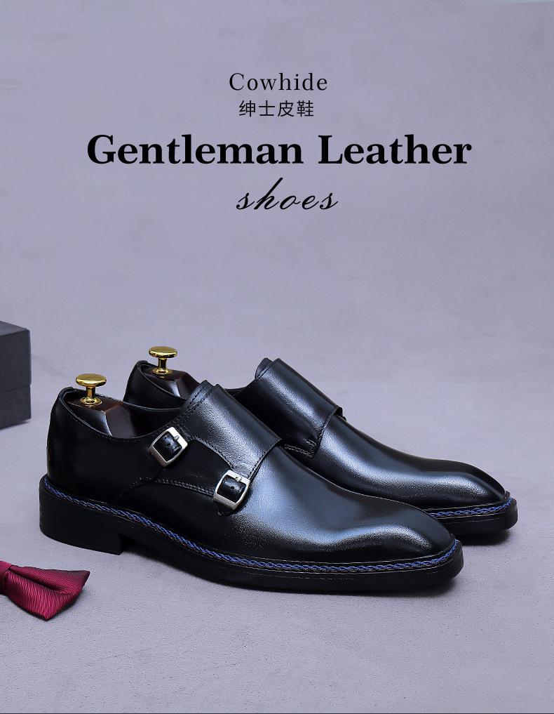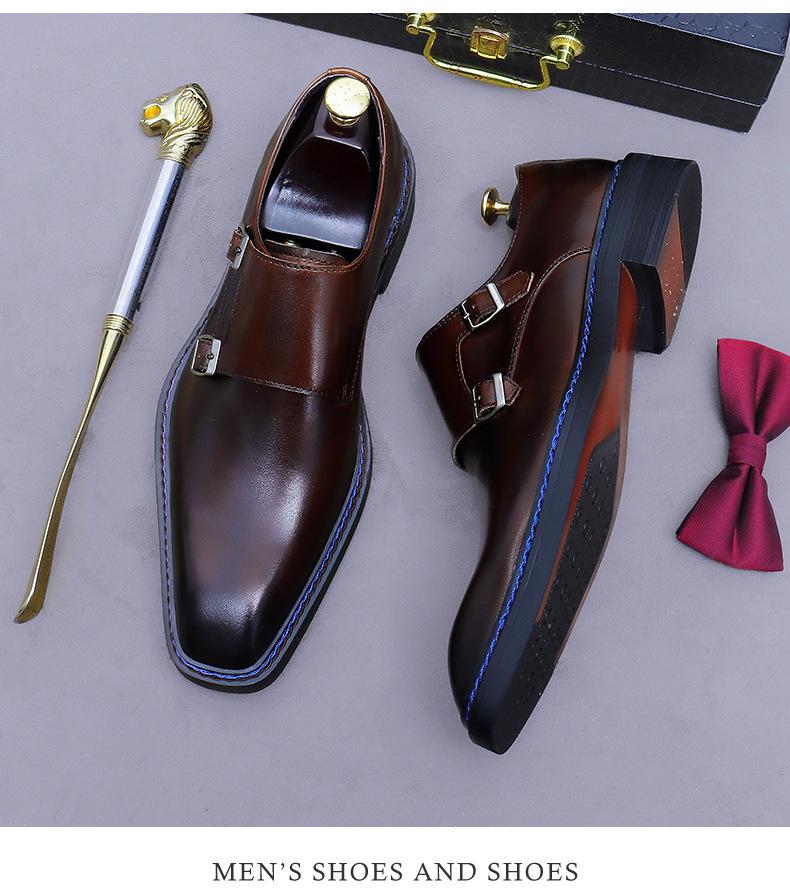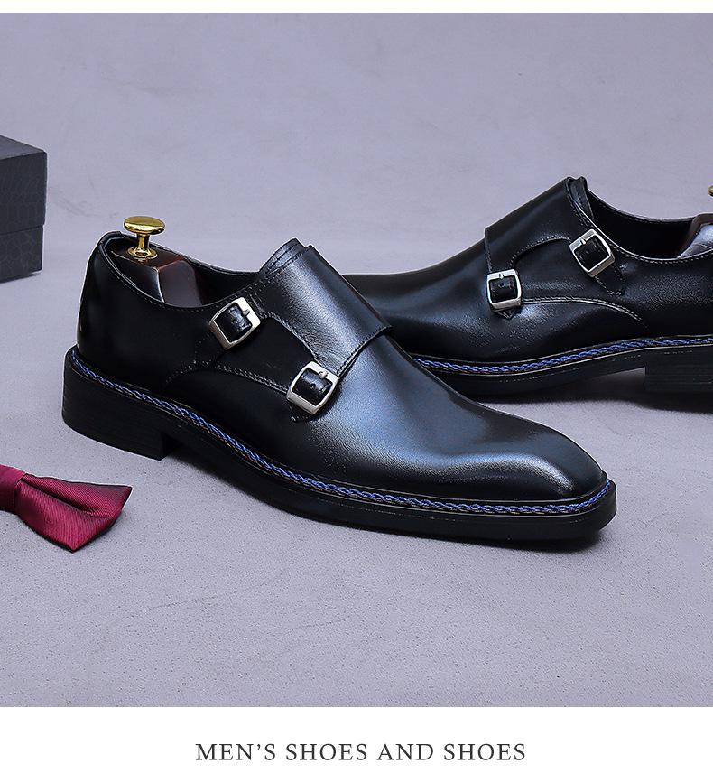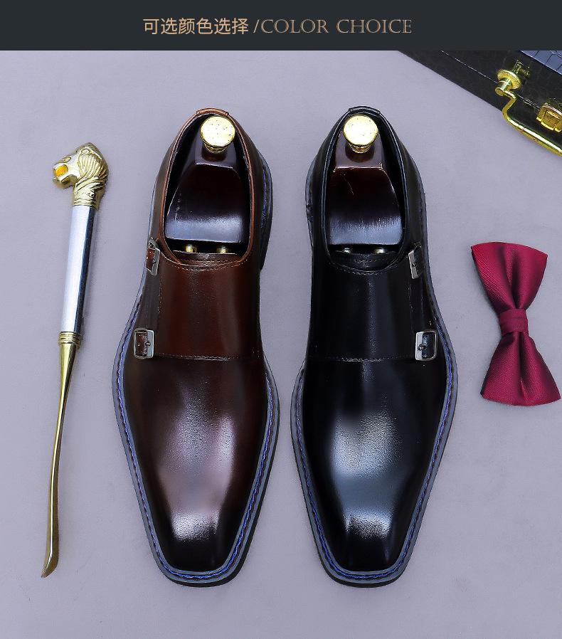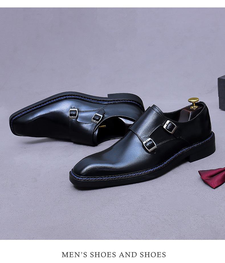 Zapatos de Vestir de Hebilla para Hombre de Cuero Genuino de Piel de Vaca para Negocios Talla Extra Zapatos de Oficina Estilo Británico Moda Set Zapatos de Goma