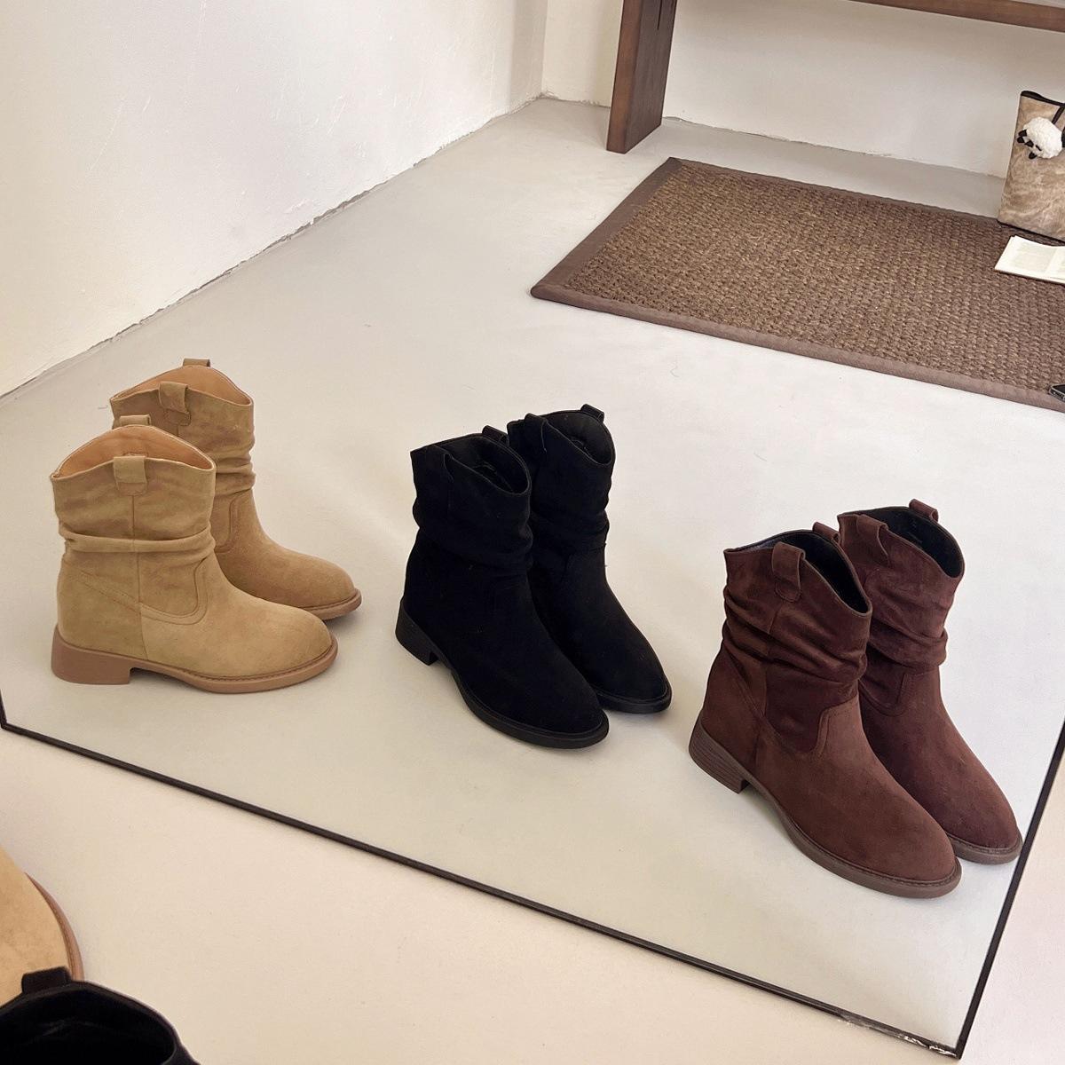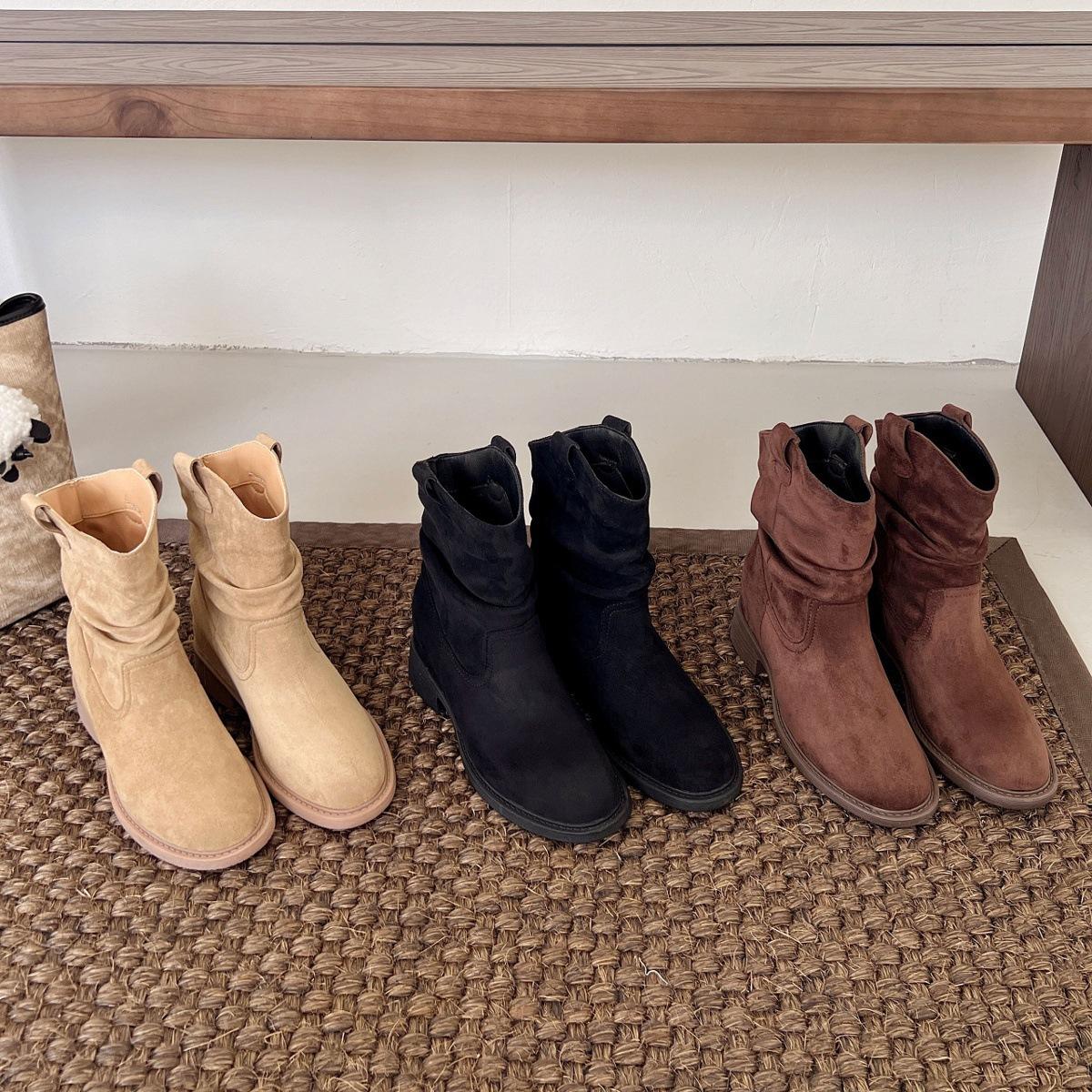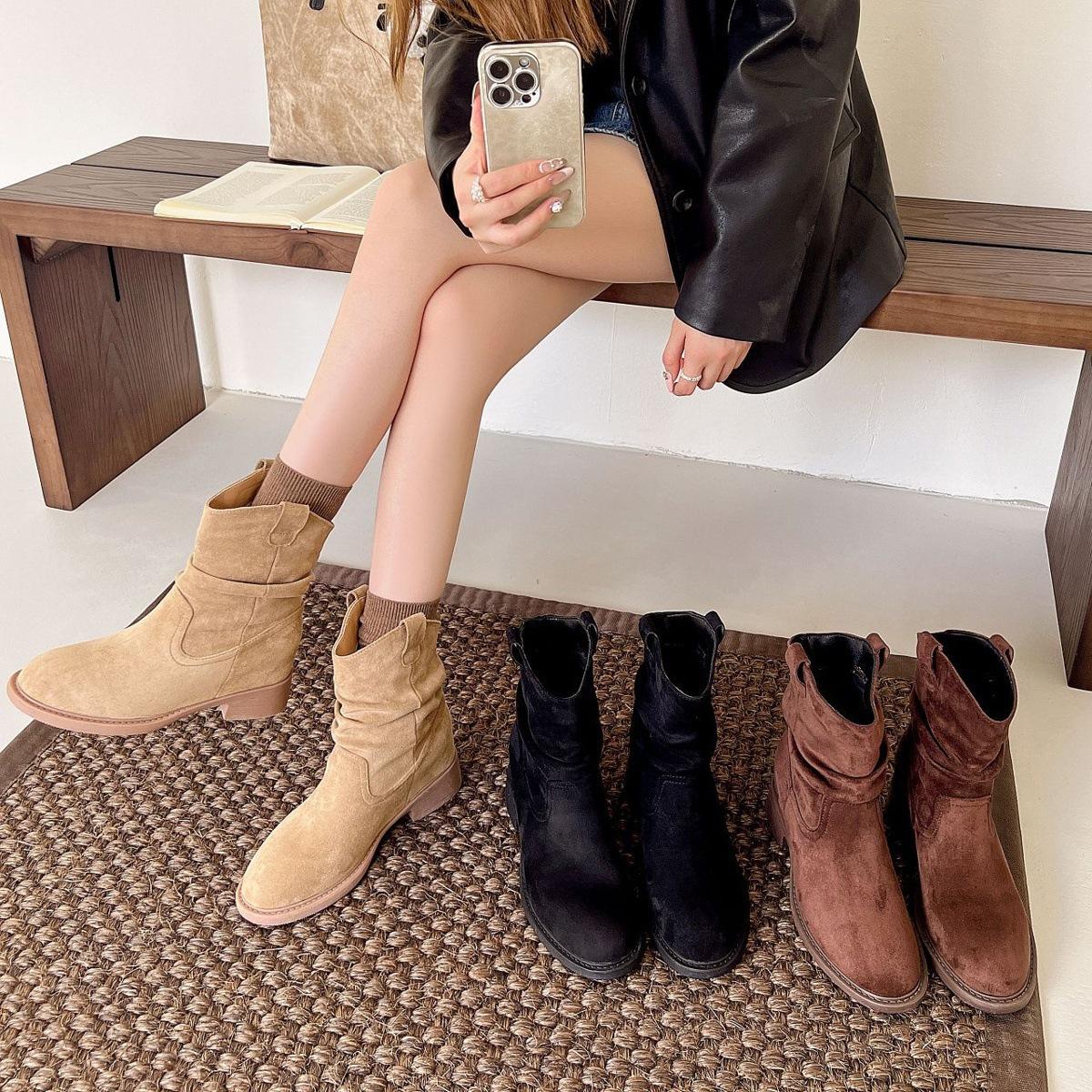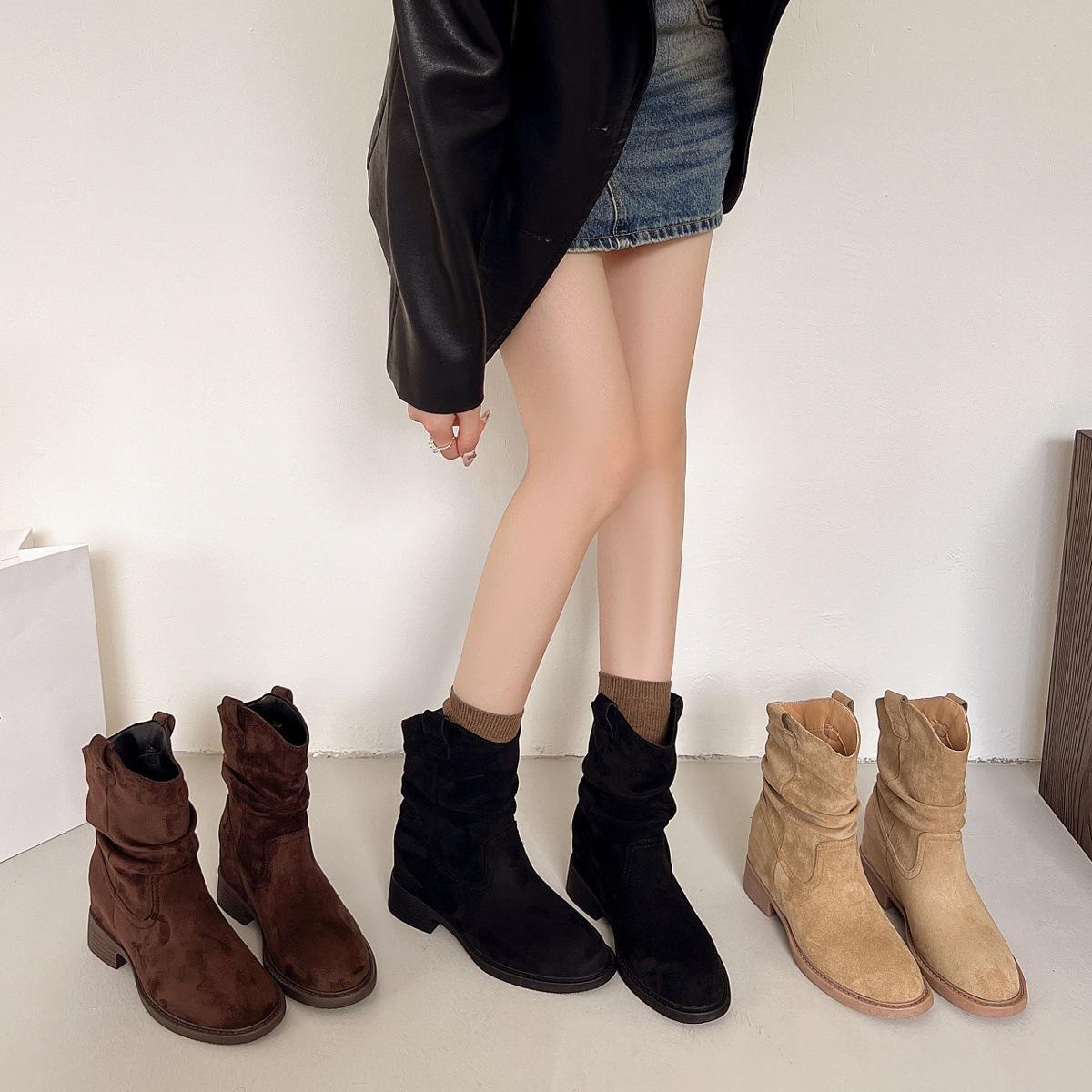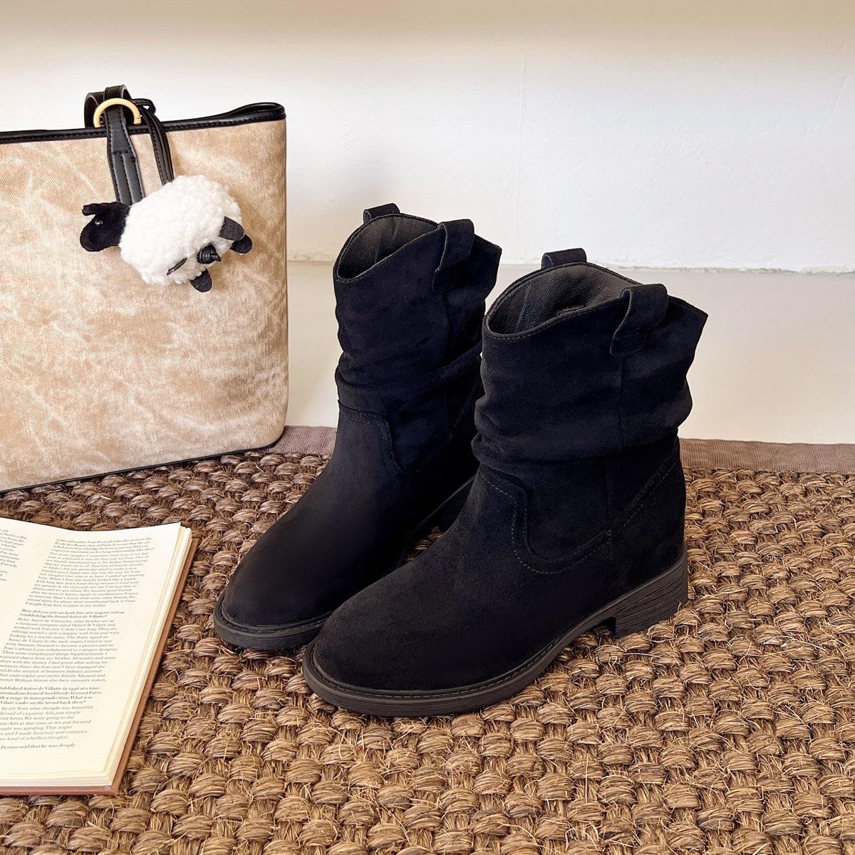 Botas Vaqueras Occidentales Otoño/Invierno 2025 Botas Merlot Botas de Media Caña Versátiles Botas de Tacón Apilado Elásticas
