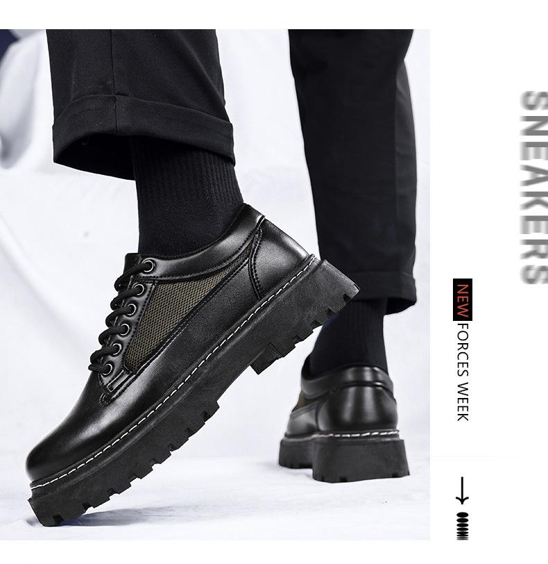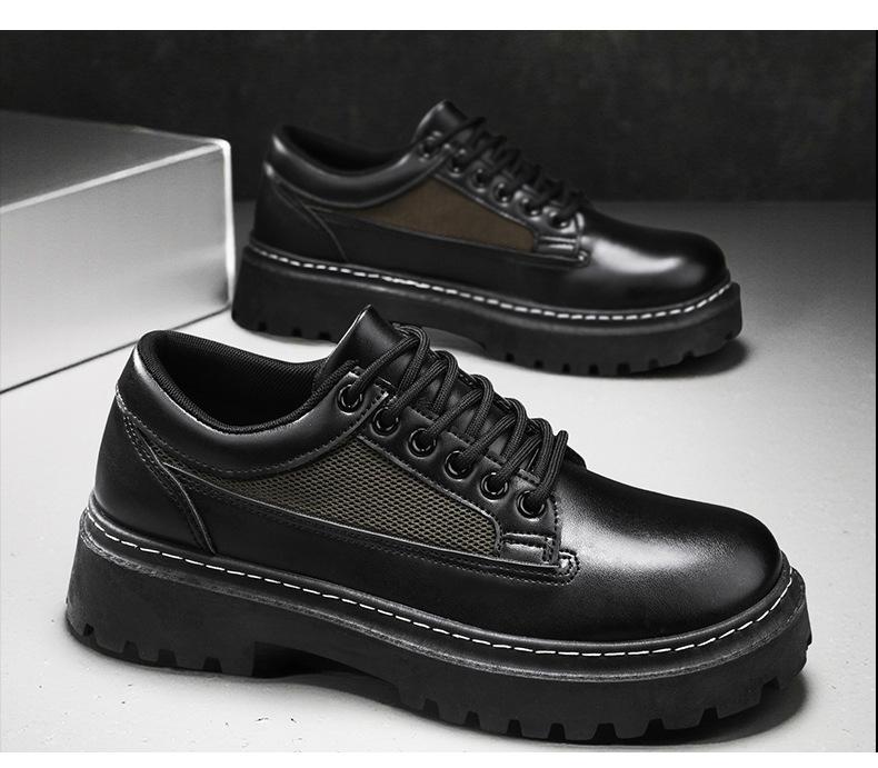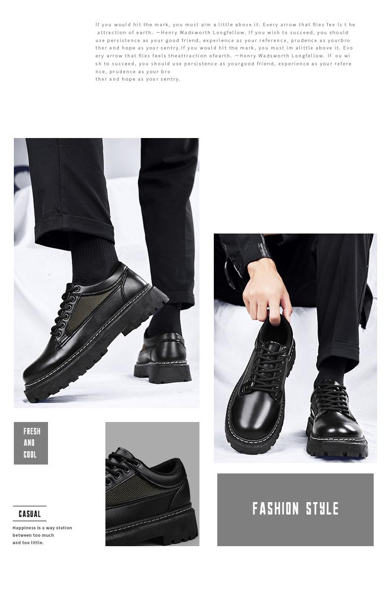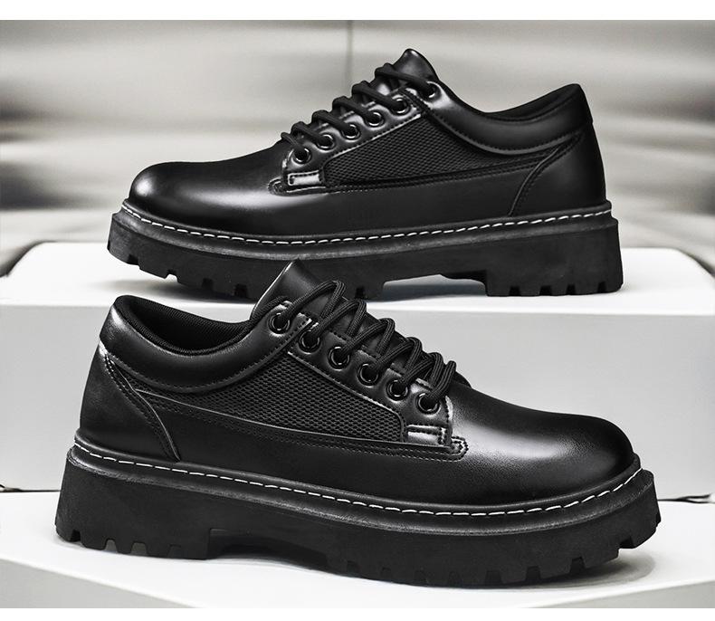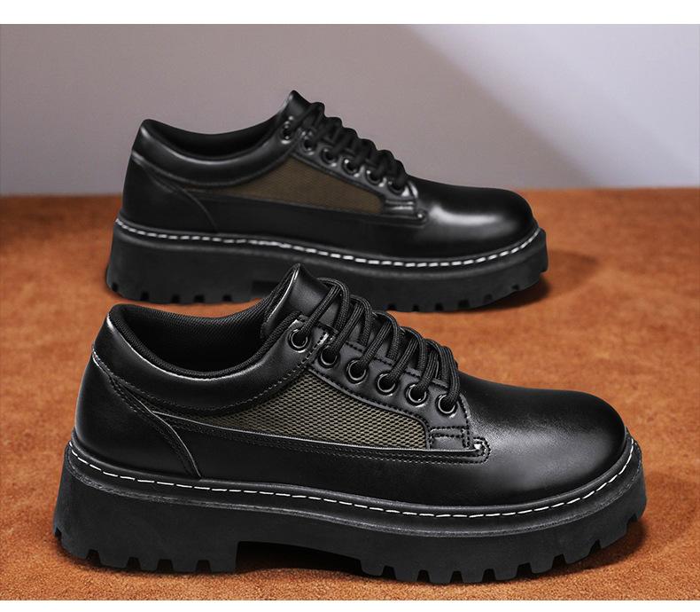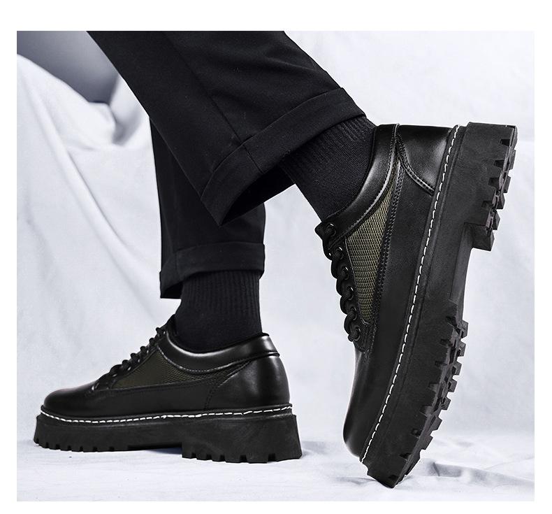 Zapatos de Hombre 2025 Verano Nuevo Moda Hombre Malla Transpirable Estilo Británico Bajo de Caña Suela Gruesa Cabeza Grande Casual Zapatos de Cuero Marea