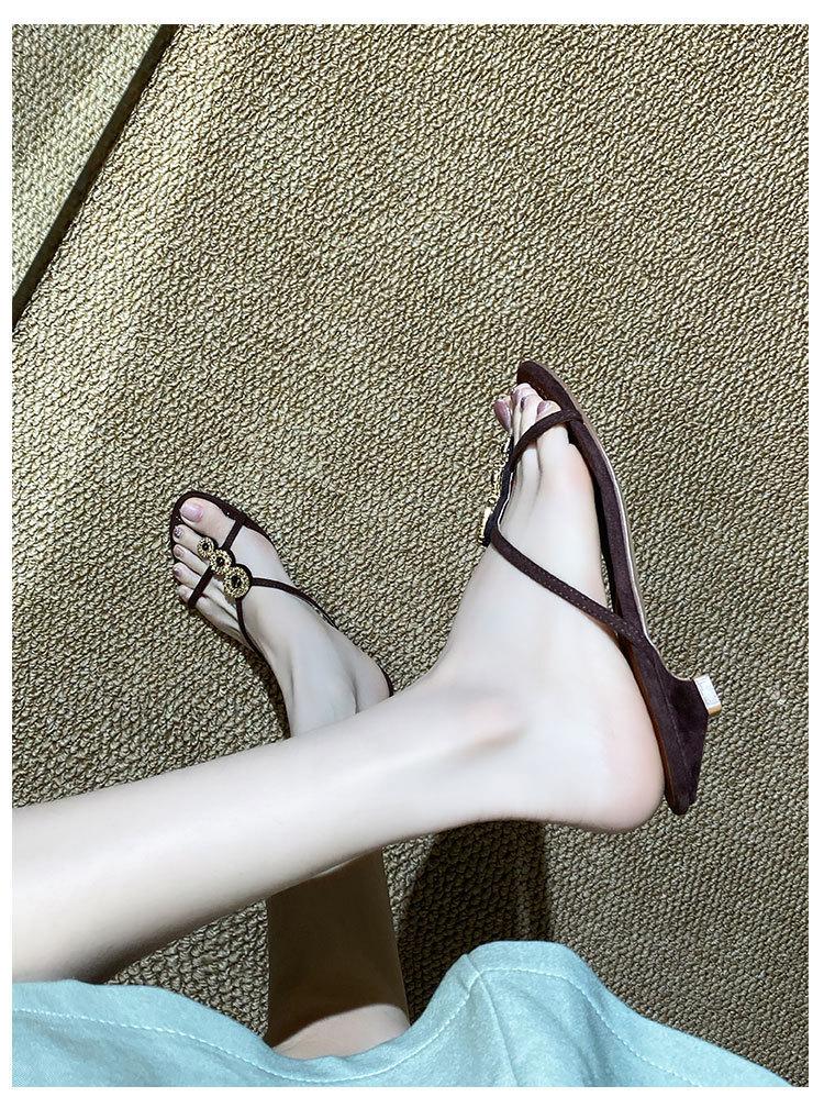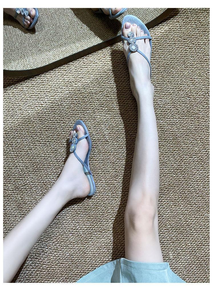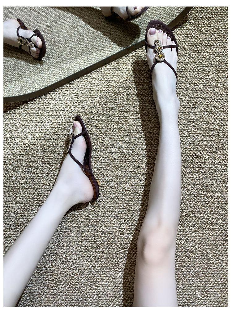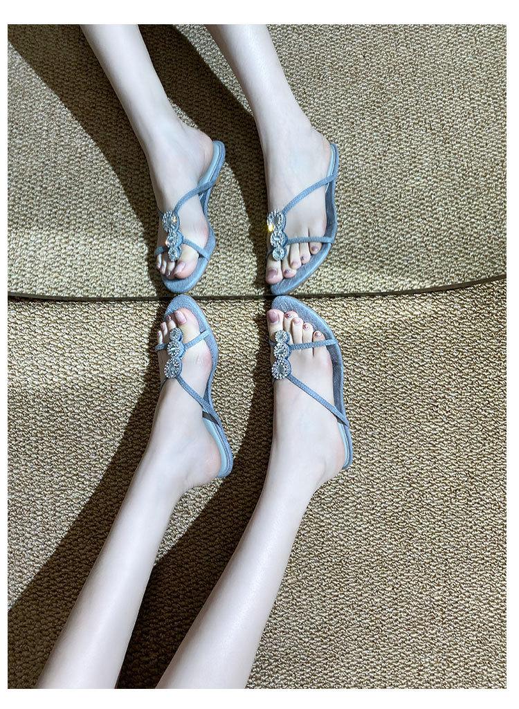 Chanclas bordadas de estilo chino, nuevas, con pedrería de piedras preciosas, tacón de gatito, zapatos de playa para uso exterior que no cansan los pies, zapatos planos