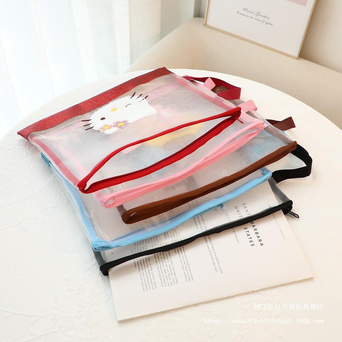 Bolsa de archivo portátil transparente de dibujos animados de gran capacidad para estudiantes, bolsa de clasificación por asignatura, bolsa para información, bolsa para hojas de examen, bolsa de almacenamiento engrosada
