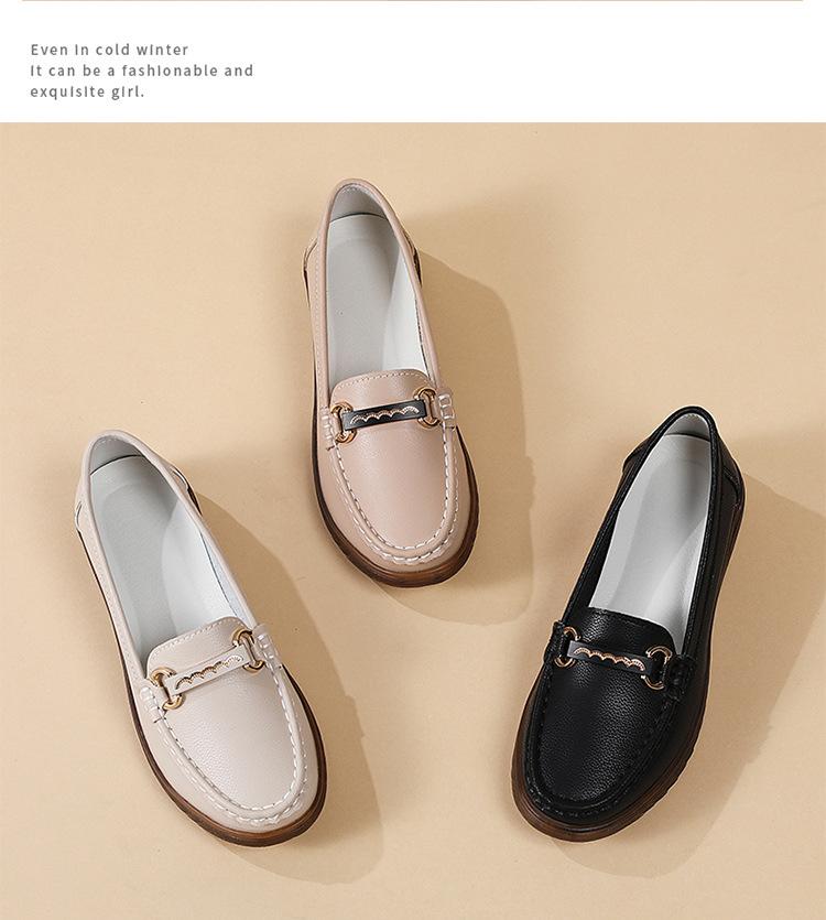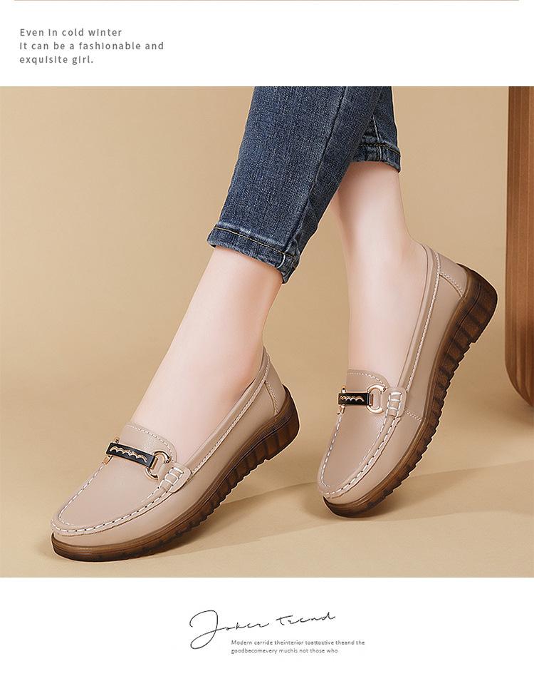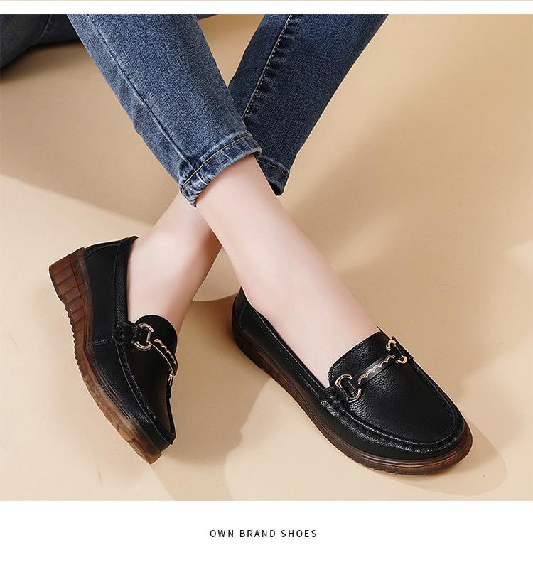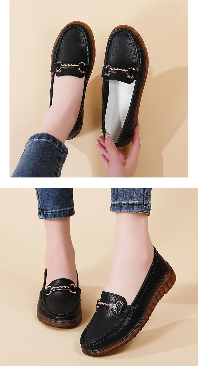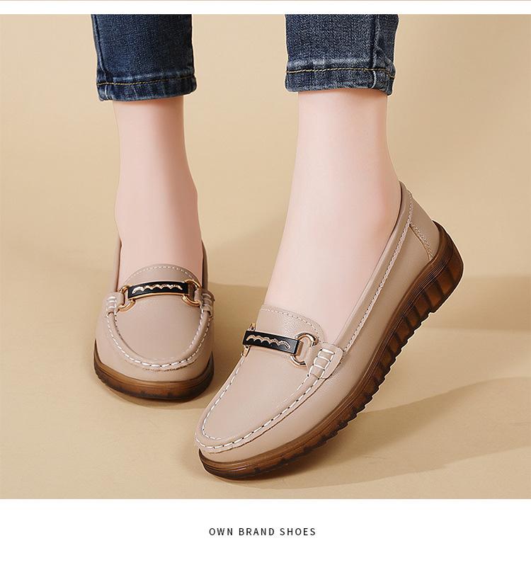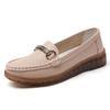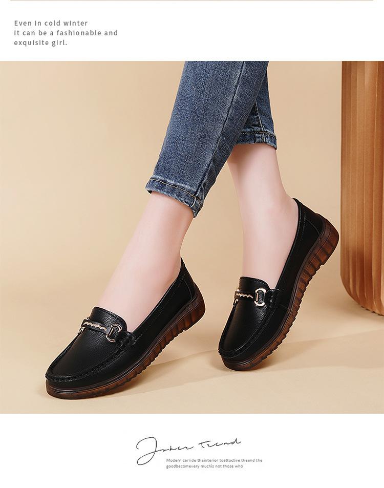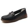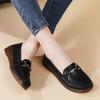 Mocasines de talla grande para mujer de otoño e invierno, hebilla metálica, transpirables, de cuero suave, zapatos para madre, suela blanda antideslizante, zapatos individuales slip-on para mujeres de mediana edad y mayores