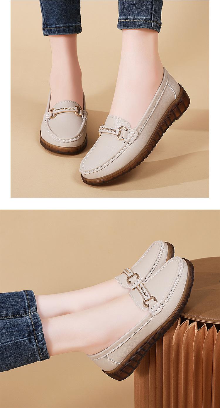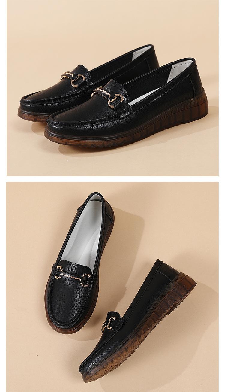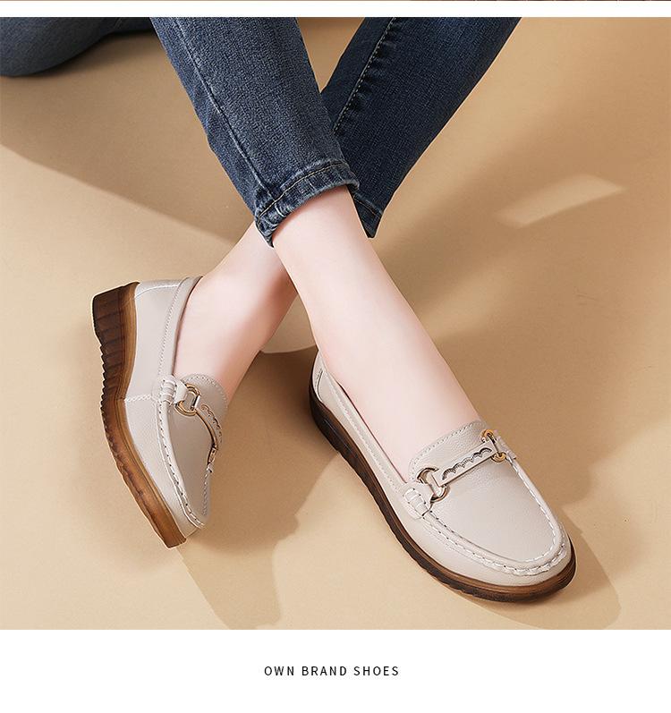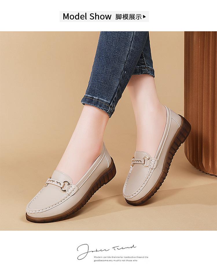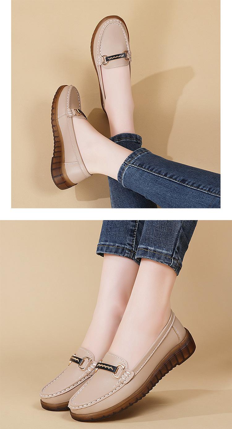 Mocasines de talla grande para mujer de otoño e invierno, hebilla metálica, transpirables, de cuero suave, zapatos para madre, suela blanda antideslizante, zapatos individuales slip-on para mujeres de mediana edad y mayores