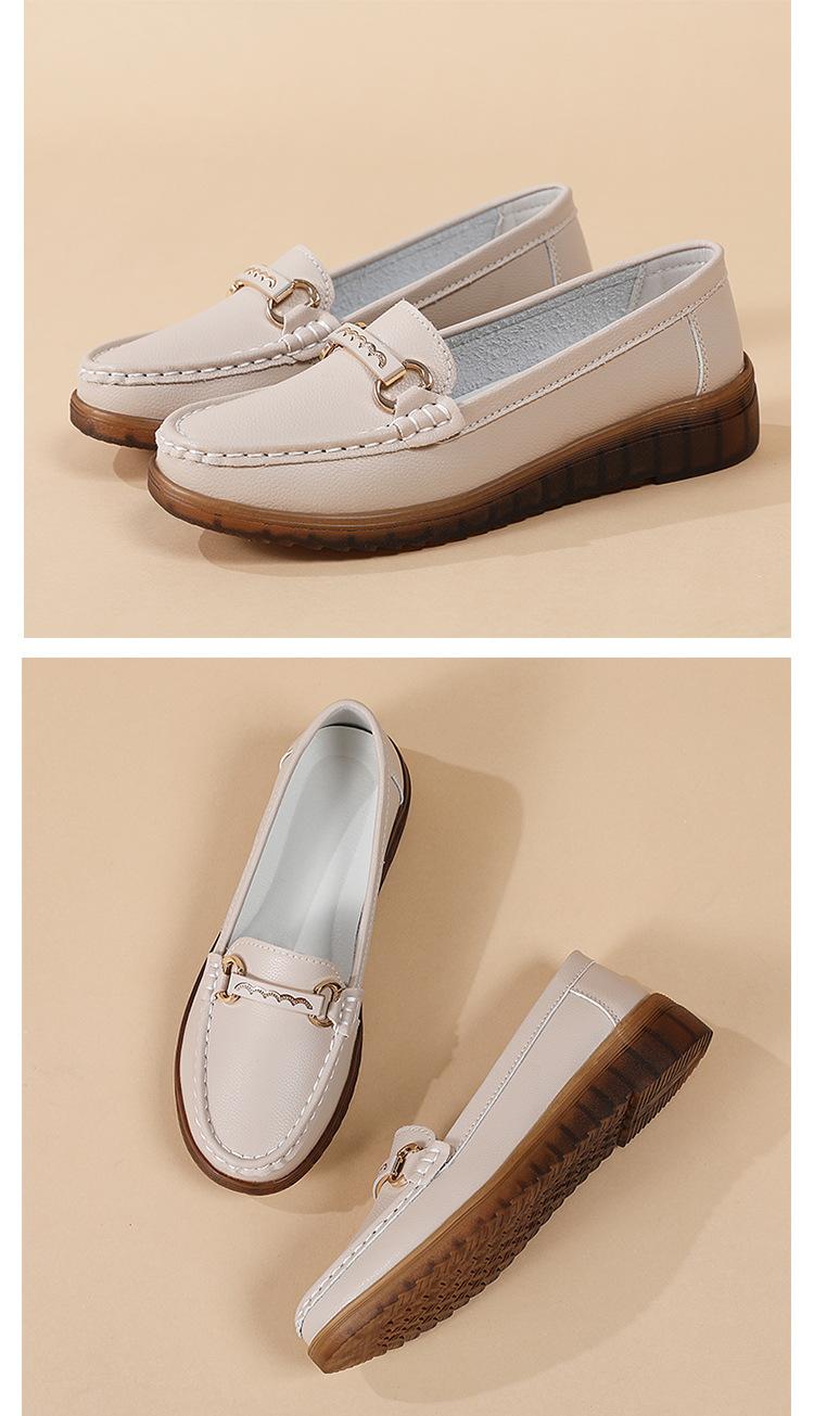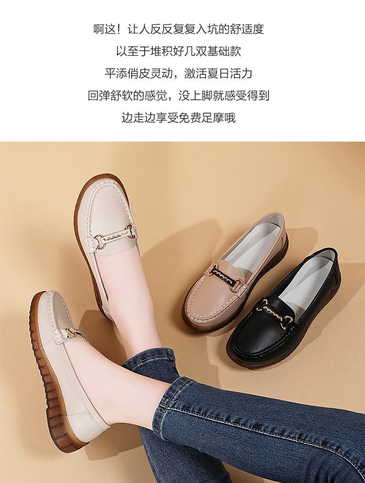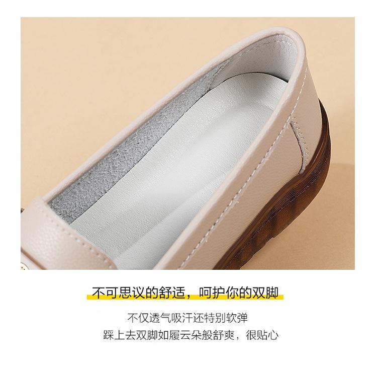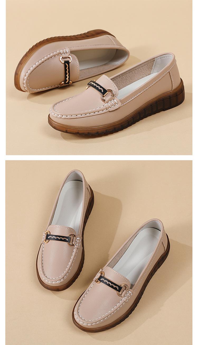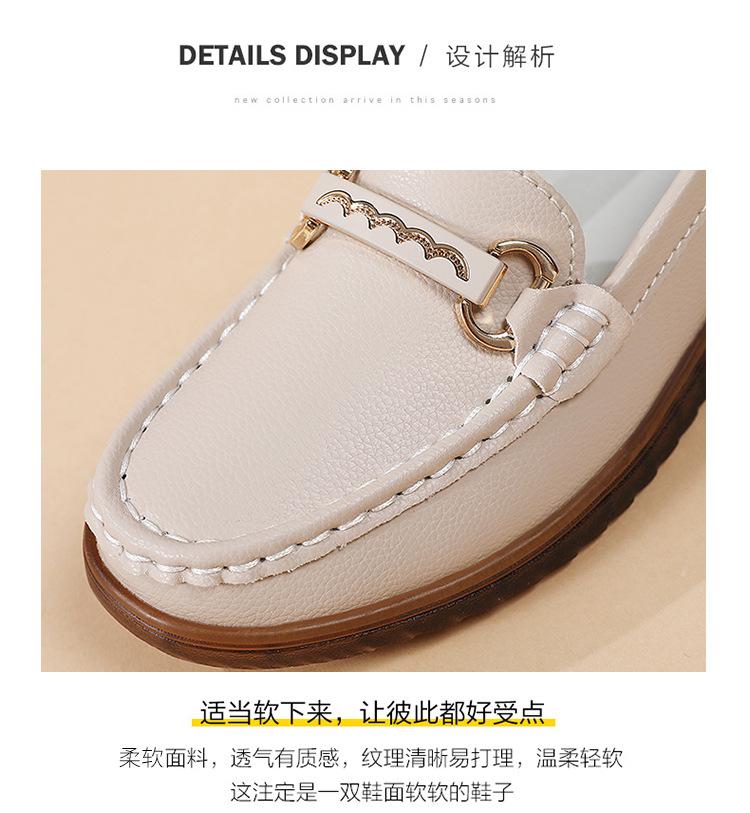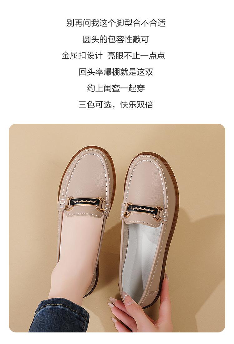 Mocasines de talla grande para mujer de otoño e invierno, hebilla metálica, transpirables, de cuero suave, zapatos para madre, suela blanda antideslizante, zapatos individuales slip-on para mujeres de mediana edad y mayores