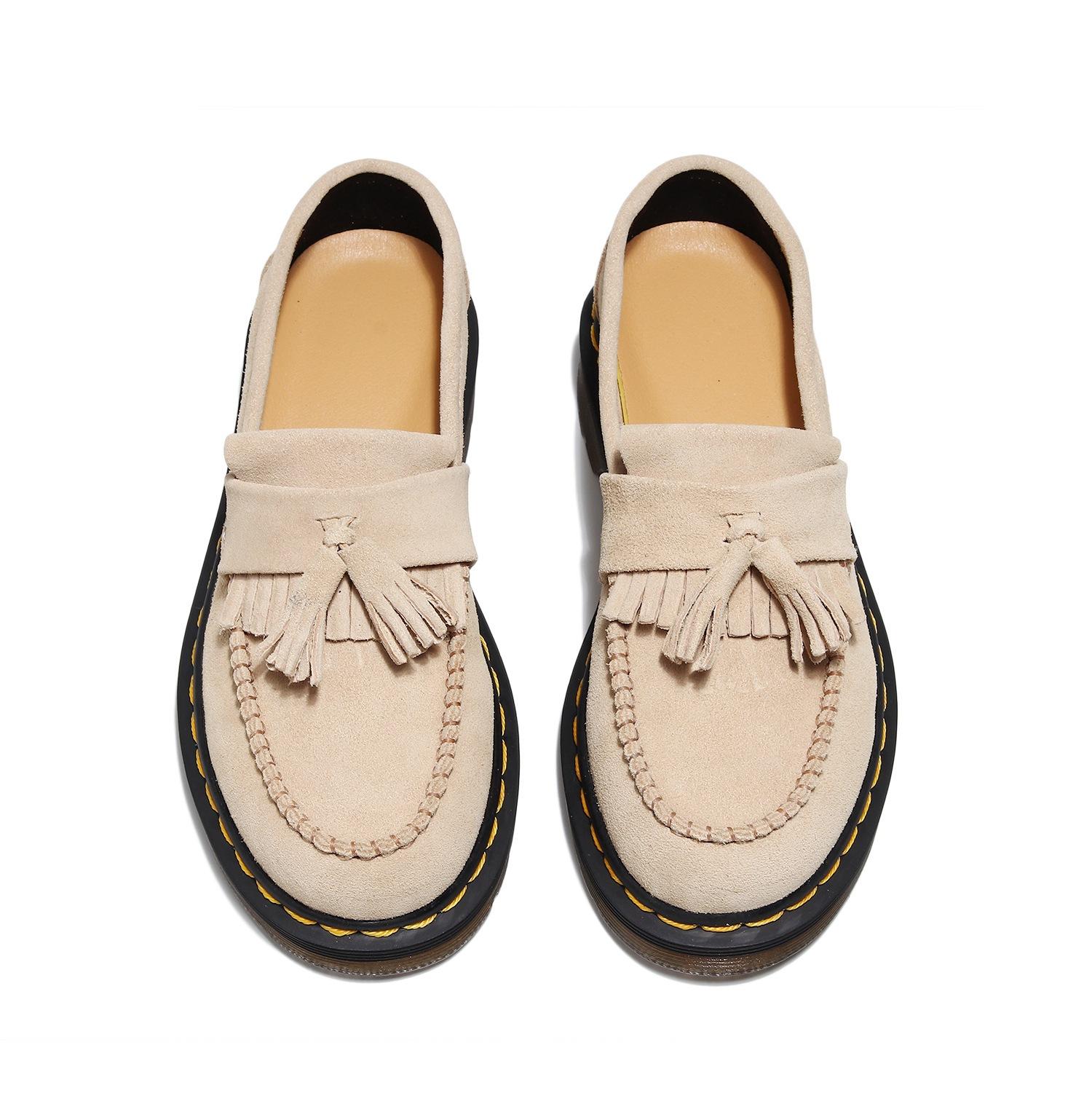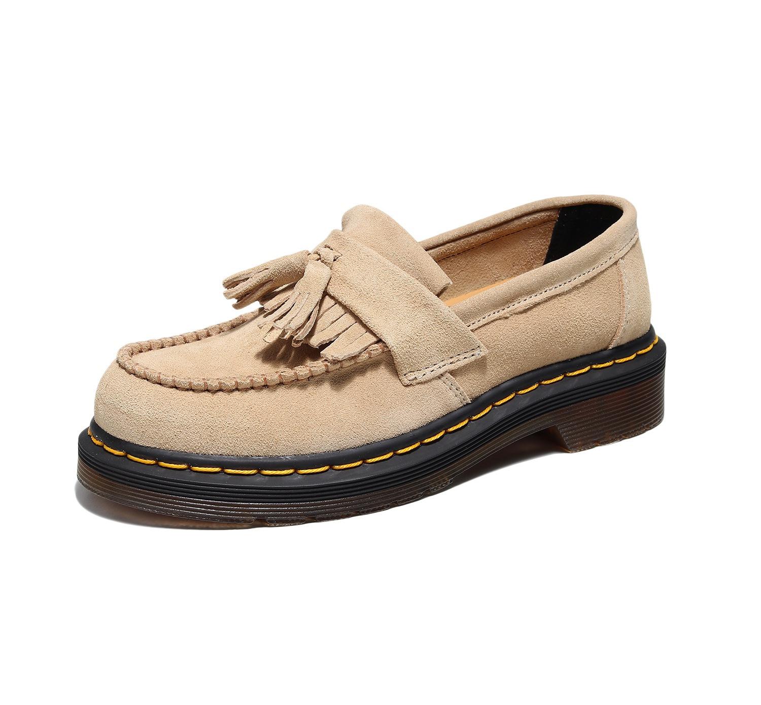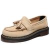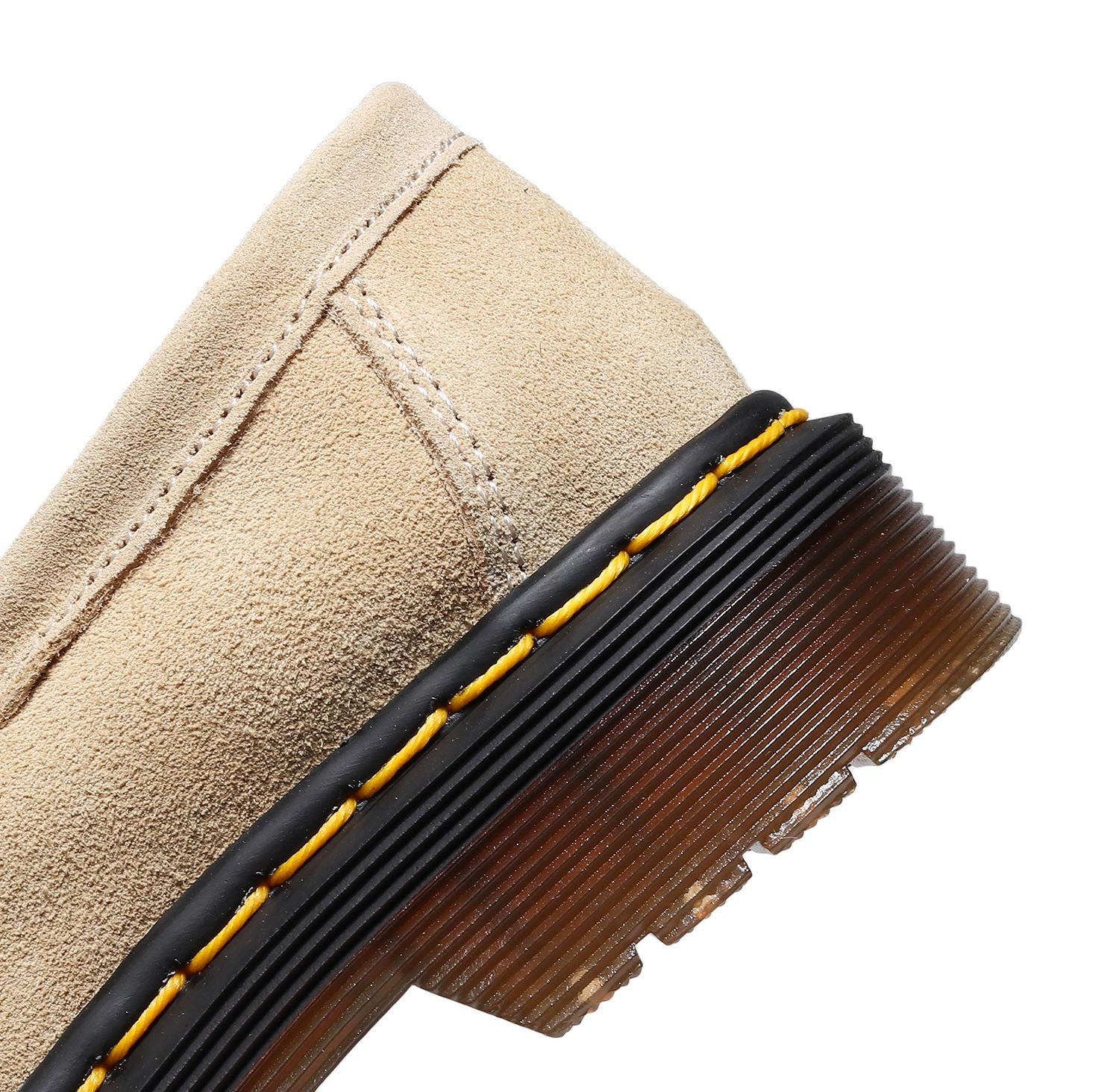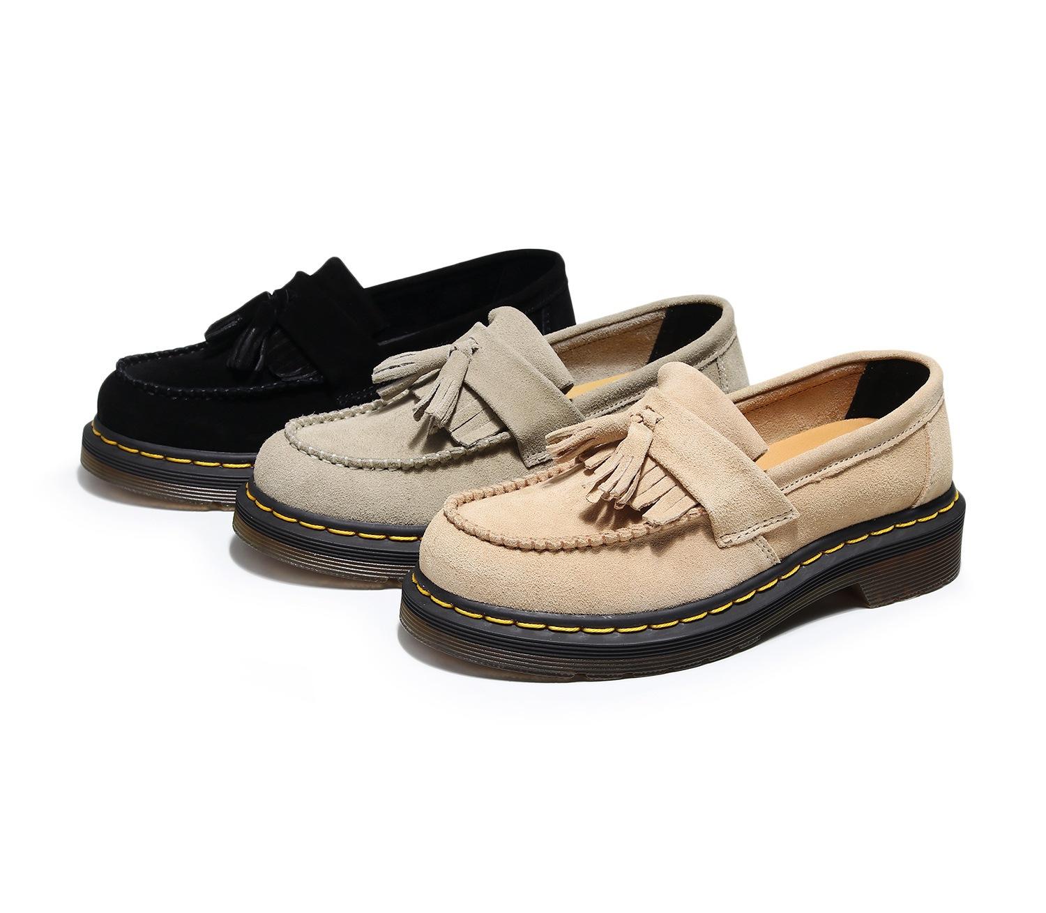 Mocasines de Borlas de Gamuza para Mujer Cuero Genuino Tacón Bajo Zapatos de Cuero Pequeños Zapatos Casuales de Punta Redonda para Estudiante de Moda Estilo Británico