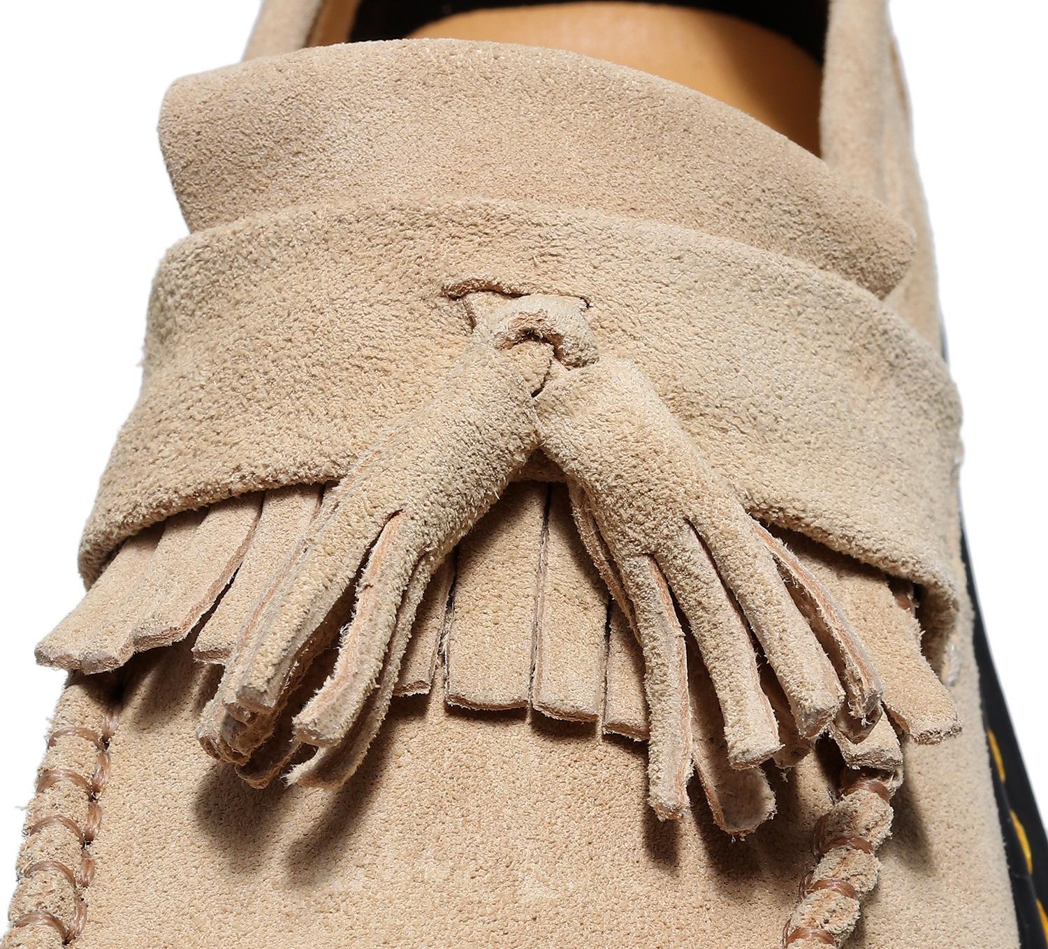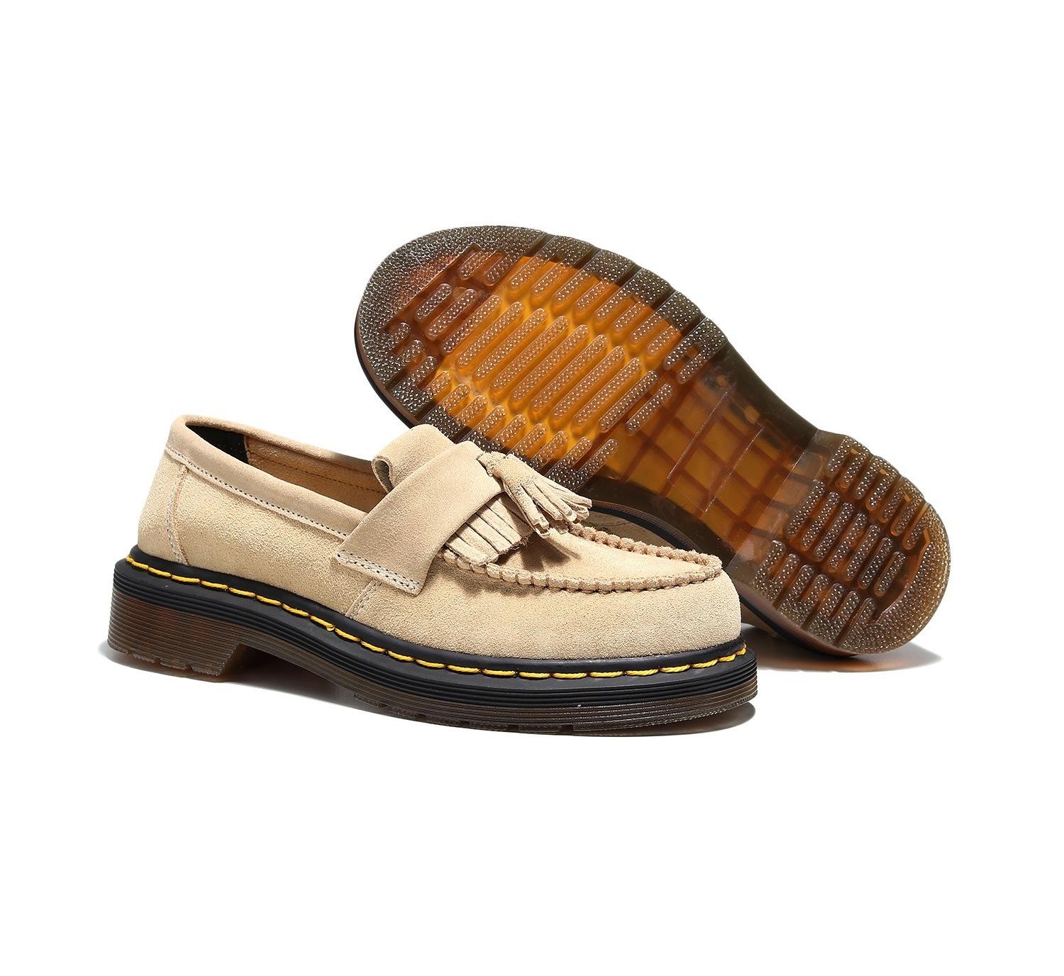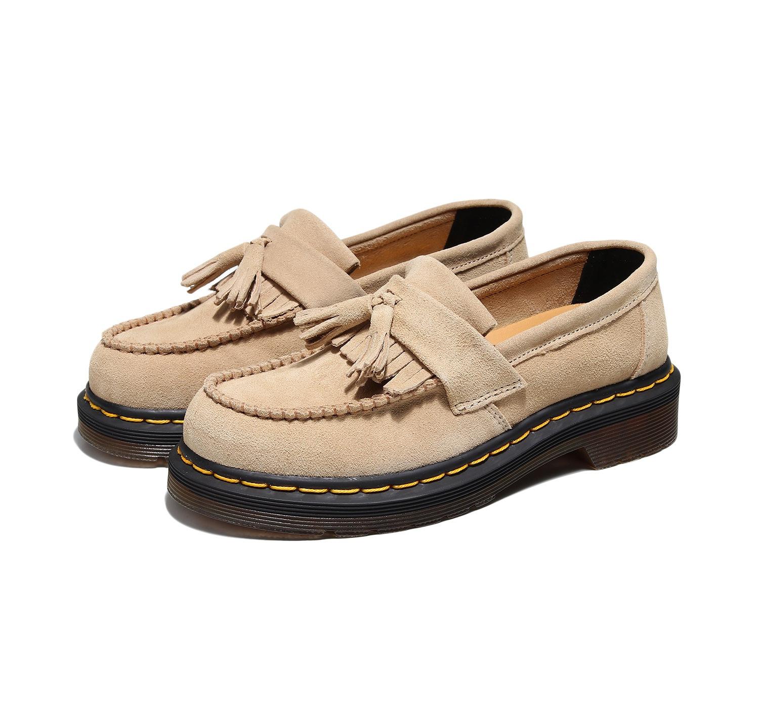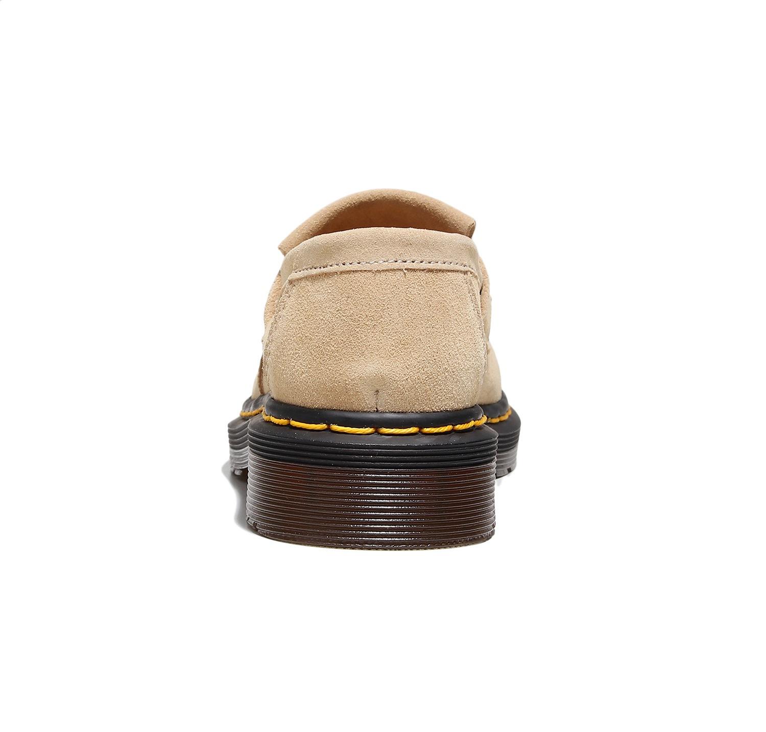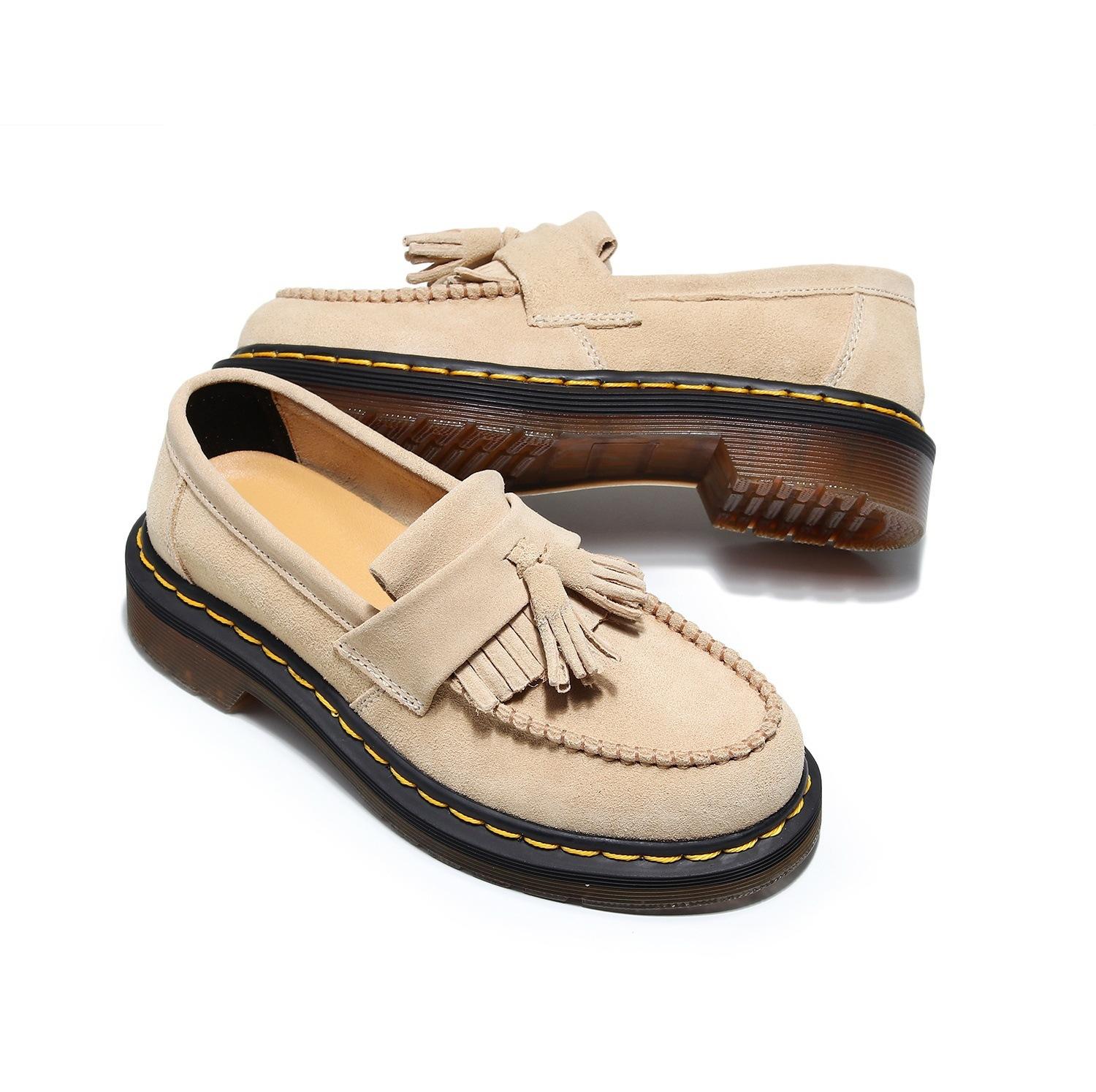 Mocasines de Borlas de Gamuza para Mujer Cuero Genuino Tacón Bajo Zapatos de Cuero Pequeños Zapatos Casuales de Punta Redonda para Estudiante de Moda Estilo Británico