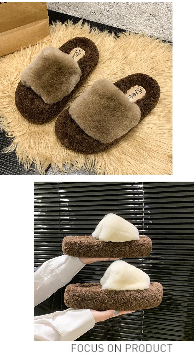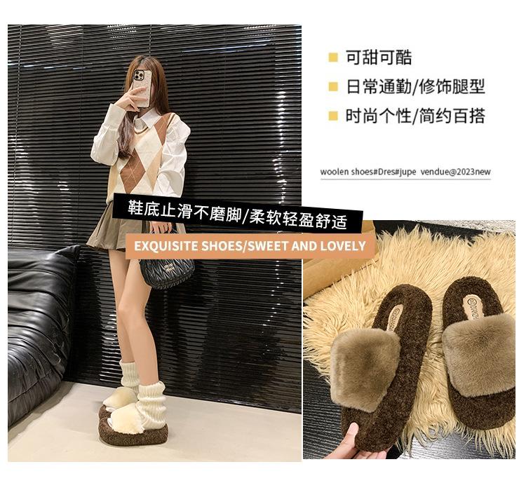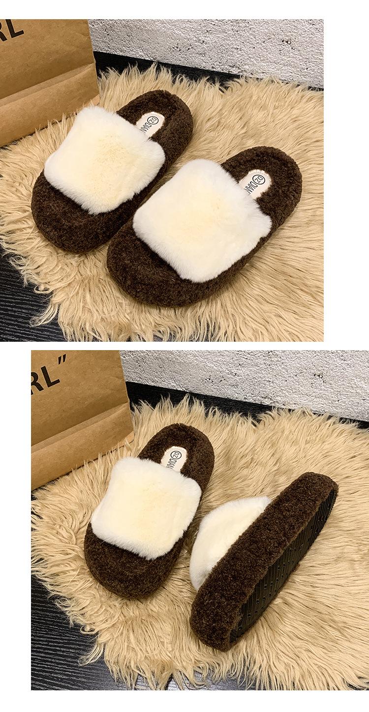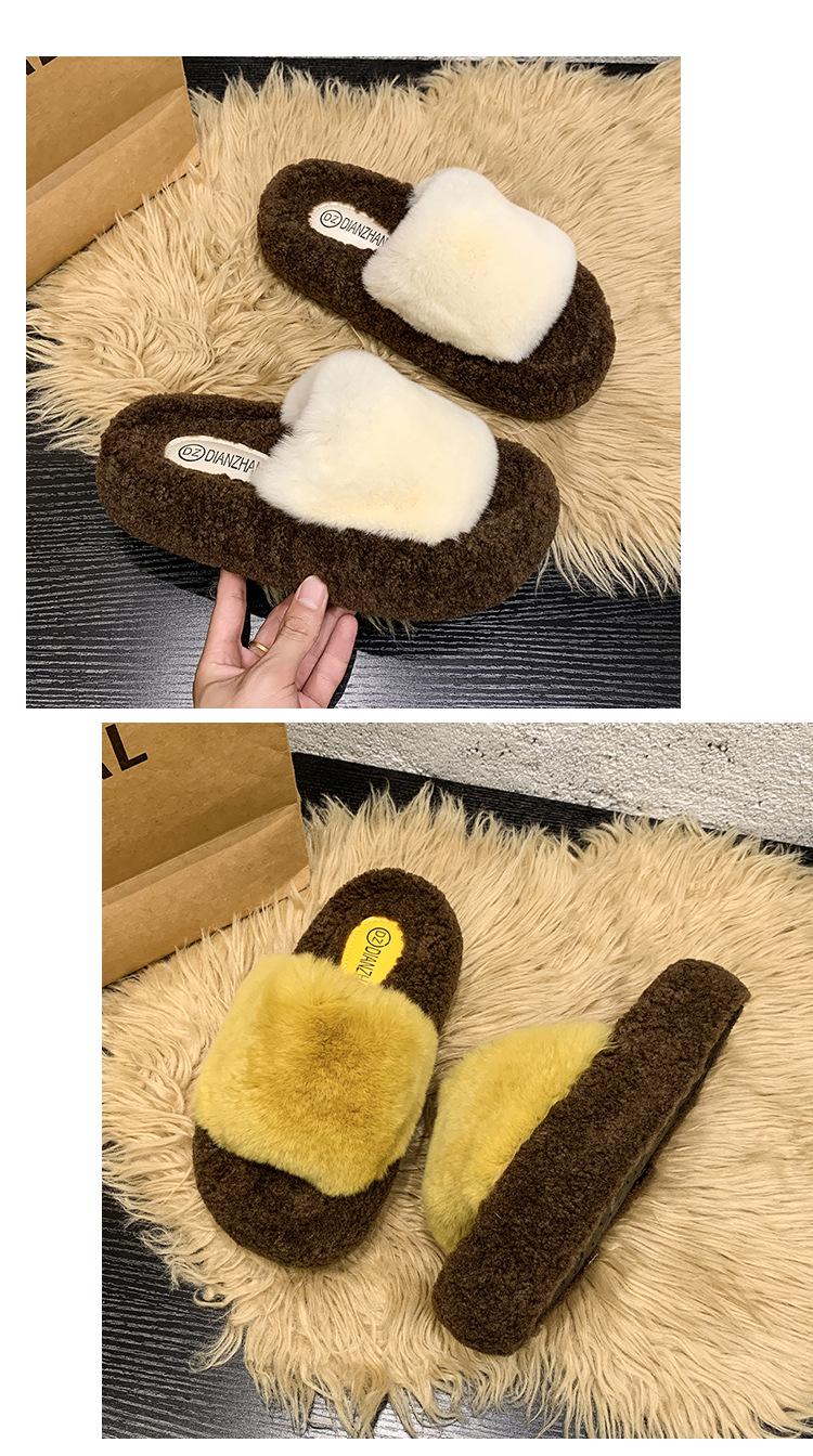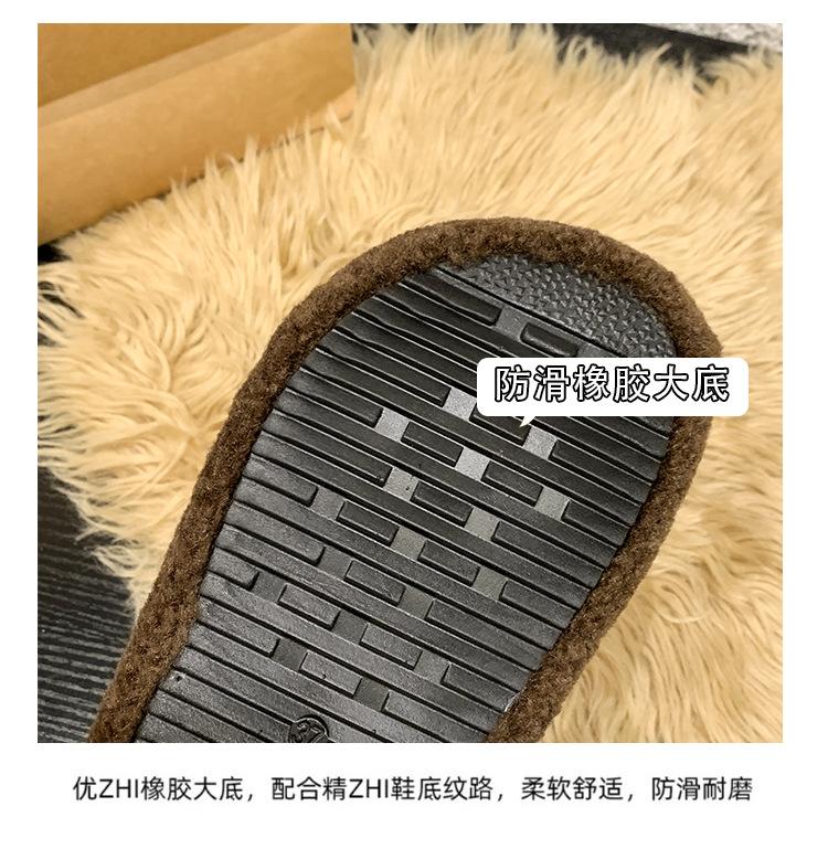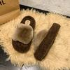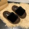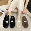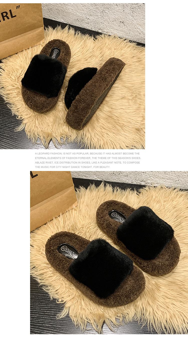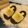 Otoño/Invierno 2025 Nuevo Retro Simple Ropa Exterior Pantuflas Peludas Ropa Exterior para Casa Versátiles Pantuflas de Algodón de Punta Abierta para Mujer