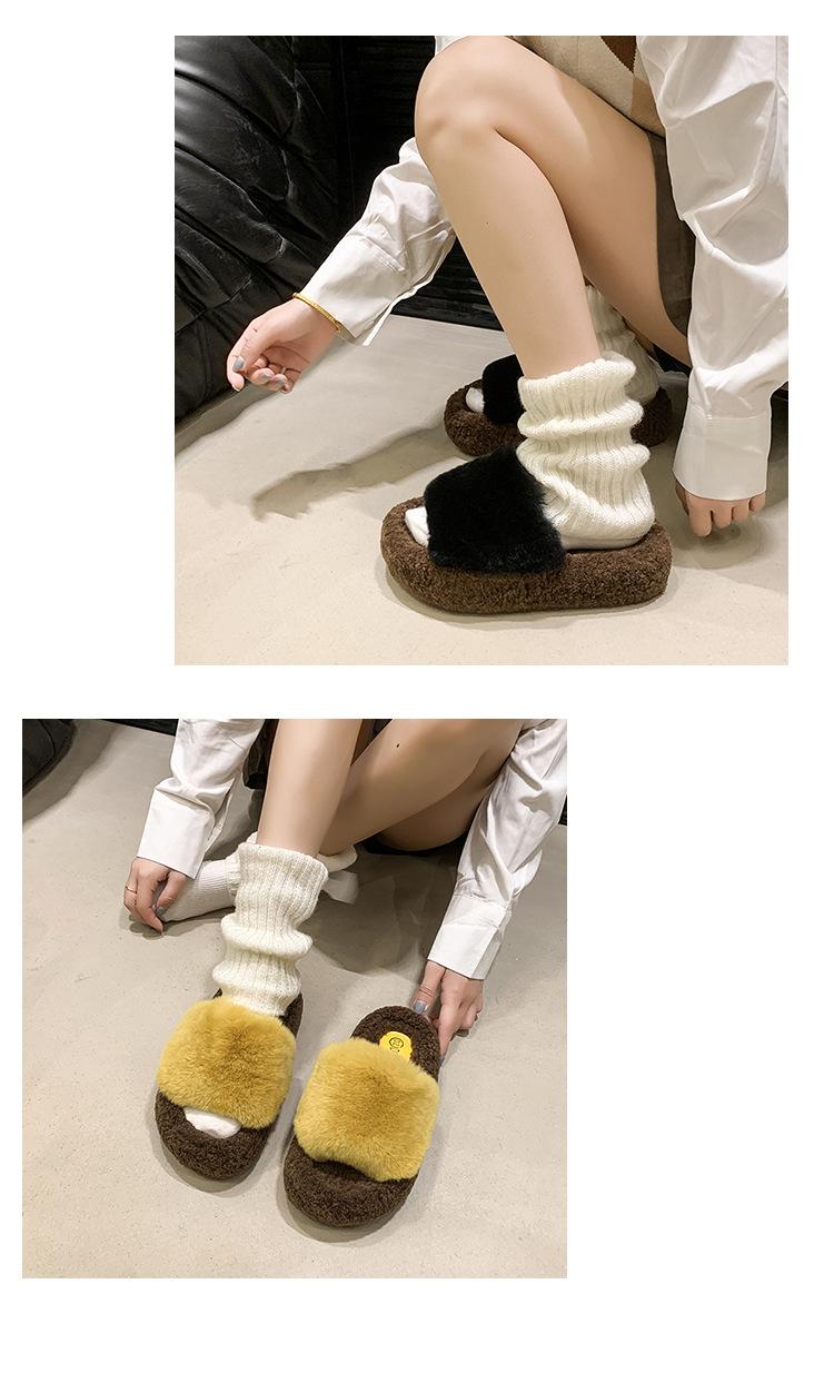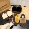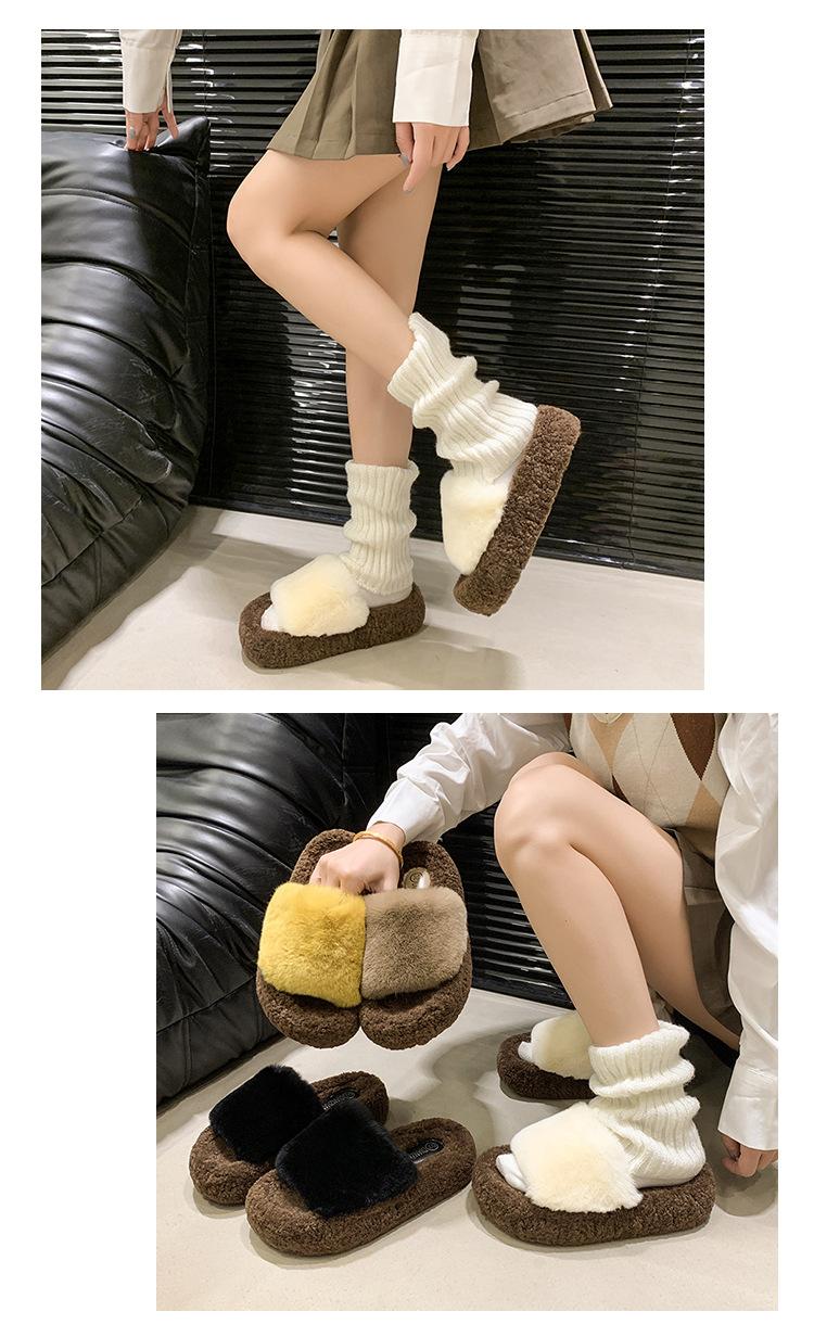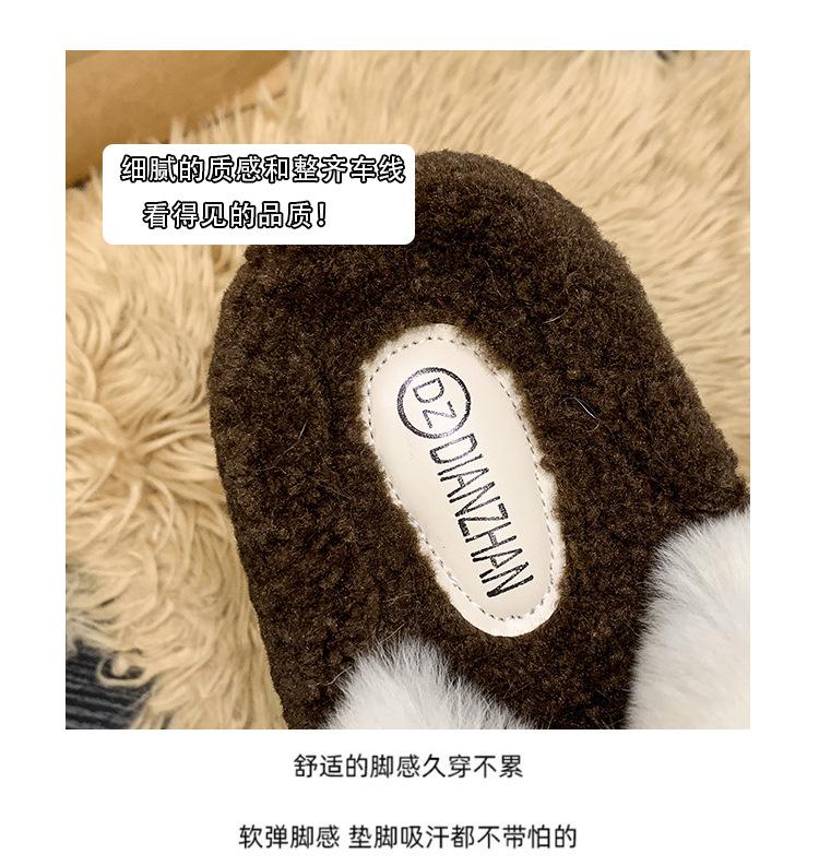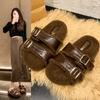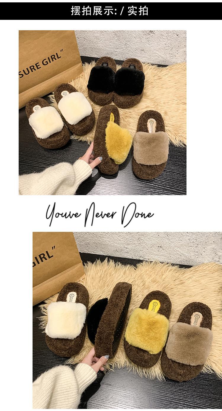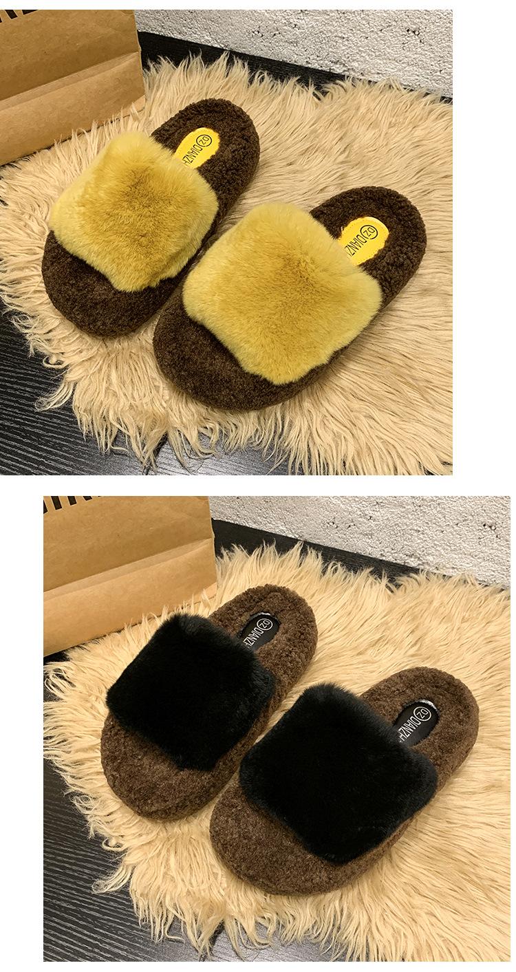 Otoño/Invierno 2025 Nuevo Retro Simple Ropa Exterior Pantuflas Peludas Ropa Exterior para Casa Versátiles Pantuflas de Algodón de Punta Abierta para Mujer