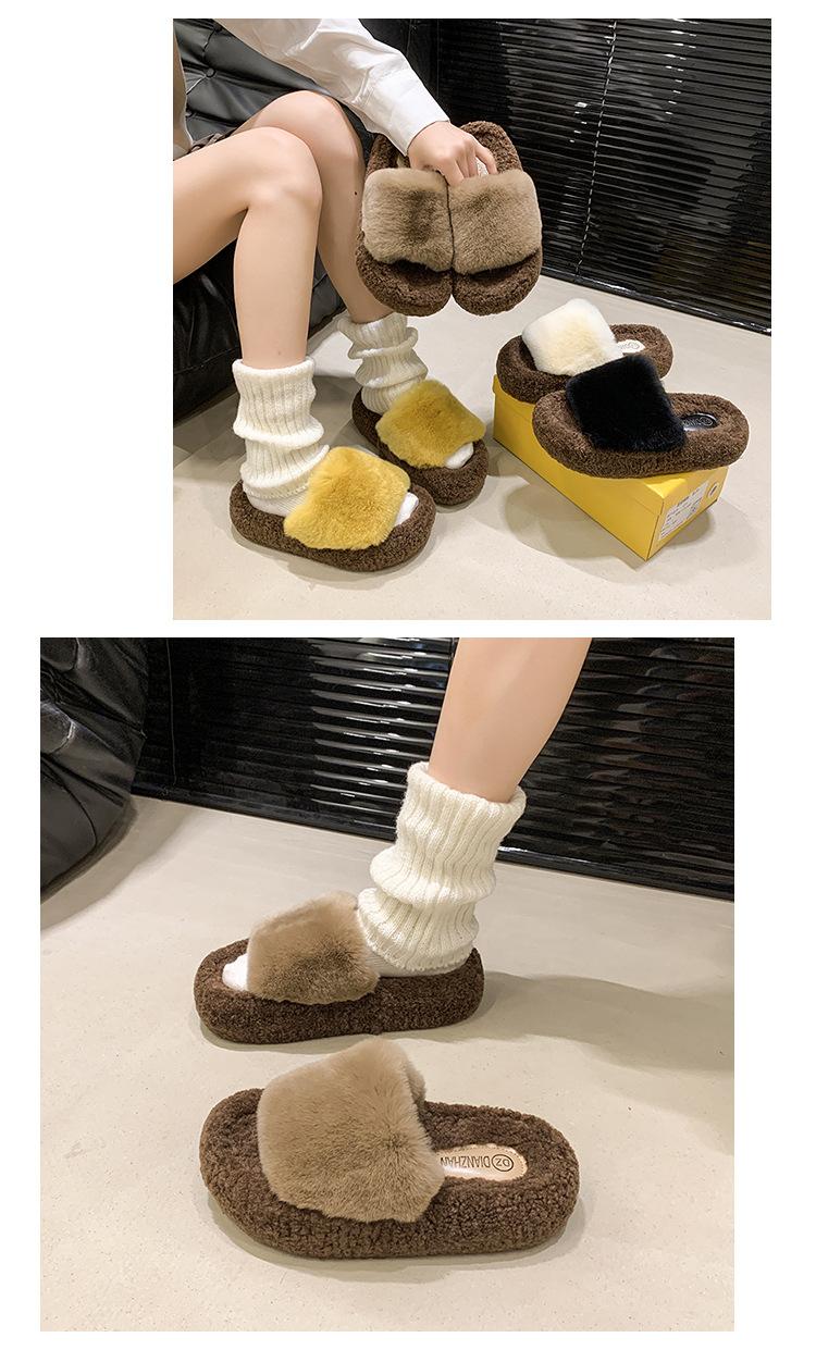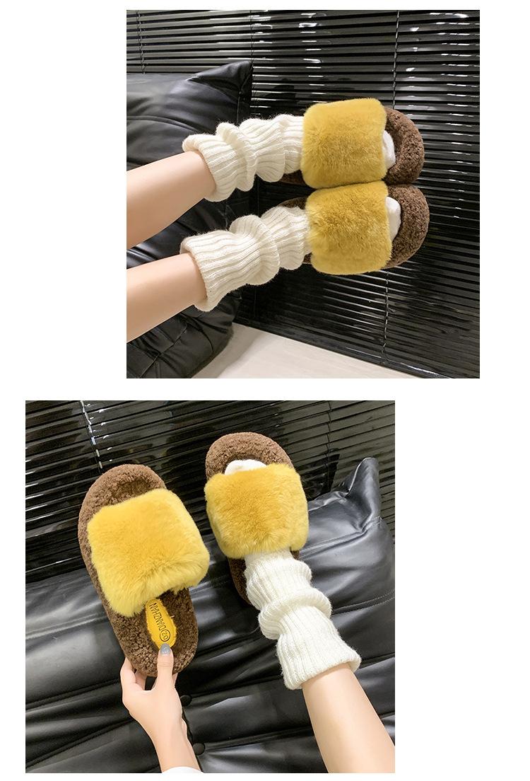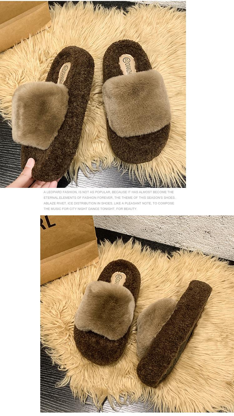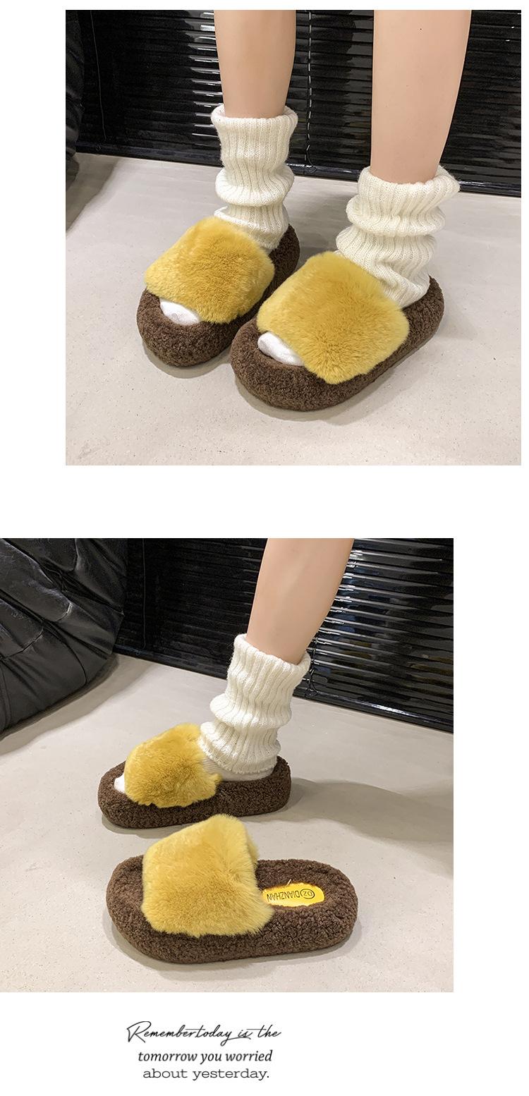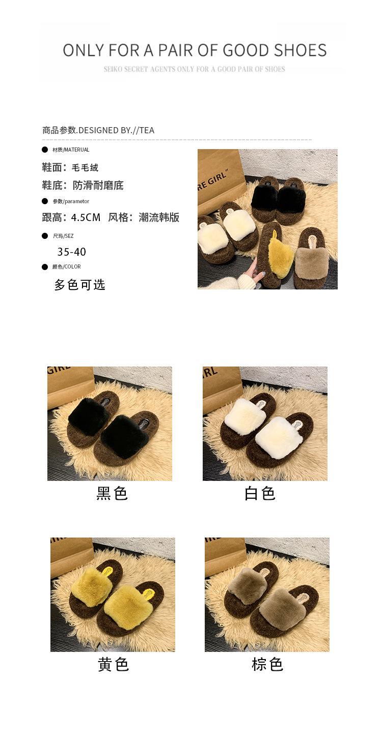 Otoño/Invierno 2025 Nuevo Retro Simple Ropa Exterior Pantuflas Peludas Ropa Exterior para Casa Versátiles Pantuflas de Algodón de Punta Abierta para Mujer