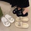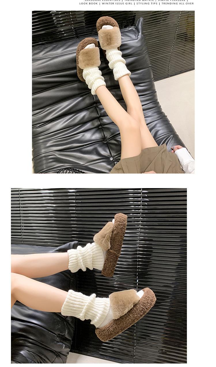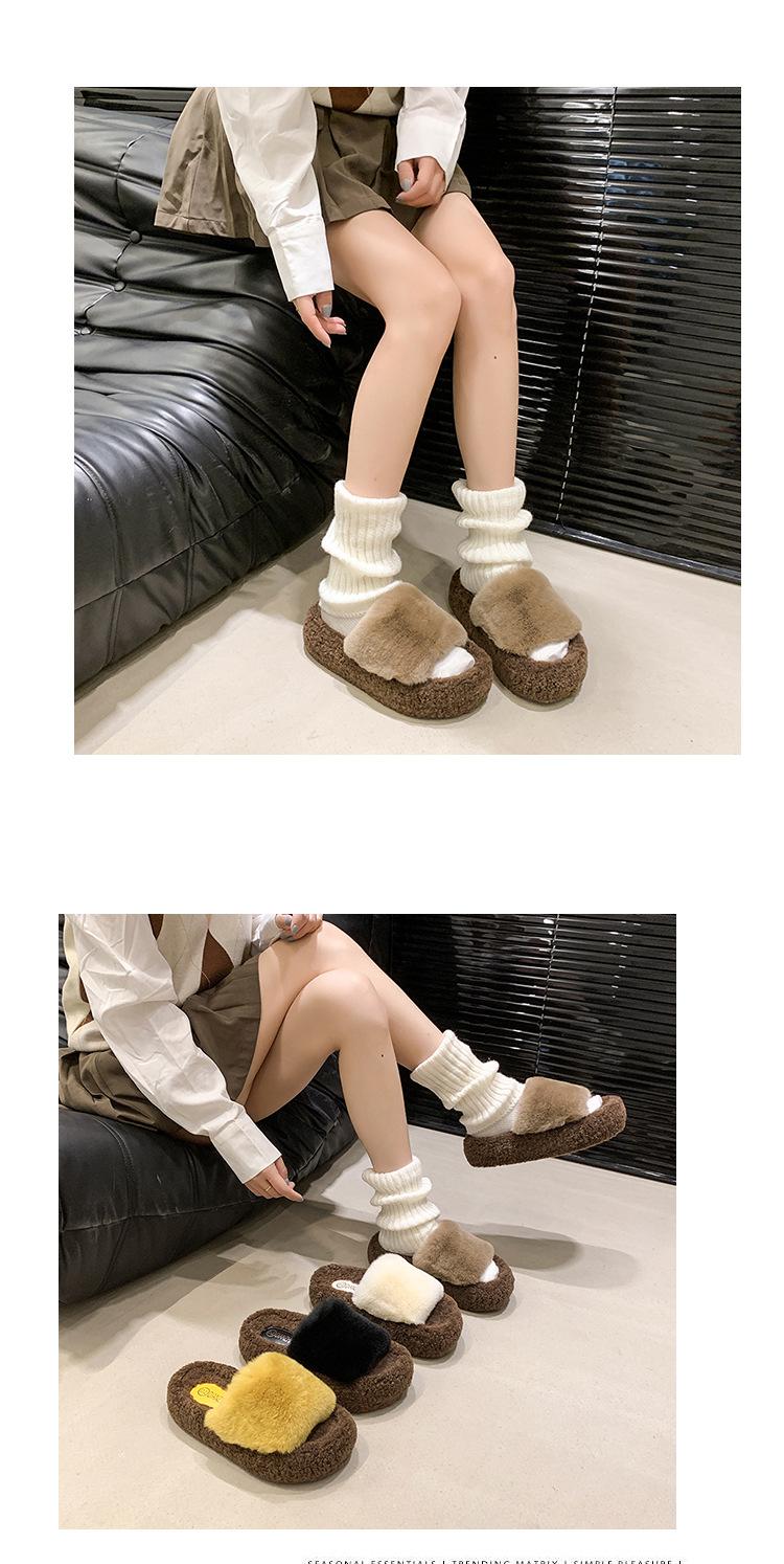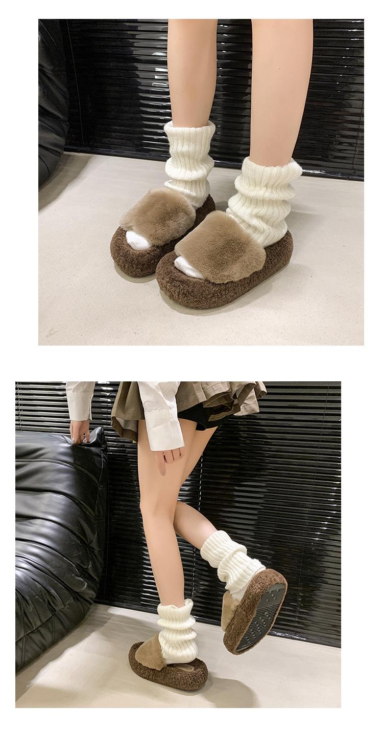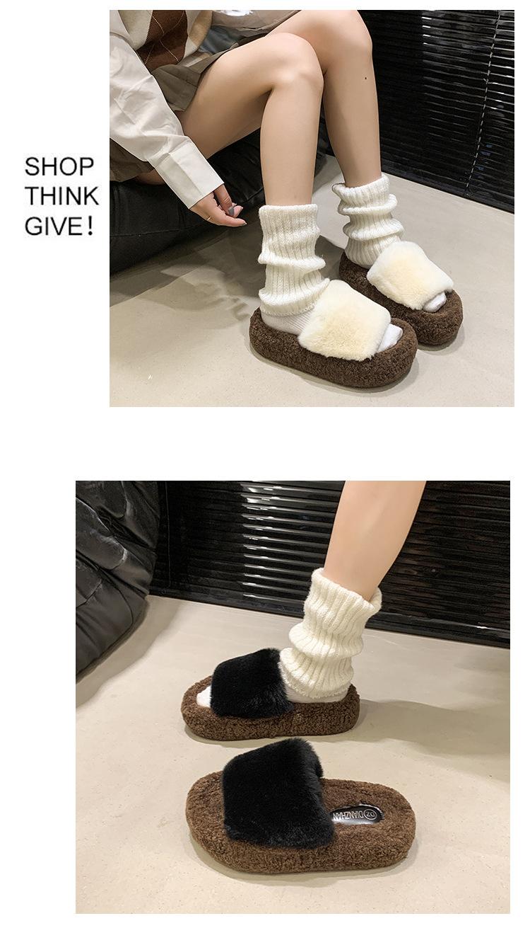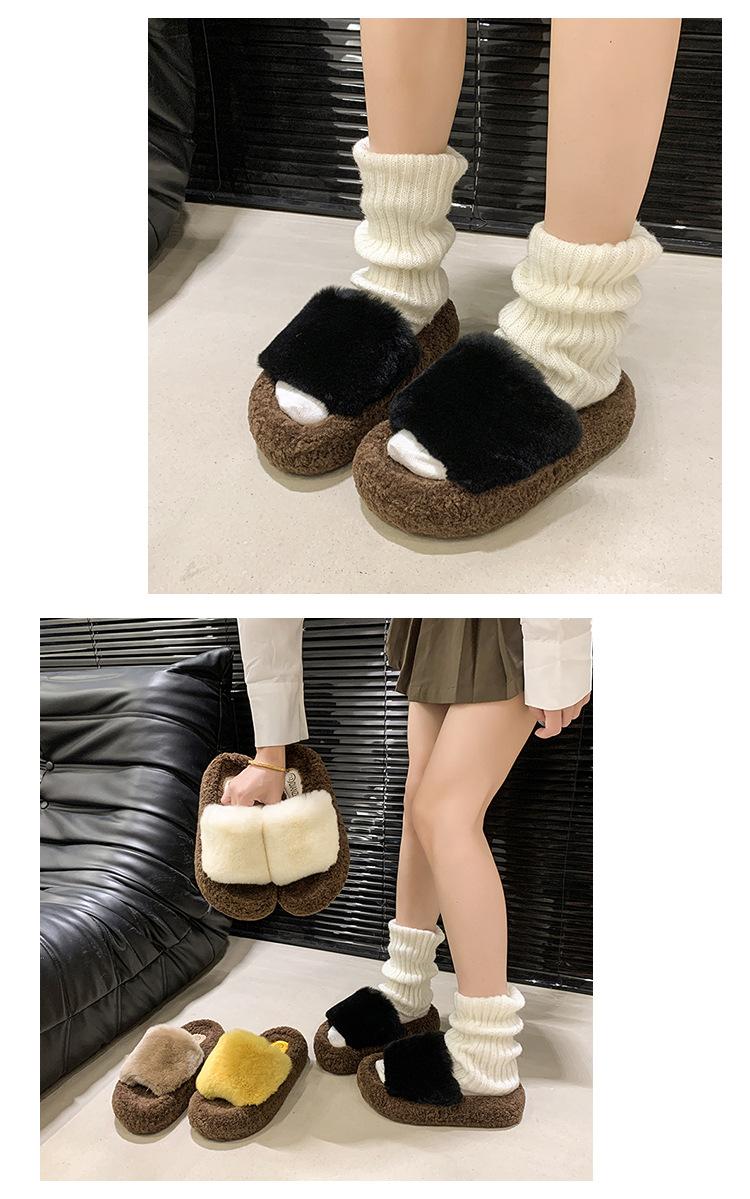 Otoño/Invierno 2025 Nuevo Retro Simple Ropa Exterior Pantuflas Peludas Ropa Exterior para Casa Versátiles Pantuflas de Algodón de Punta Abierta para Mujer