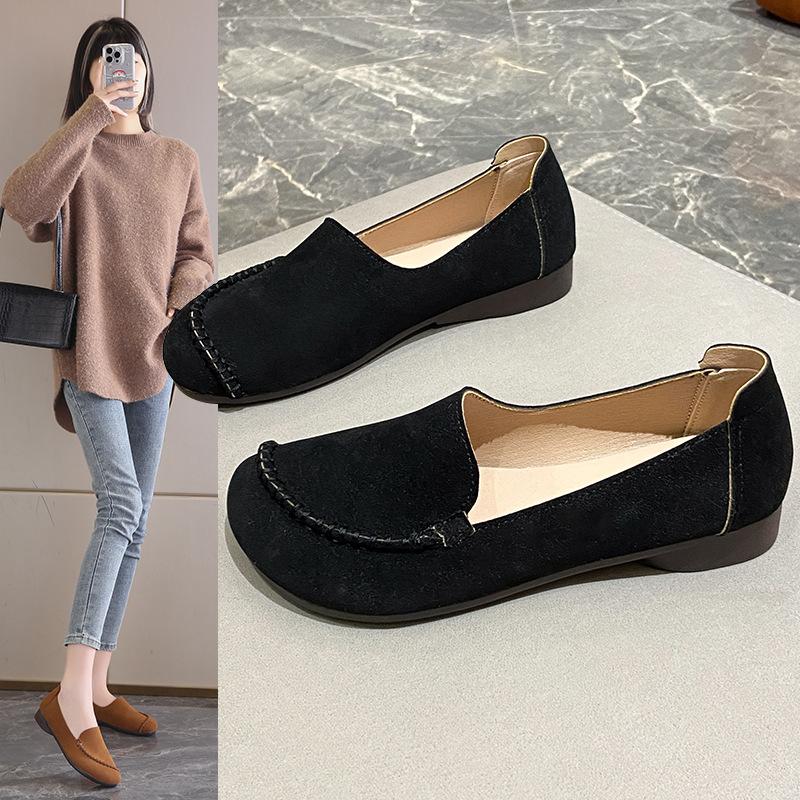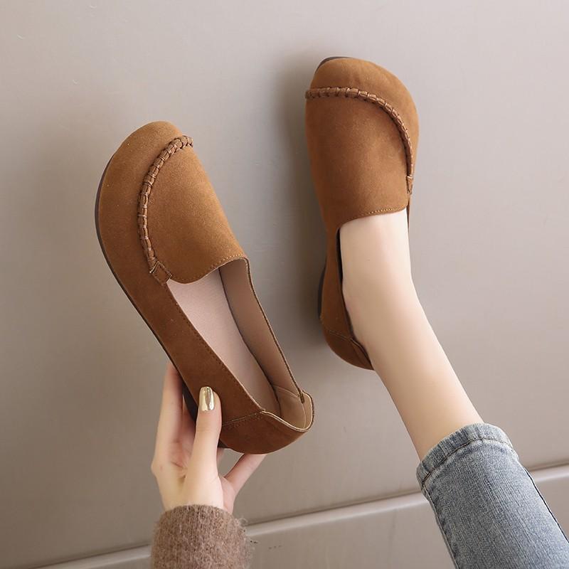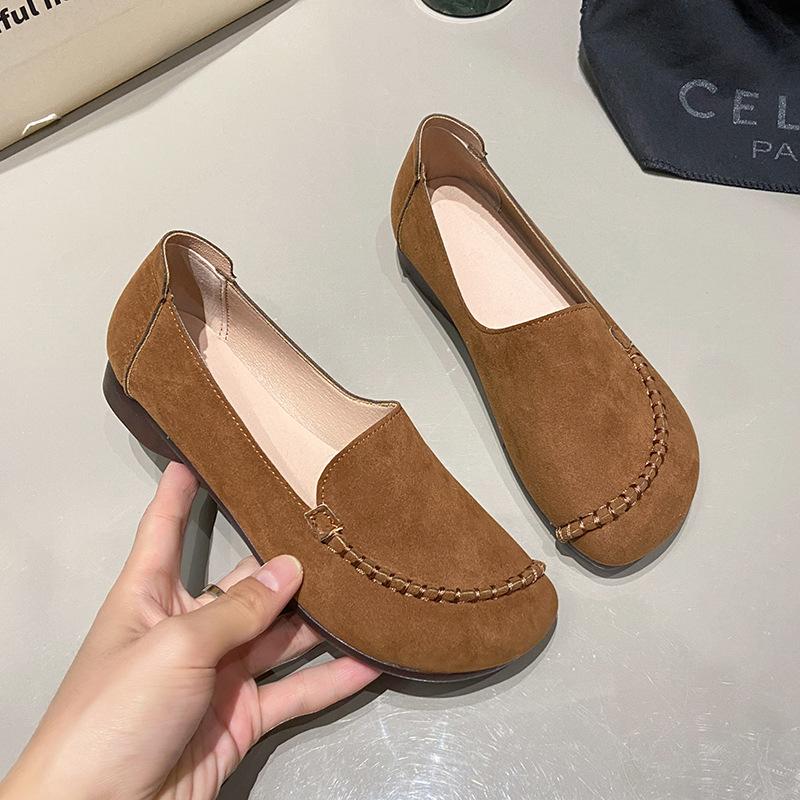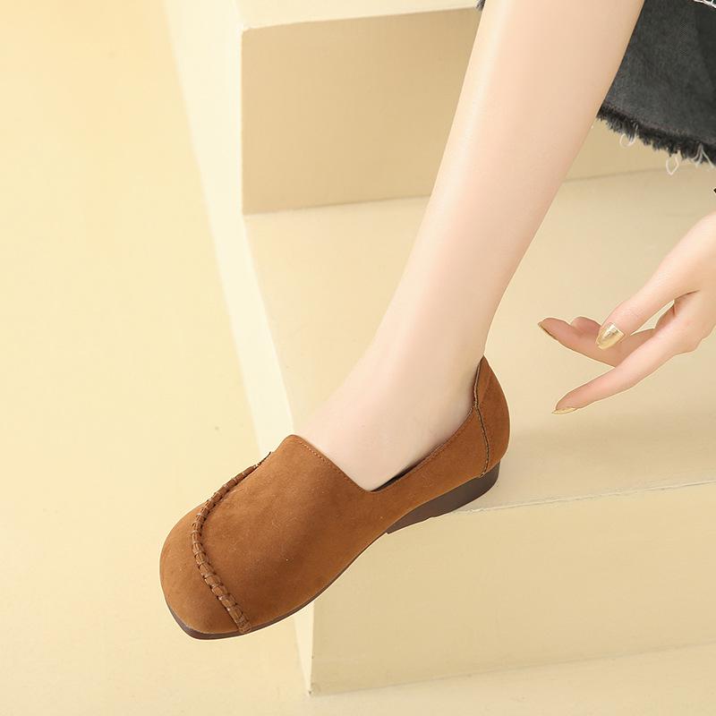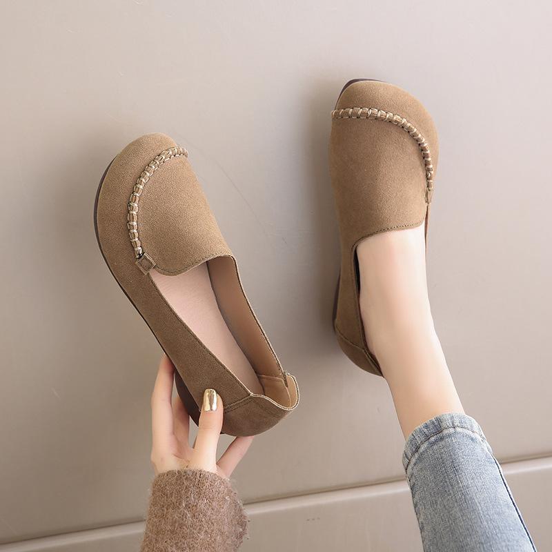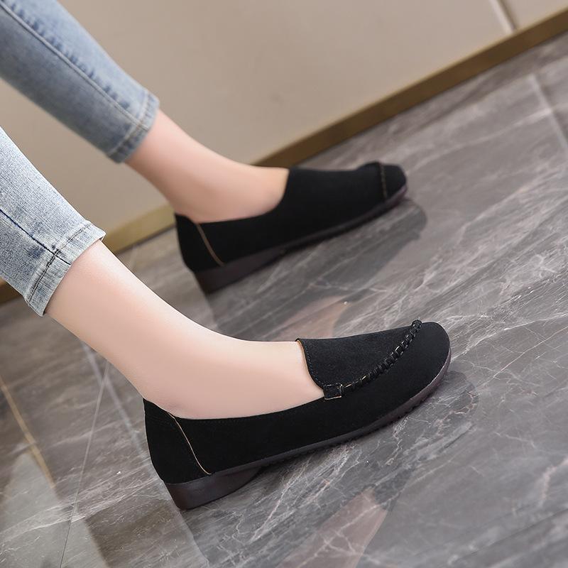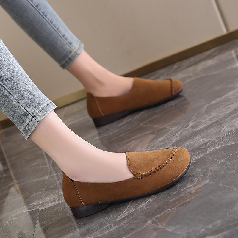 Zapatos individuales de corte bajo de talla grande transfronterizos para mujer, primavera nuevos, suela blanda, gamuza, sin cordones, casuales, tipo mocasín, zapatos de mamá