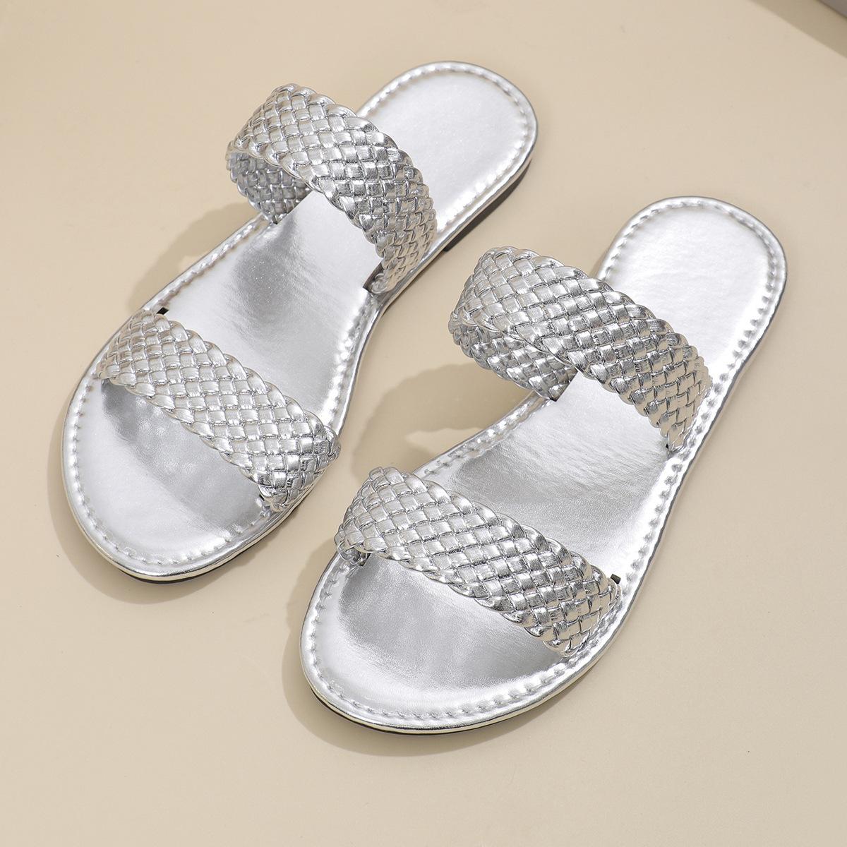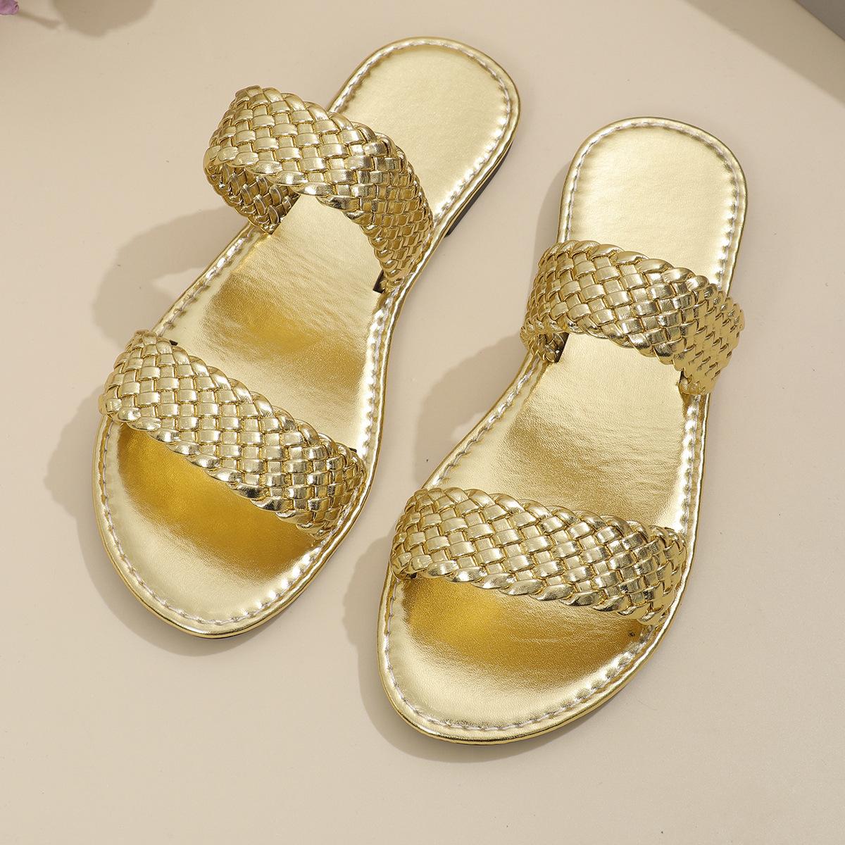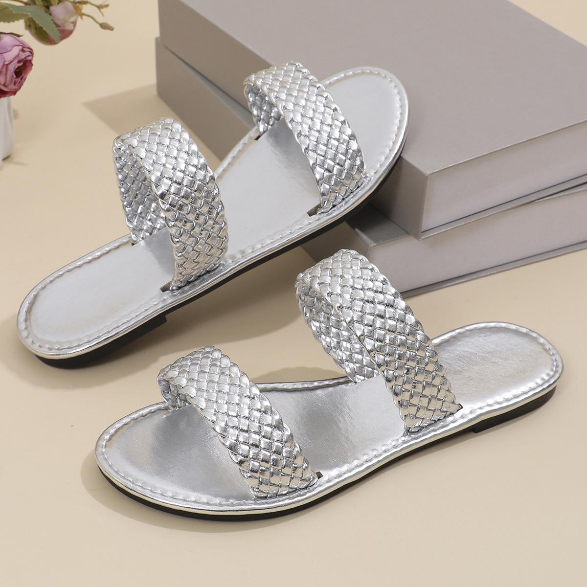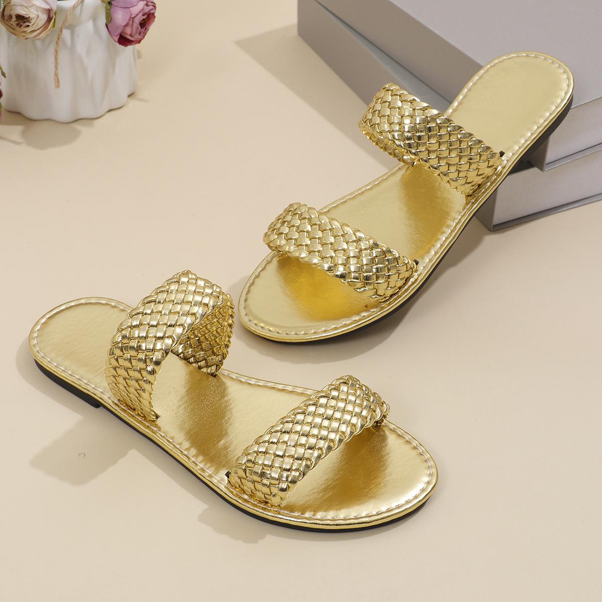 Pantuflas Europeas y Americanas de Talla Grande para Mujer 2025 Verano Nuevo Tejido Pantuflas de Mujer para Uso Exterior Sandalias de Playa pantuflas
