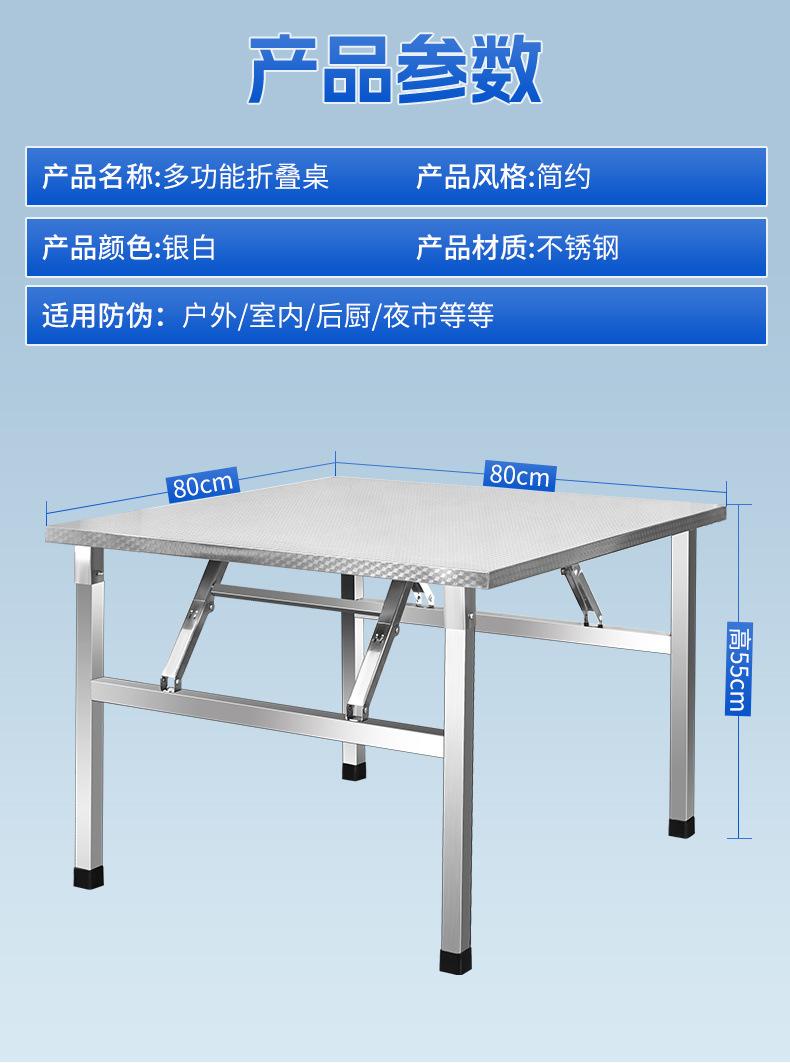 Mesa Plegable de Acero Inoxidable Mesa de Comedor Hogar Dormitorio Habitación de Alquiler Mesa de Comedor Mesa de Escritorio Estudio Puesto Portátil Mesa Cuadrada Pequeña