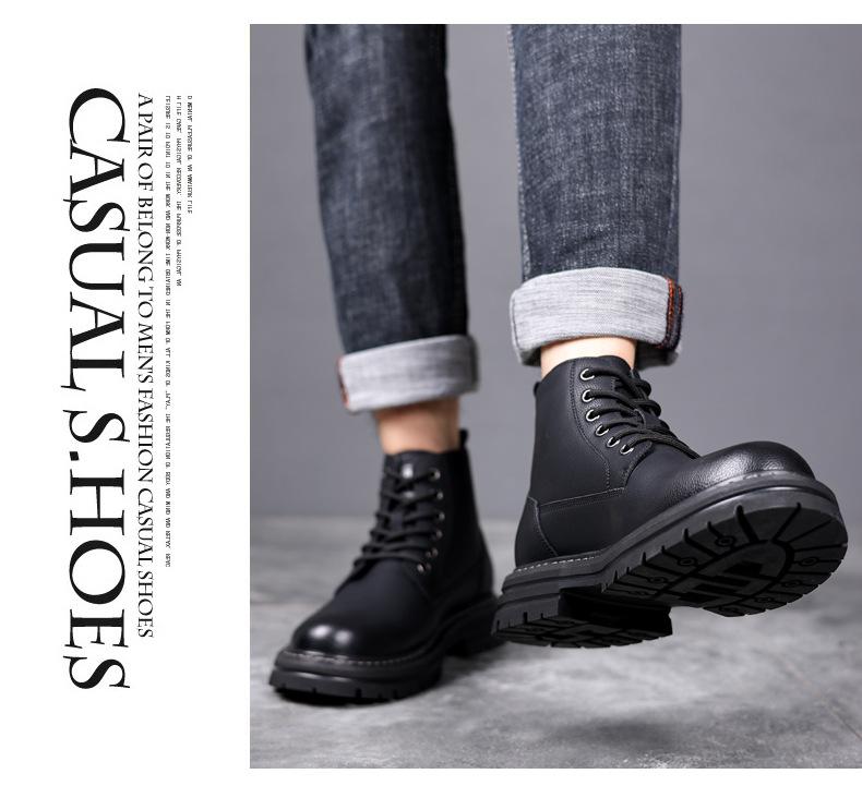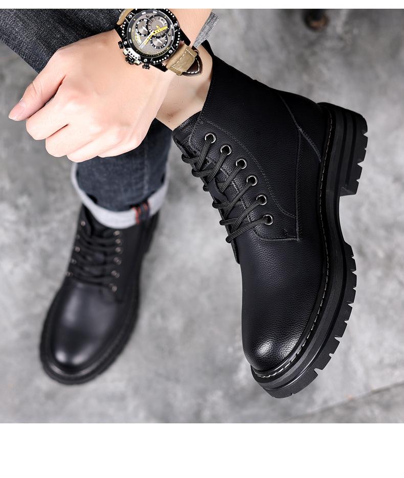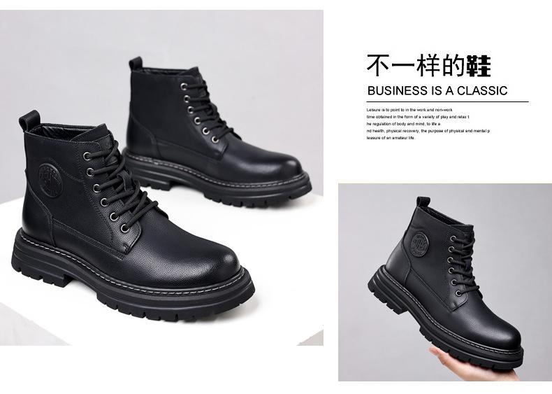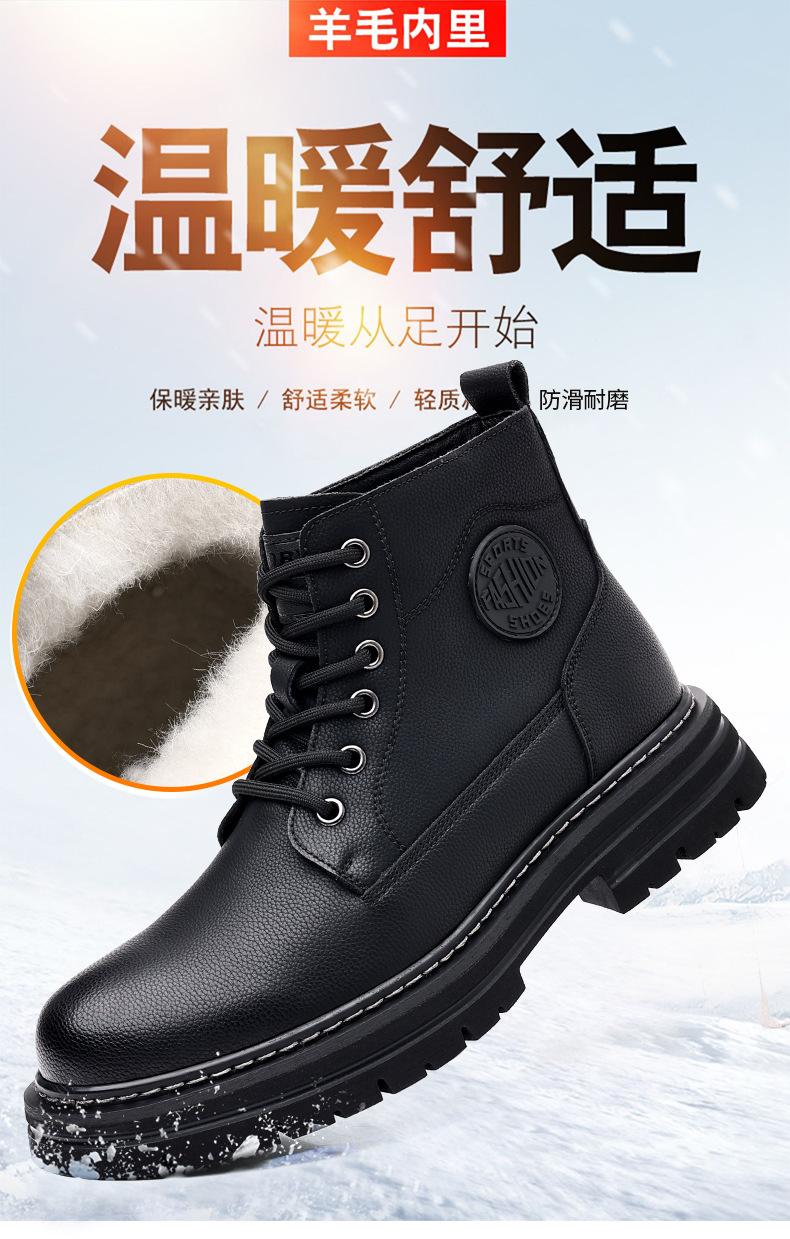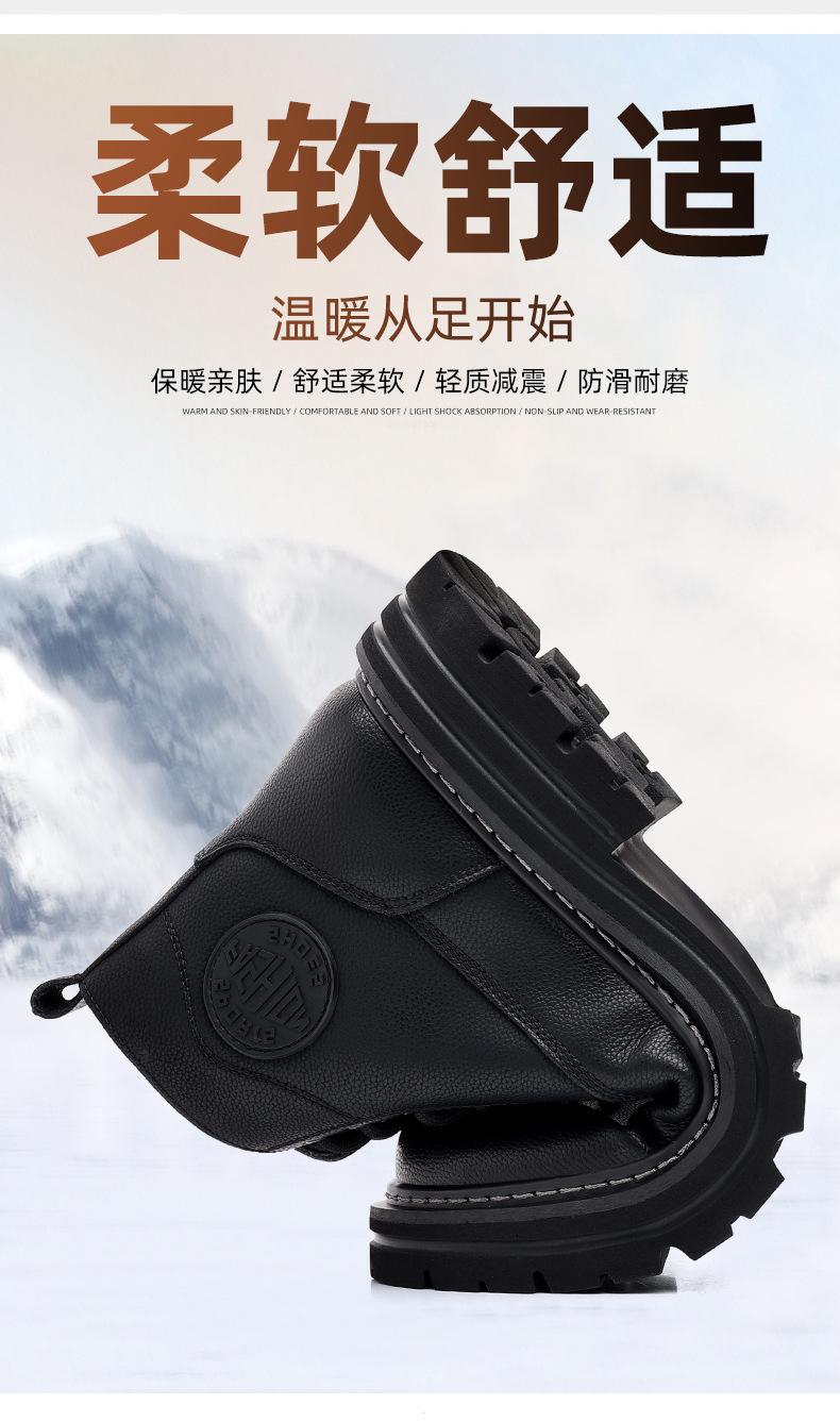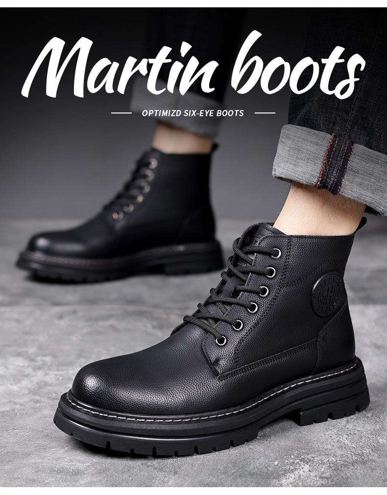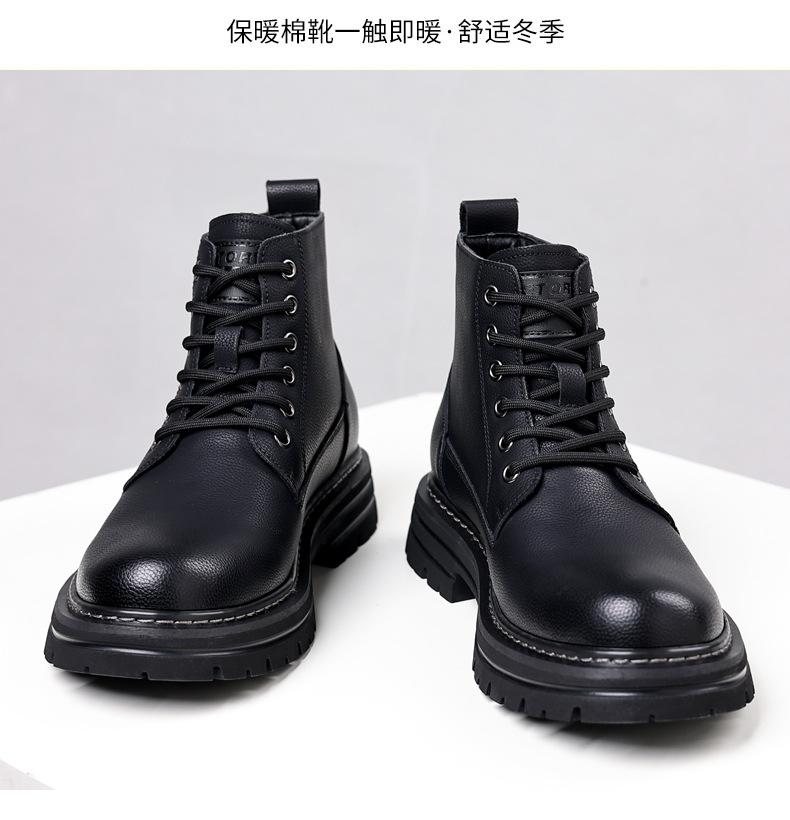 Nuevas botas de algodón cómodas de caña alta para otoño e invierno transfronterizas, botas Martin para exteriores para hombre, cuero genuino versátil más terciopelo cálido, zapatos de hombre