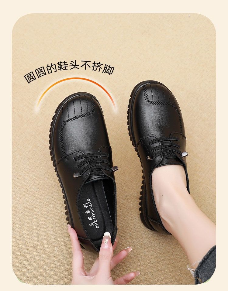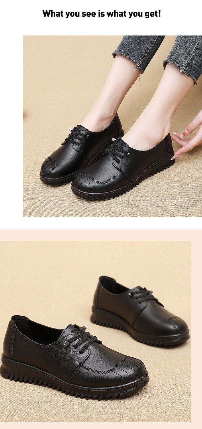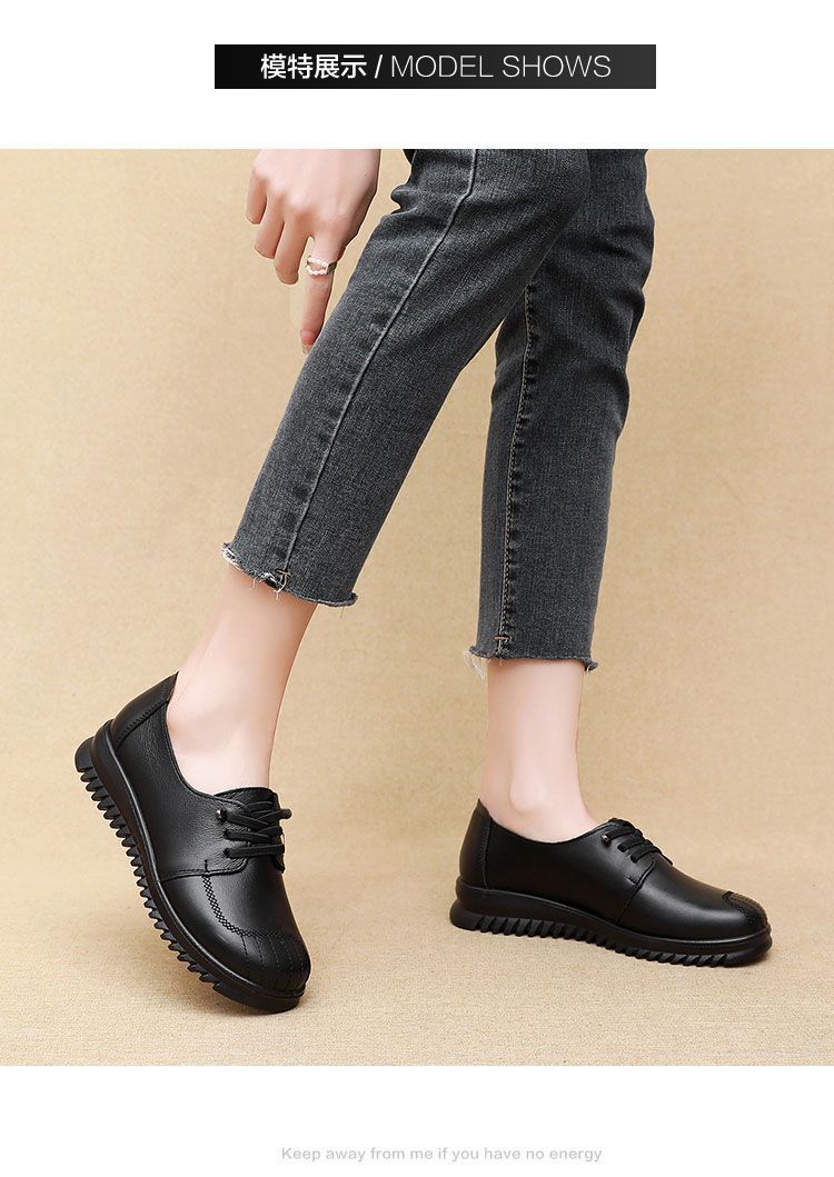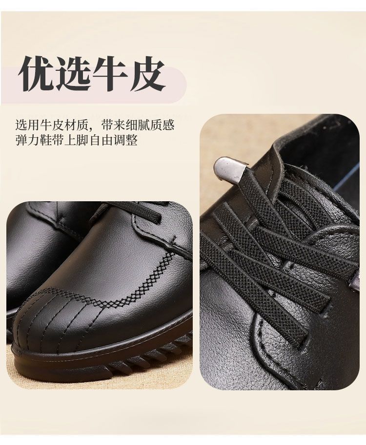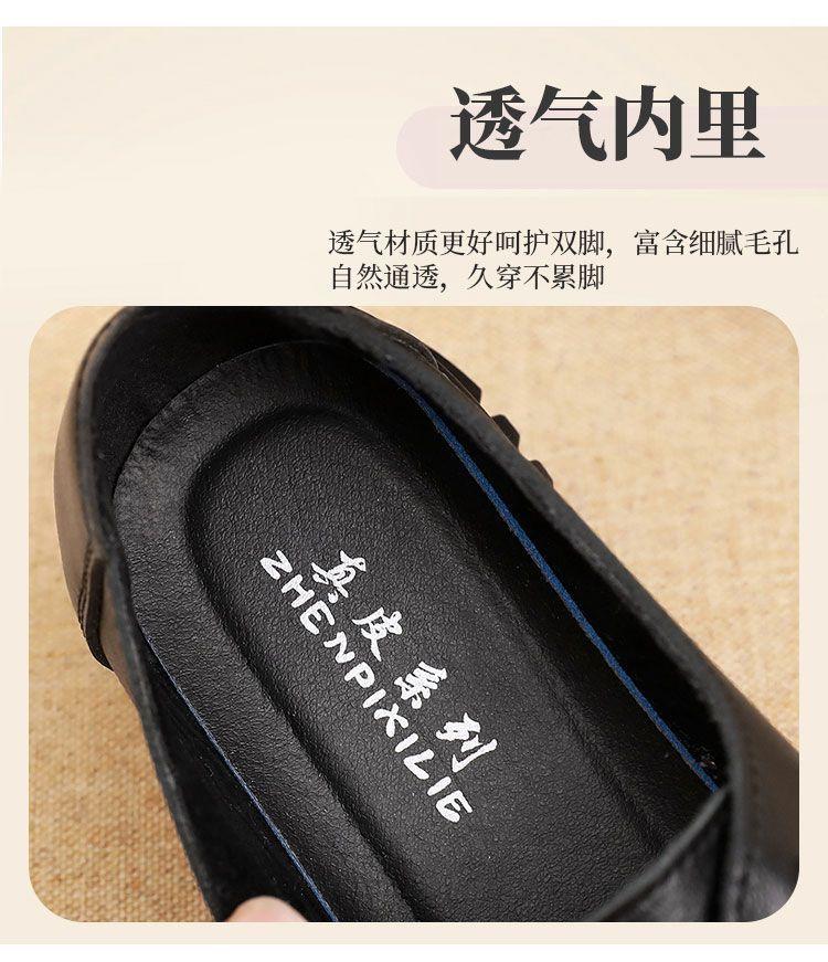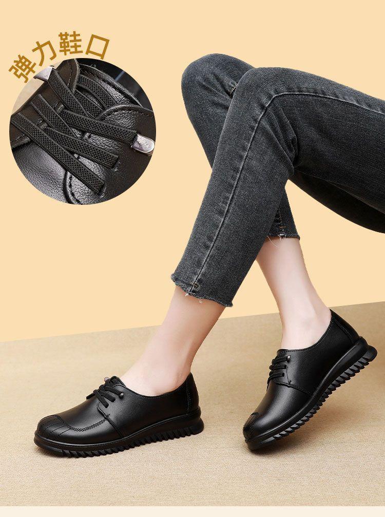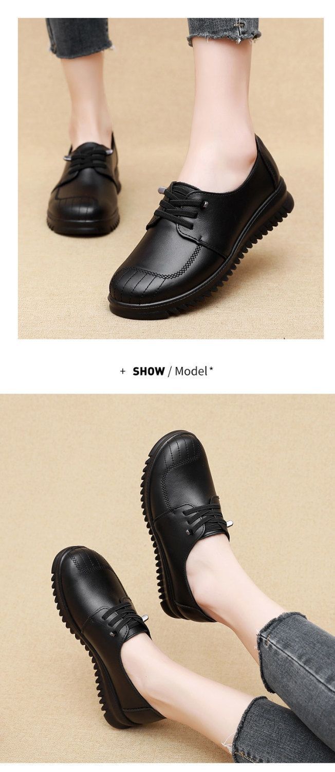 Grulla de Nuca Blanca Zapatos Individuales de Cuero Genuino Suave para Mujer Zapatos para Madre de Mediana Edad y Anciana Estilo Nuevo de Primavera y Otoño Suela Suave Cómodos de Piso Plano Antideslizantes Zapatos de Trabajo