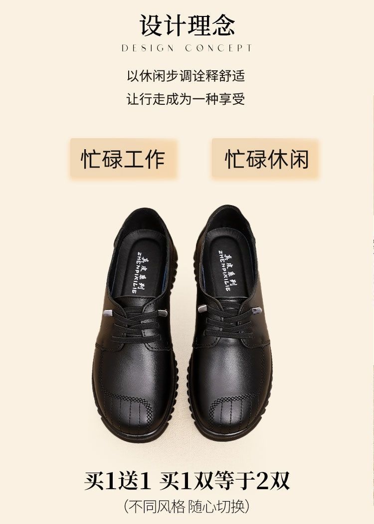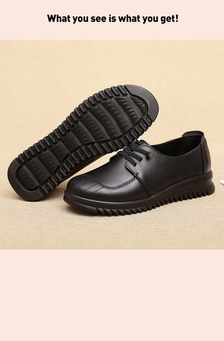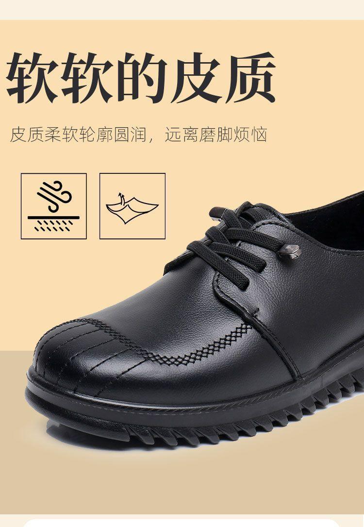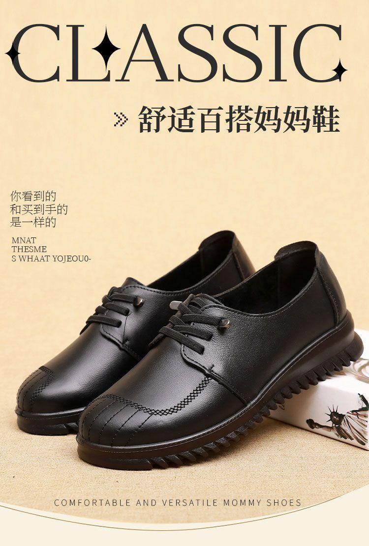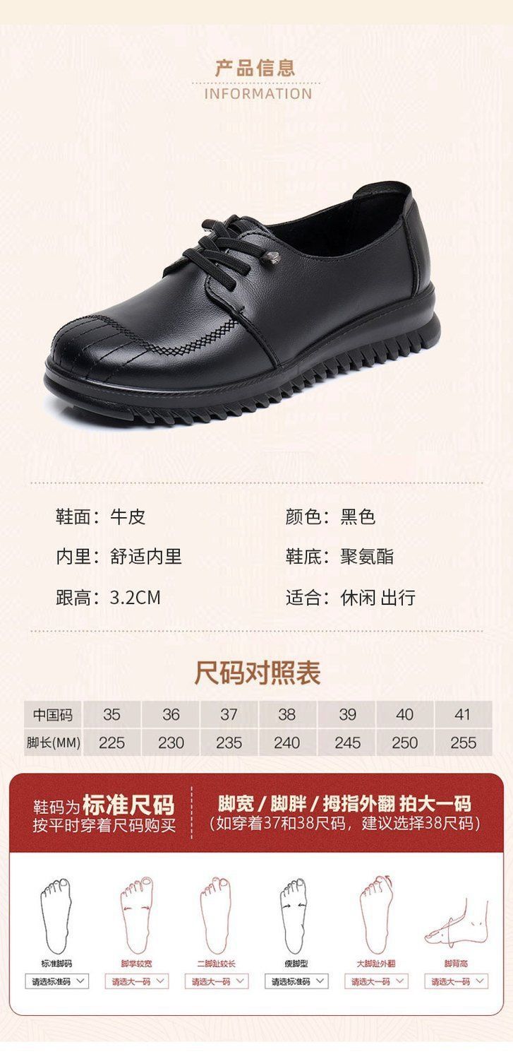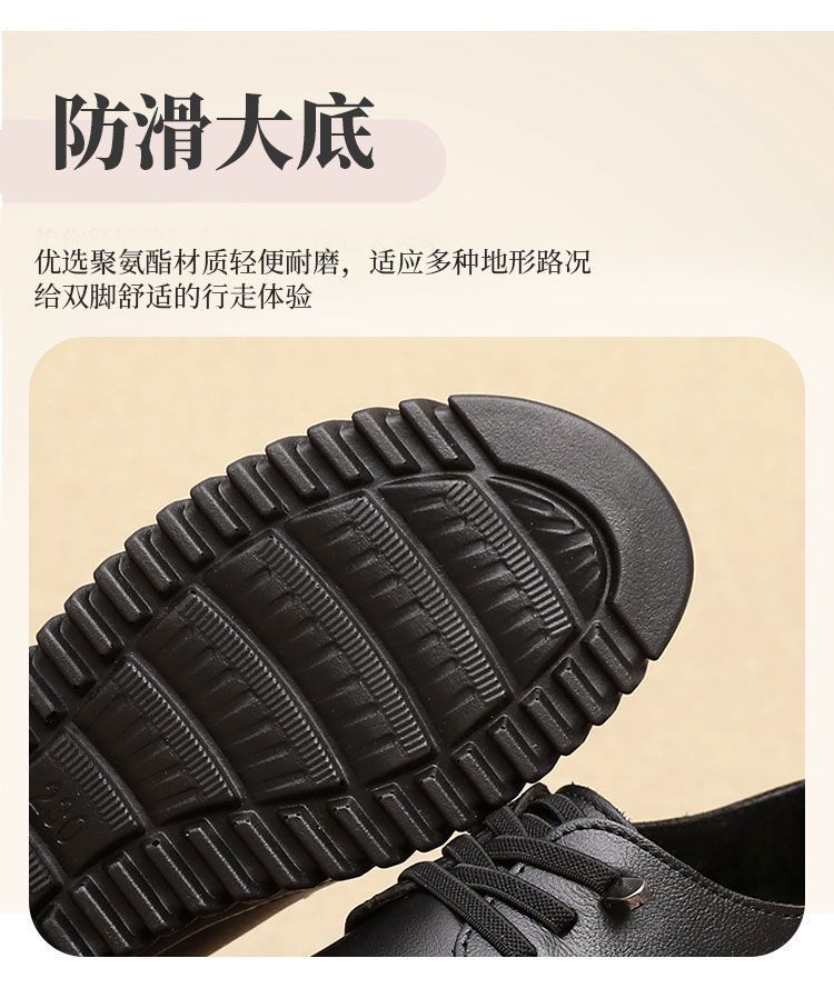 Grulla de Nuca Blanca Zapatos Individuales de Cuero Genuino Suave para Mujer Zapatos para Madre de Mediana Edad y Anciana Estilo Nuevo de Primavera y Otoño Suela Suave Cómodos de Piso Plano Antideslizantes Zapatos de Trabajo