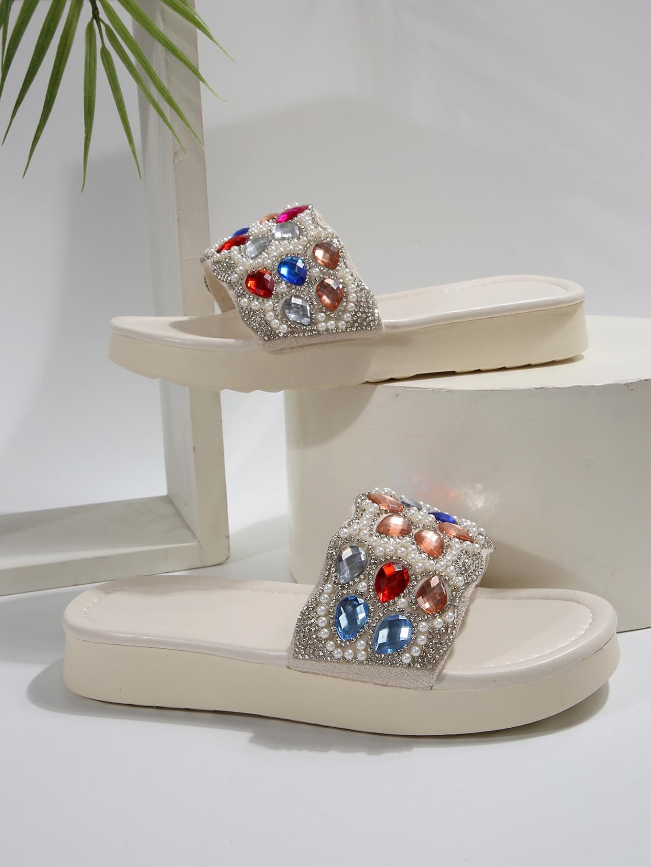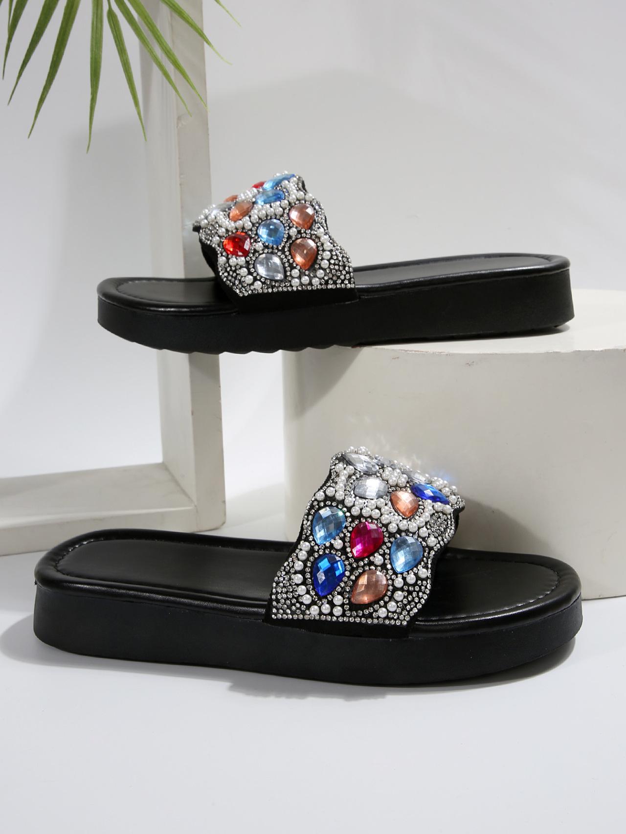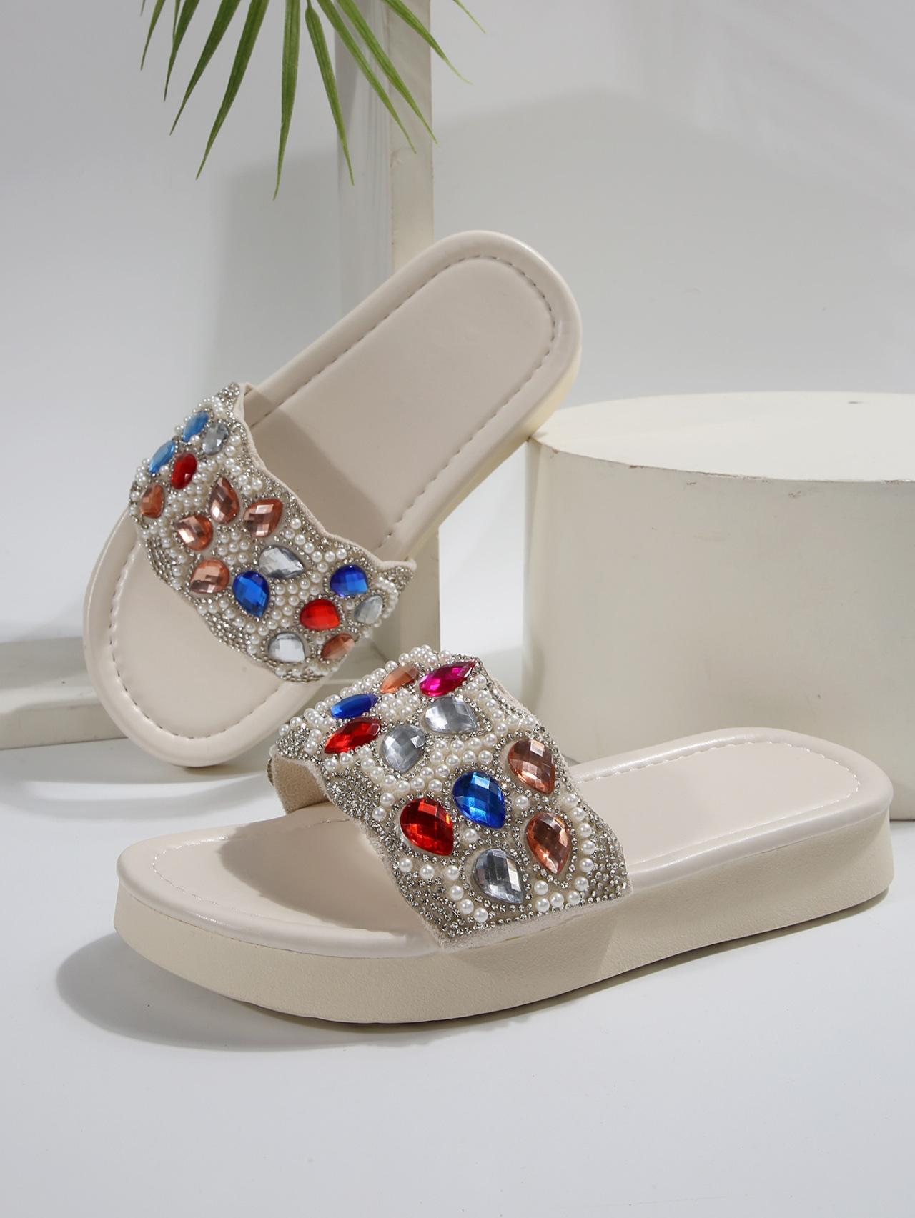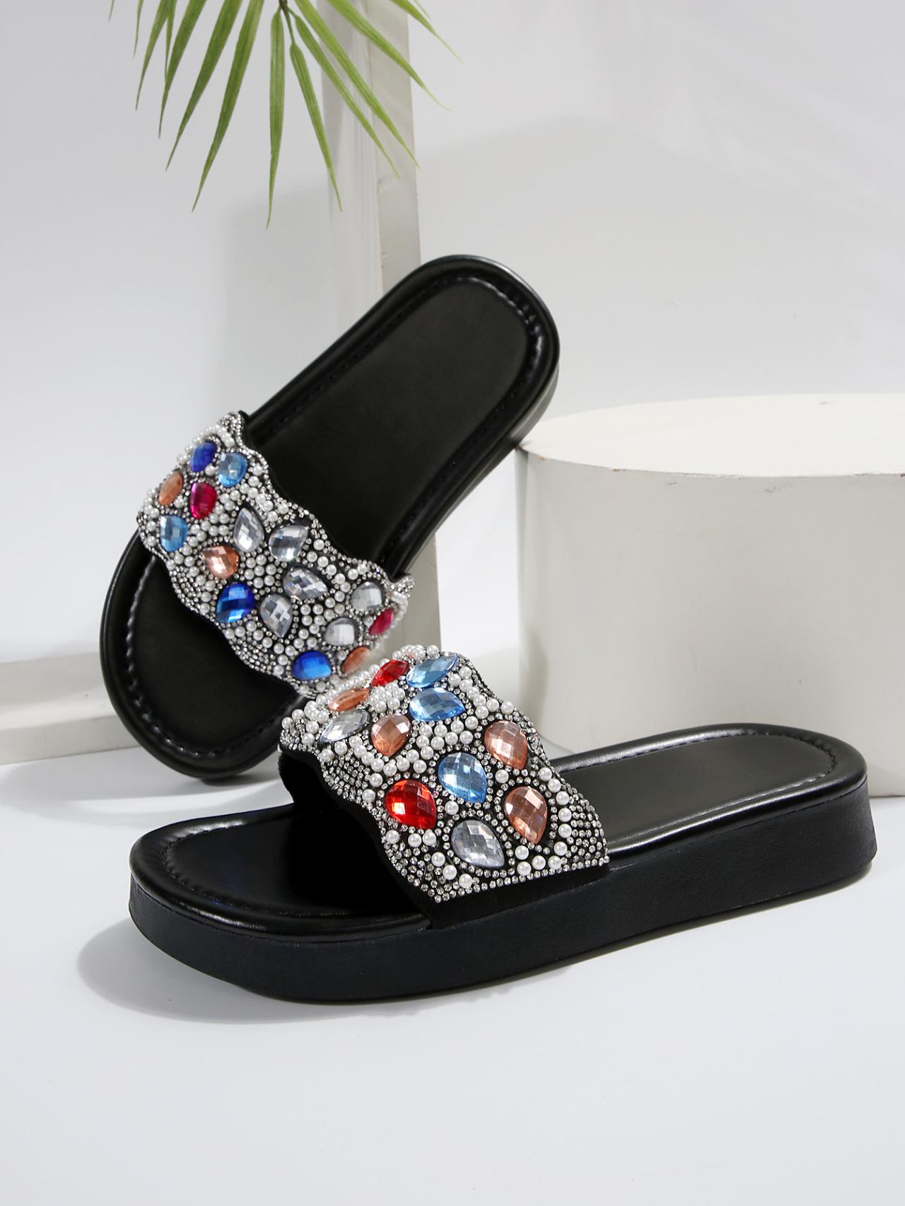 Europeas y americanas transfronterizas 2025 de mujer pedrería de una línea verano nuevas zapatillas moda para exteriores sandalias y zapatillas de mujer al por mayor talla grande
