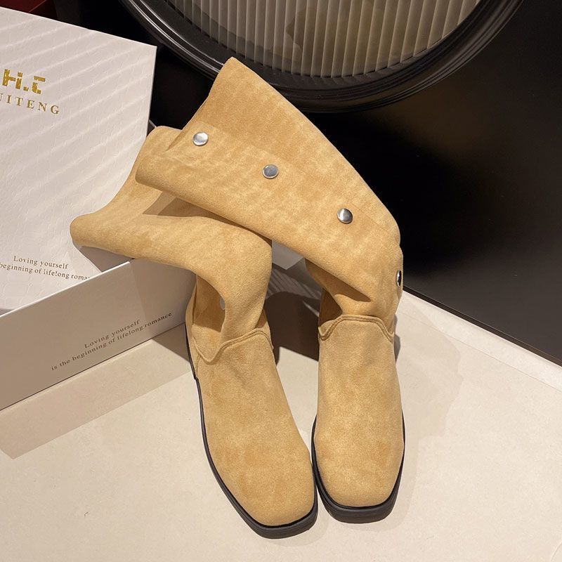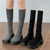 Usar Botas Afuera Otoño e Invierno 2025 Nuevas Color Puro Tacón Grueso Elegantes Antideslizantes Botas Ajustadas Botas Sobre la Rodilla
