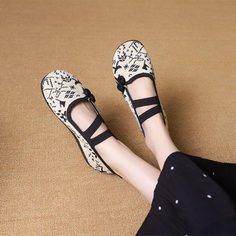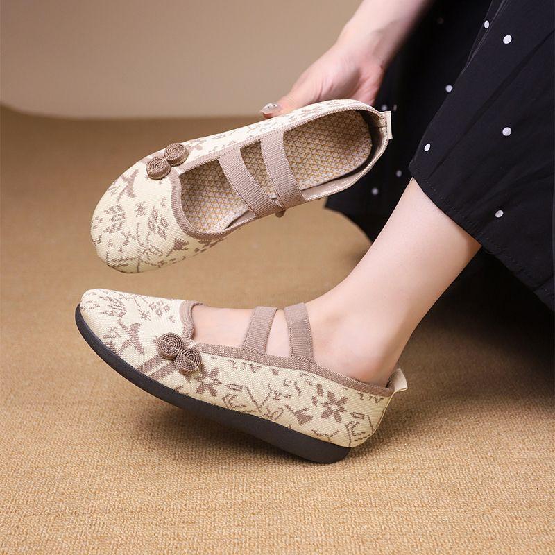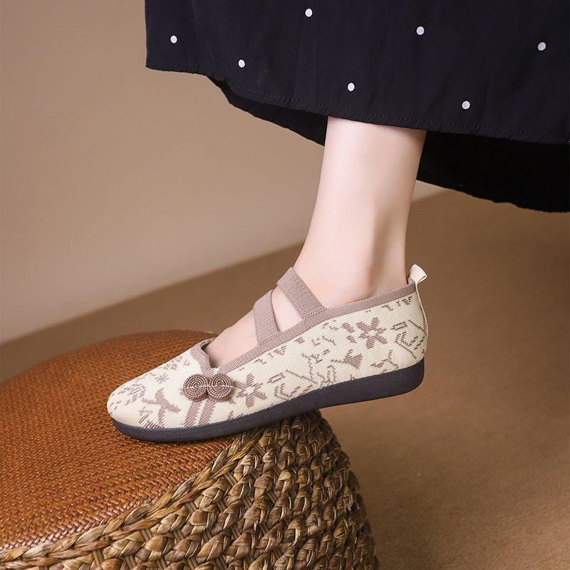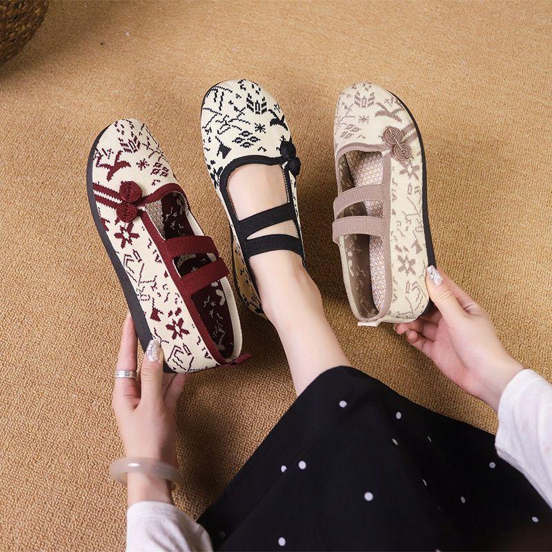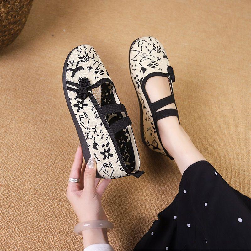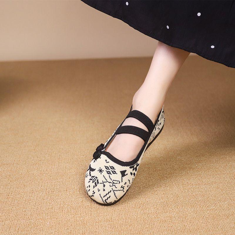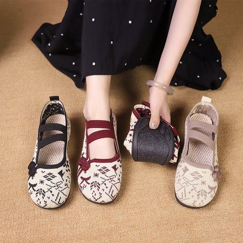 Zapatos de Tela de Pekín Antiguos Mujer Transpirables Antideslizantes Suela Suave Casual Estilo Étnico Zapatos Planos Slip-on Zapatos Individuales Otoño 2025 Nuevo