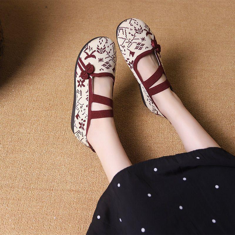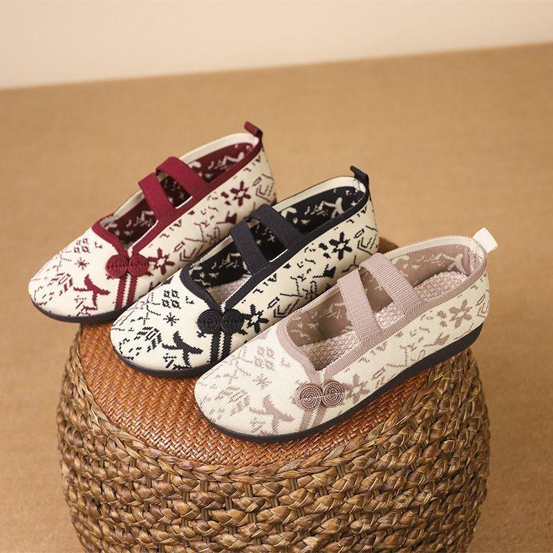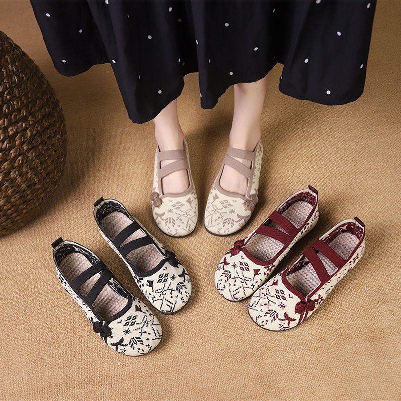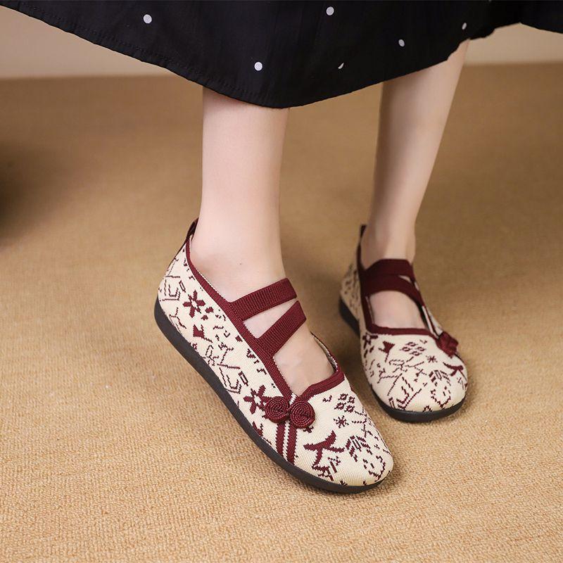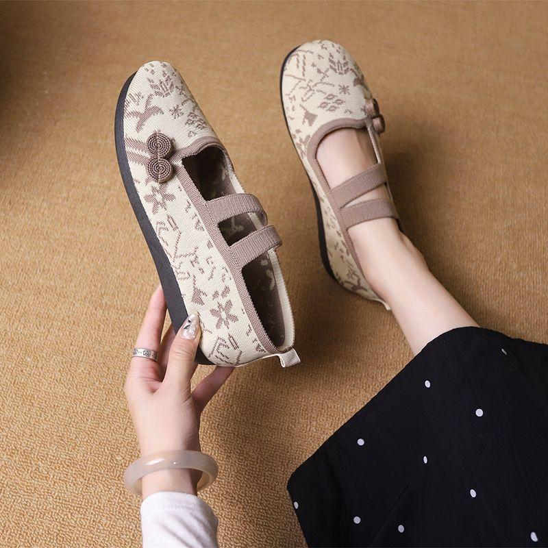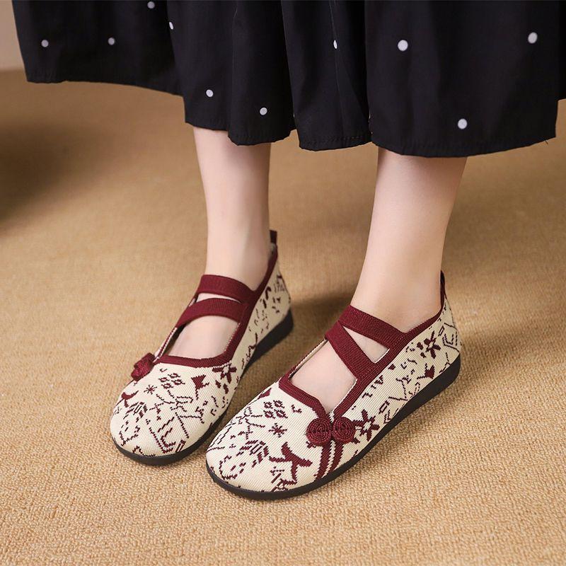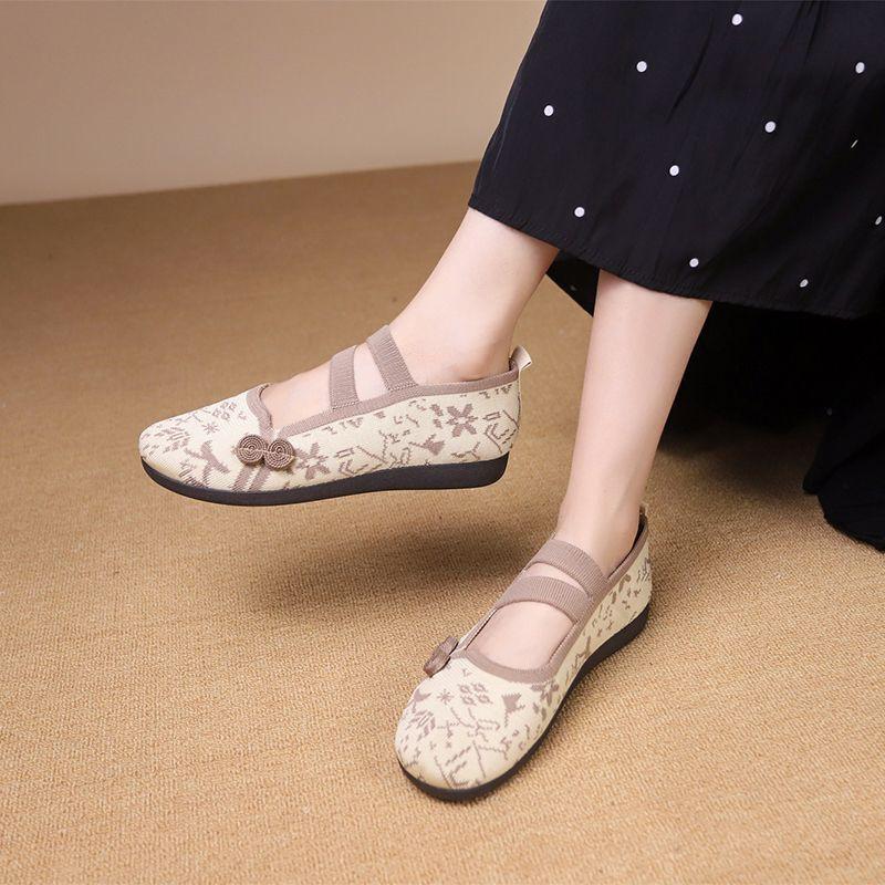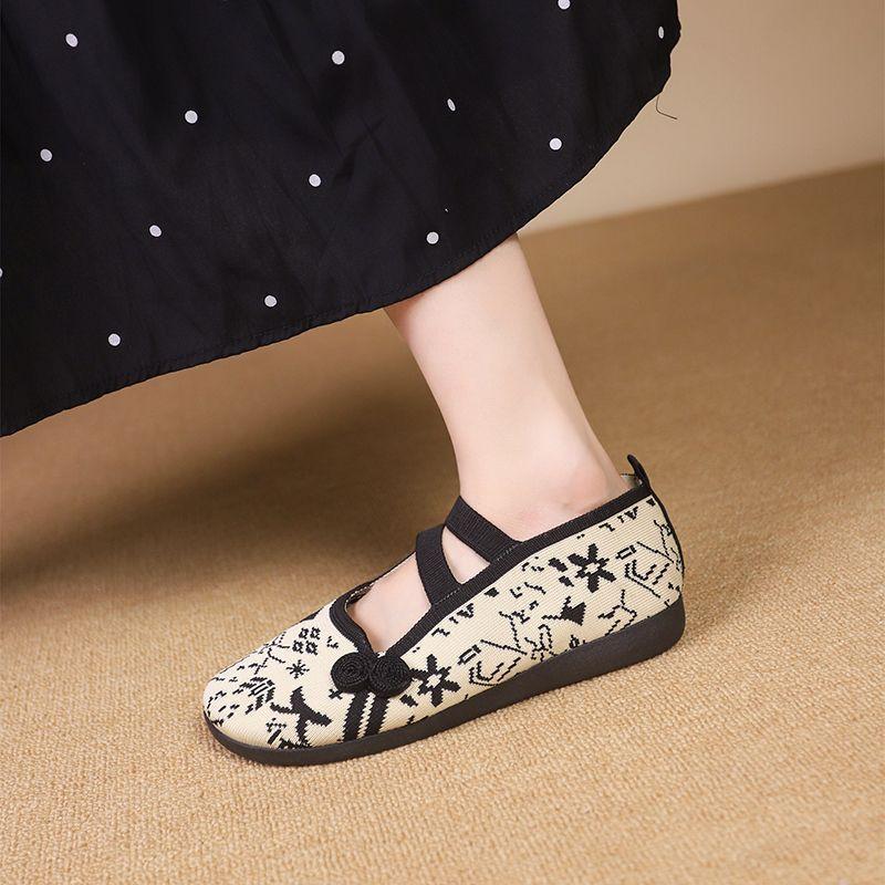 Zapatos de Tela de Pekín Antiguos Mujer Transpirables Antideslizantes Suela Suave Casual Estilo Étnico Zapatos Planos Slip-on Zapatos Individuales Otoño 2025 Nuevo