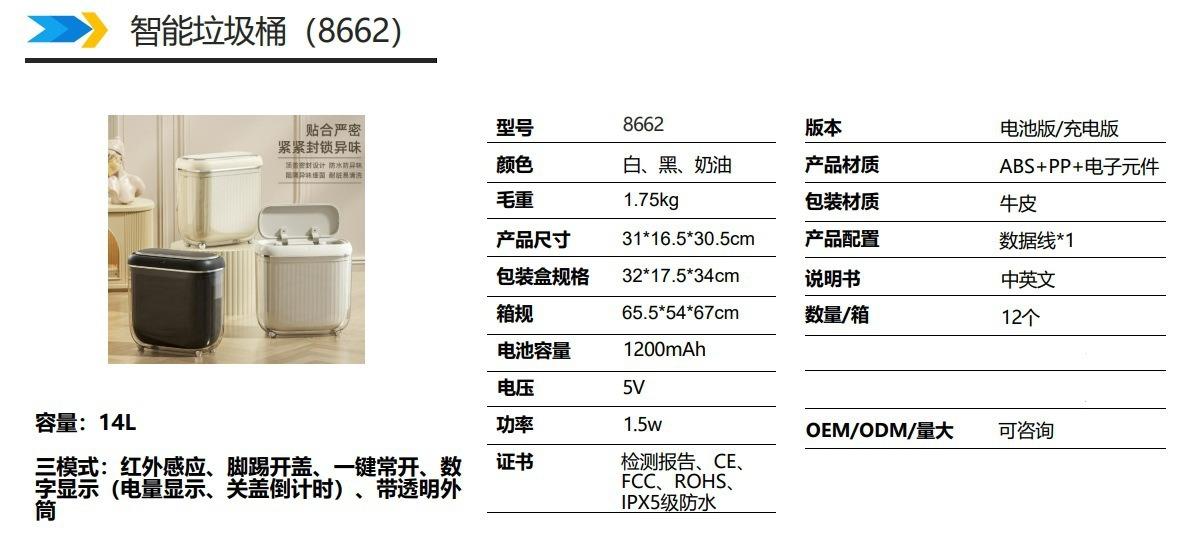 Premium products, 8661--14l white three modes (excluding pet outer barrel), 8662--14l white three modes (inclu...