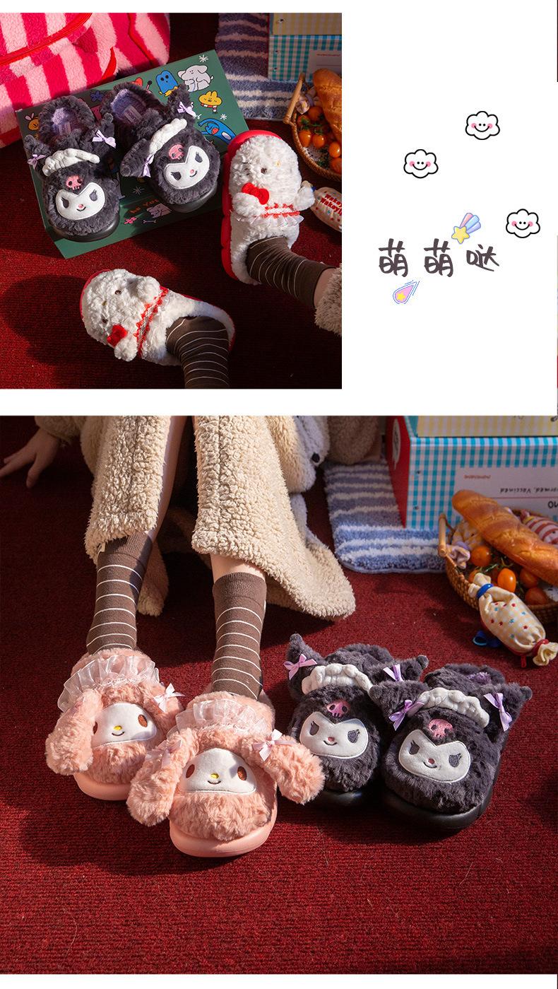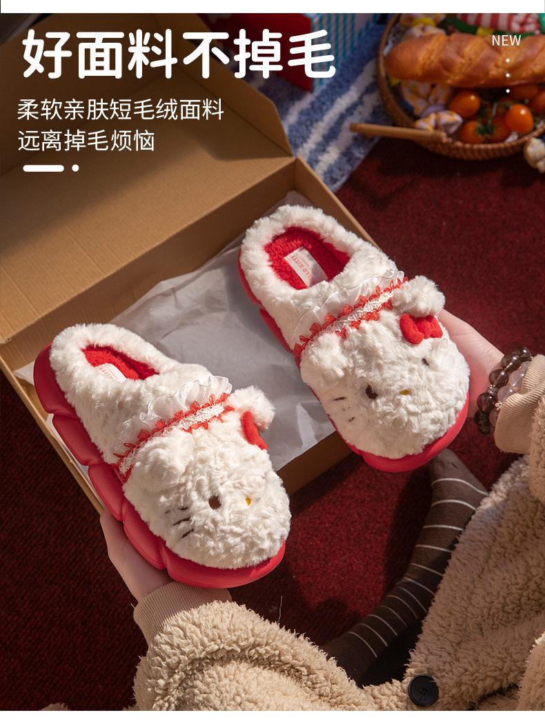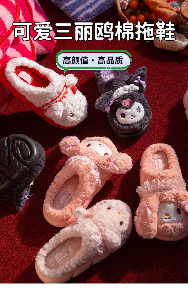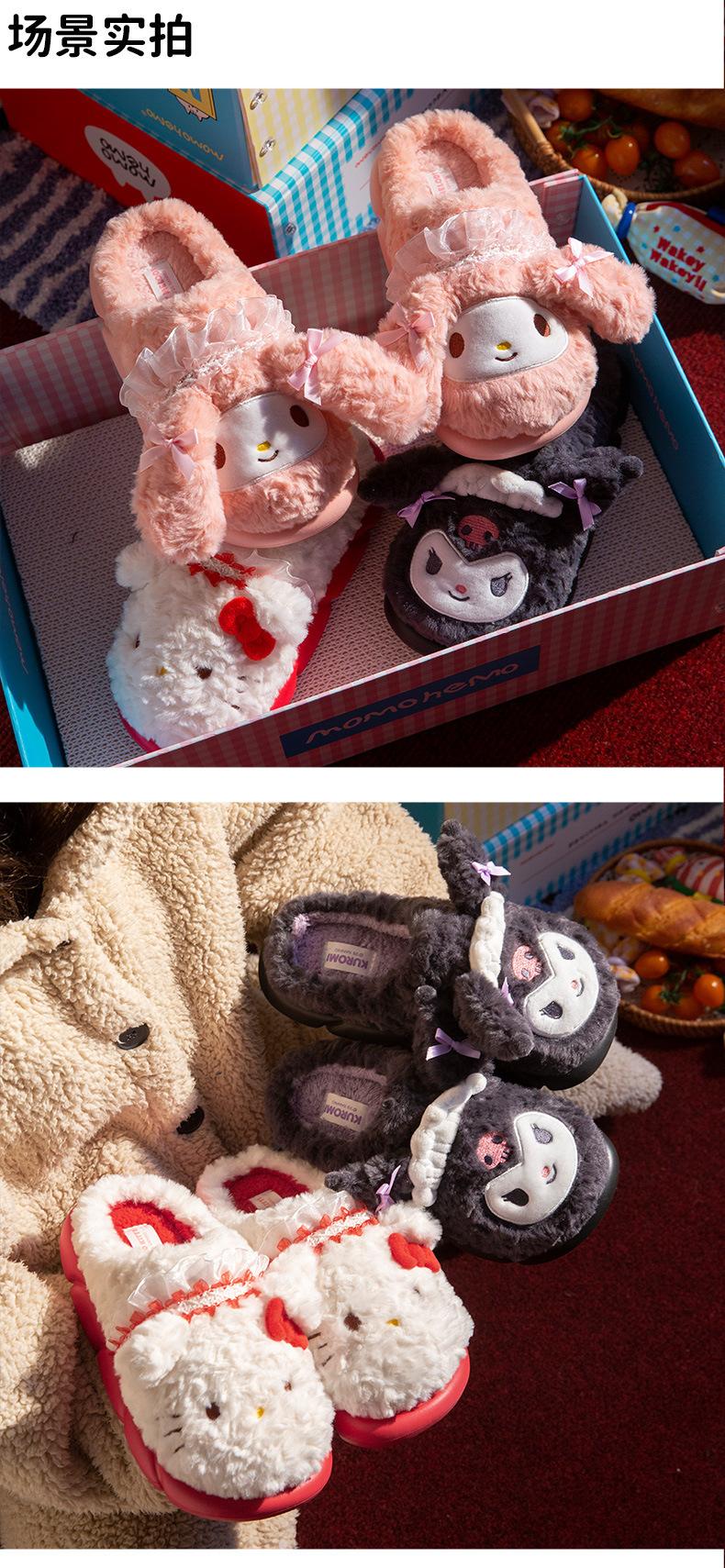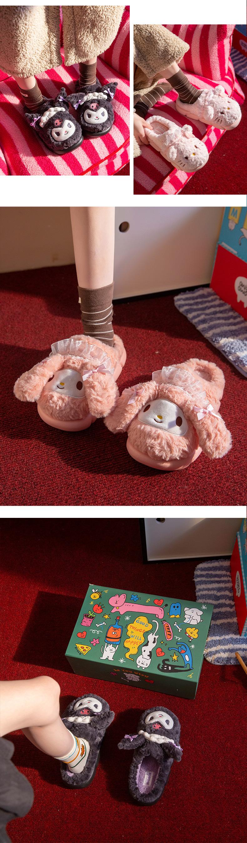 Pantuflas de Algodón Sanrio para Mujer Hogar Dormitorio Lindas Estilo Padre-Hijo Pantuflas para Niños Invierno Felpa Cálidas Suela Gruesa Antideslizante