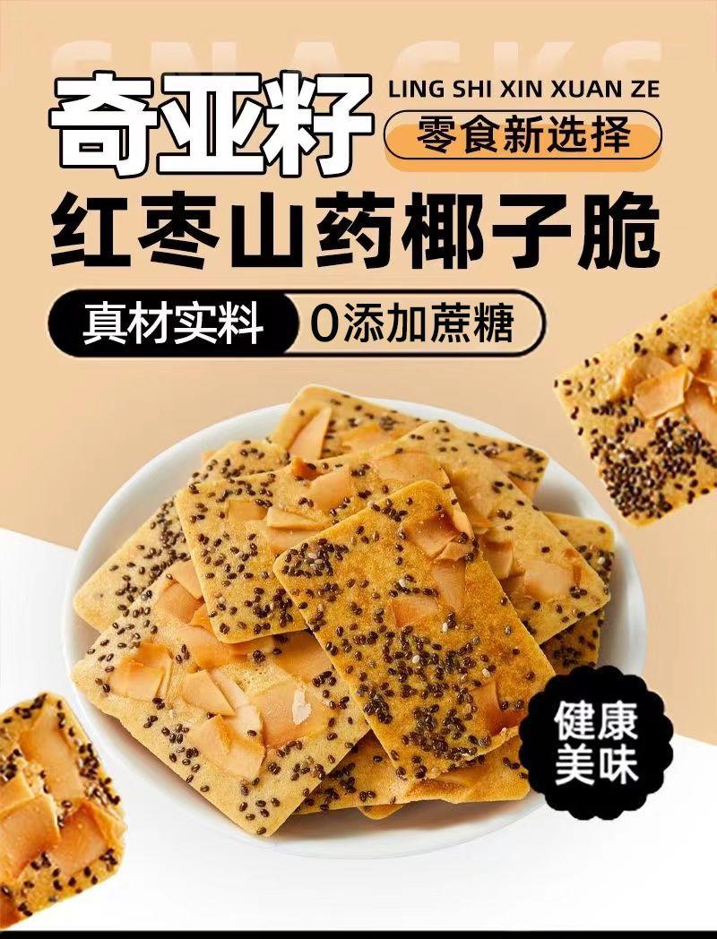 Galletas crujientes de camote, coco y semillas de chía, saludables, con dátiles rojos, dormitorio, oficina, ocio, antojos, snacks