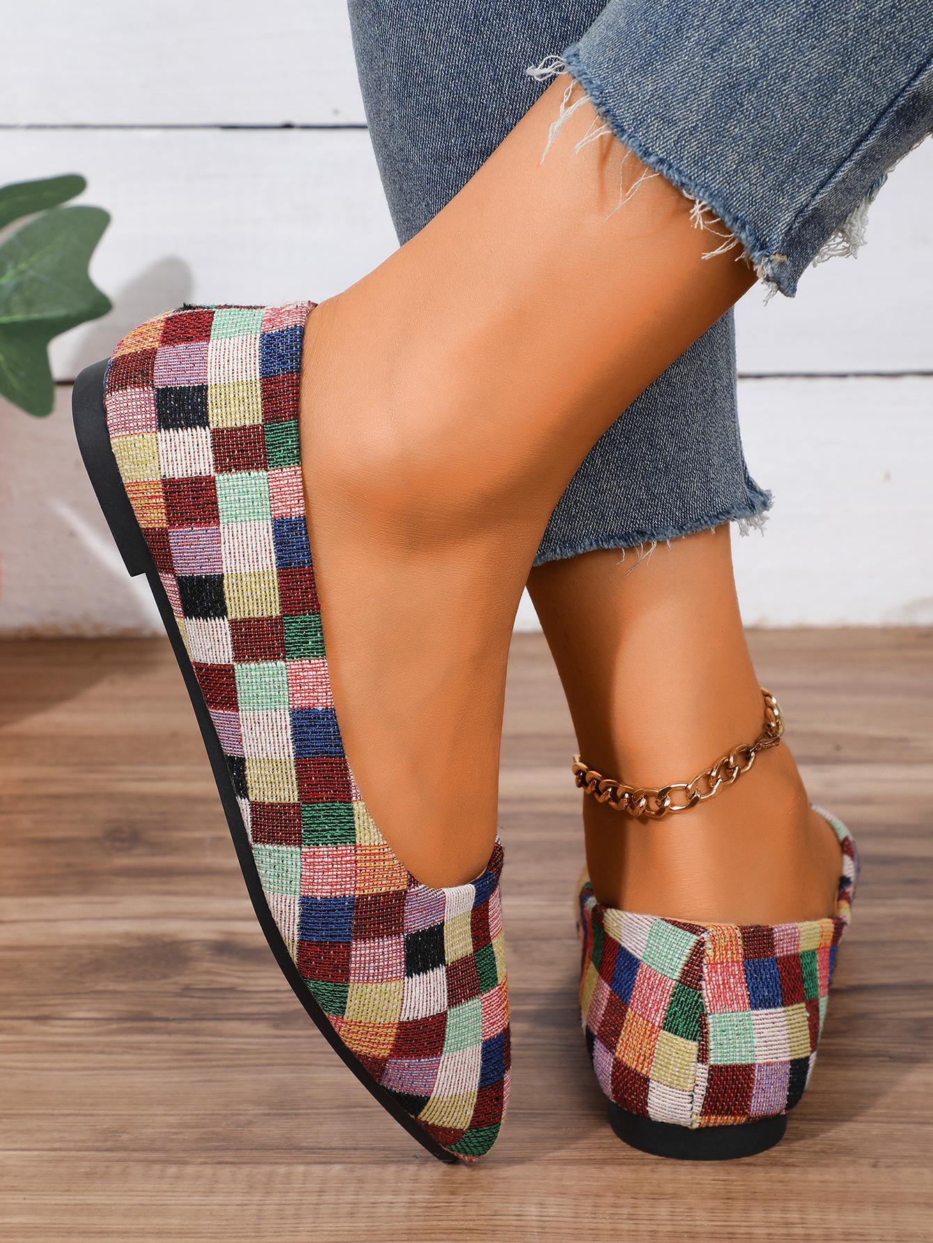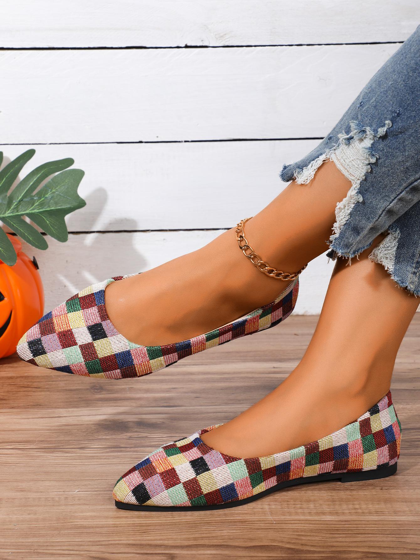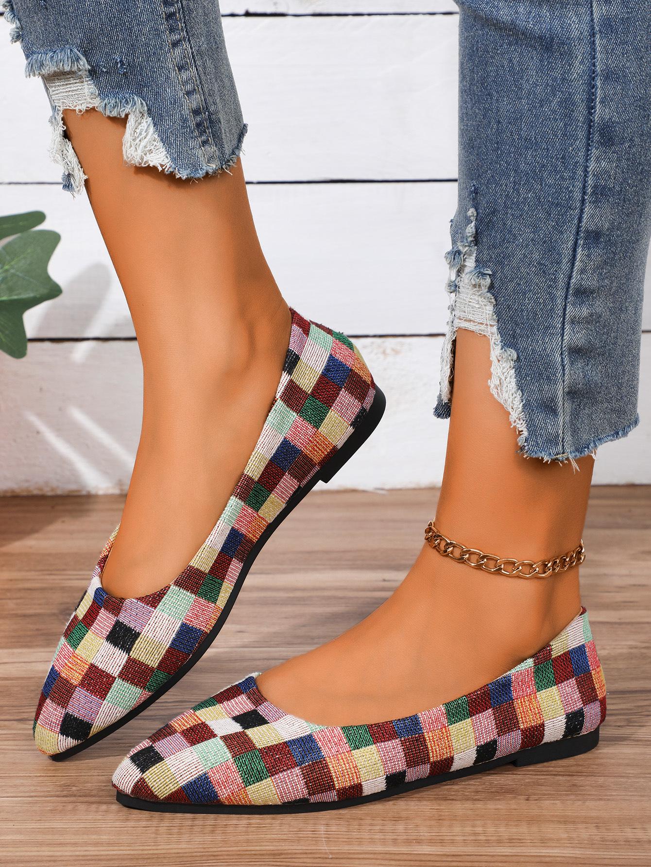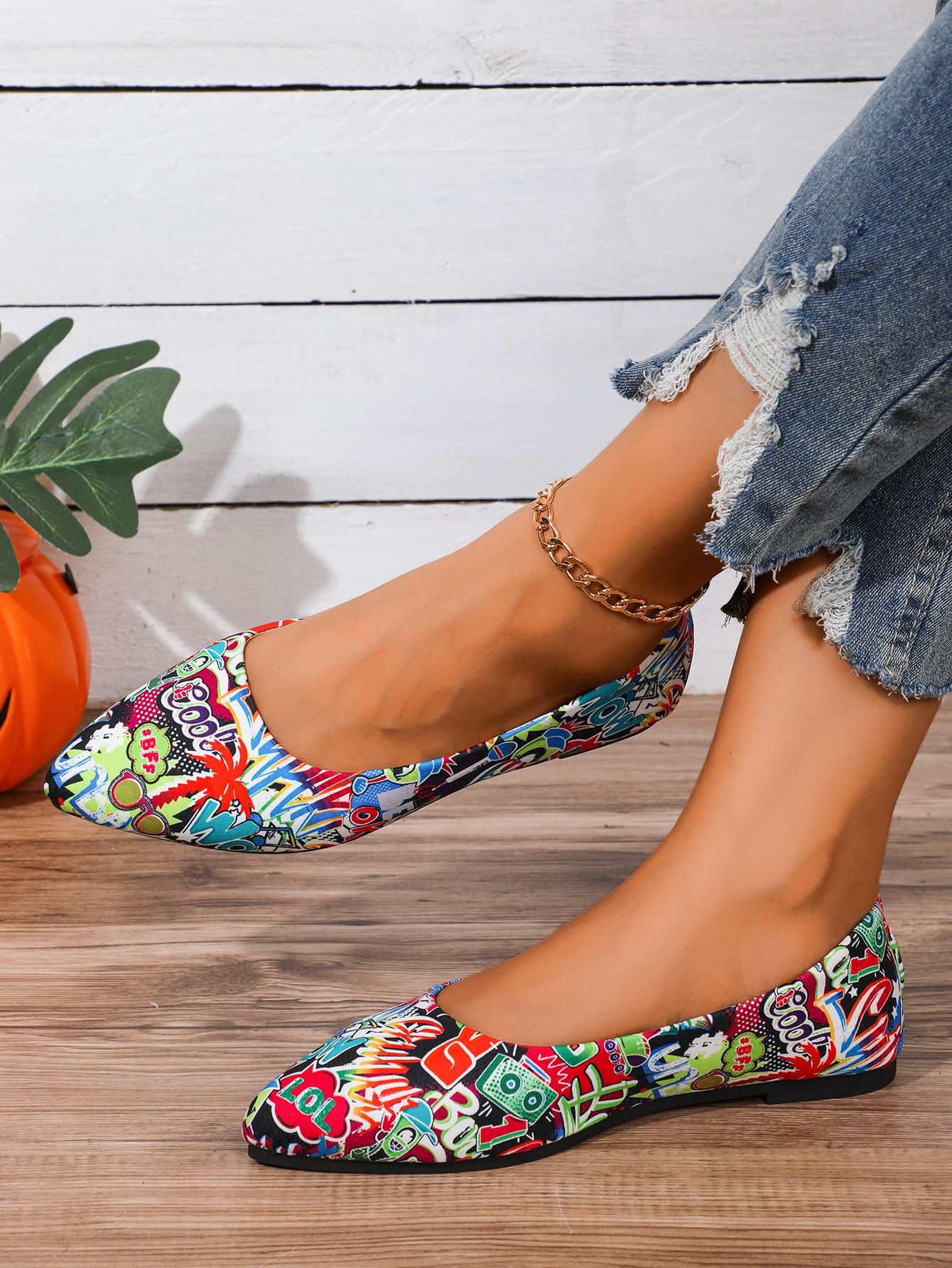 Nueva Moda Transfronteriza Colorida Punta Afilada Zapato Plano de Boca Baja Individual para Mujer Talla Grande Moda Casual Versátil Mocasines Planos