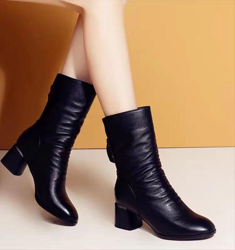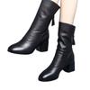 Nuevas Botas de Media Caña de Cuero Suave Otoño/Invierno para Mujer Botas Martin de Tacón Grueso hasta la Rodilla Versátiles de Punta Media Tacón Grueso Adelgazantes