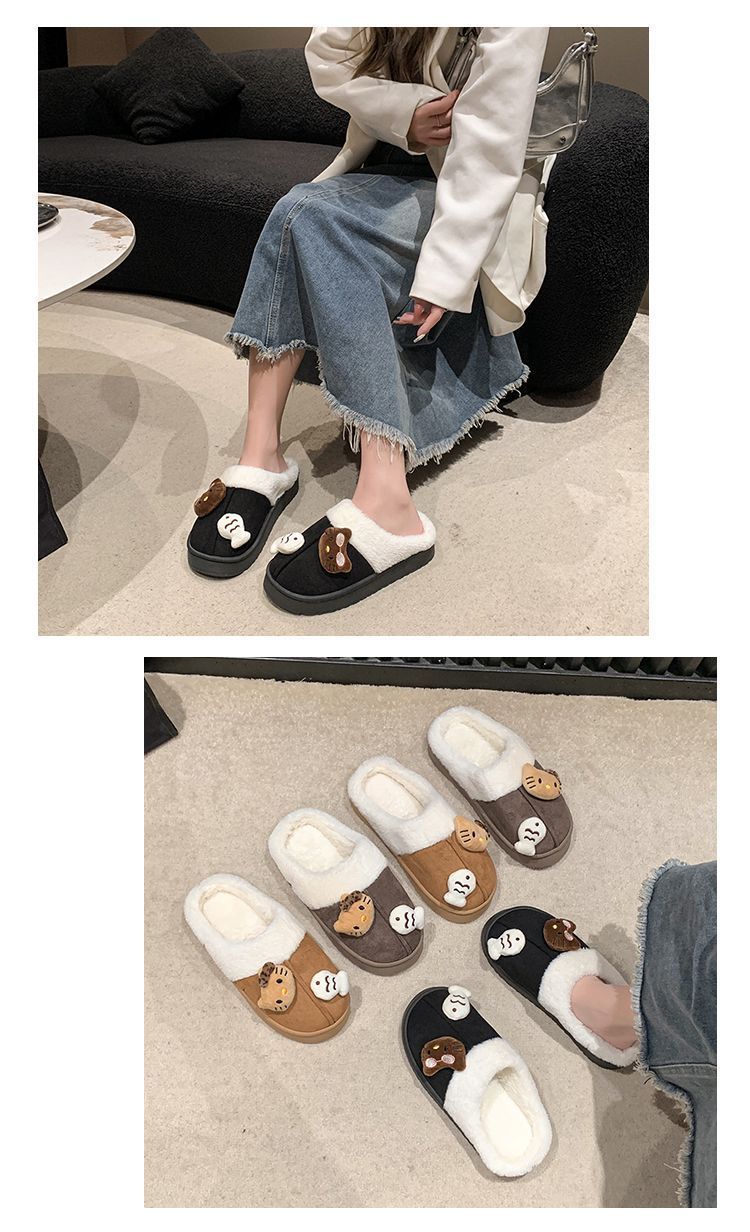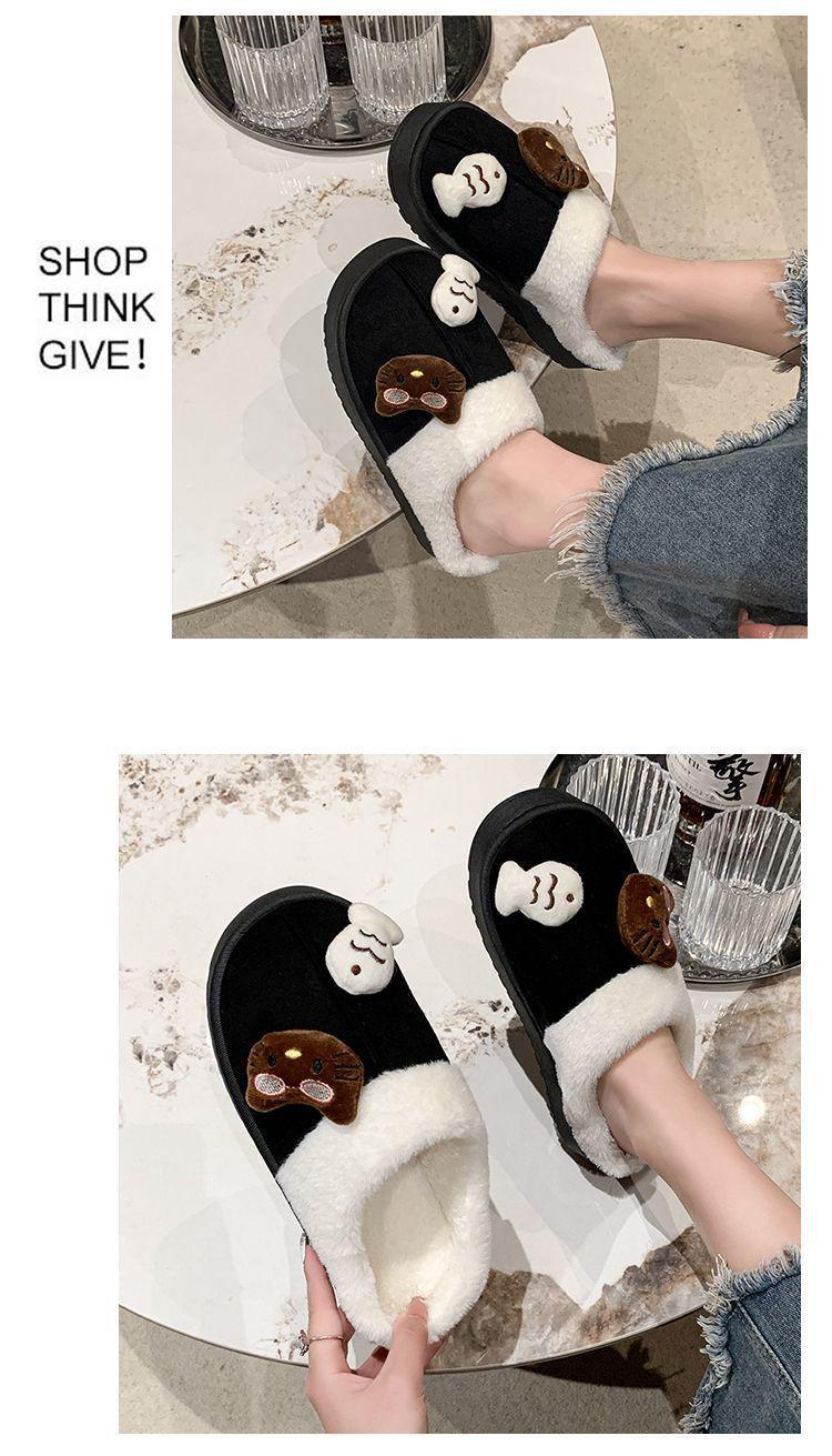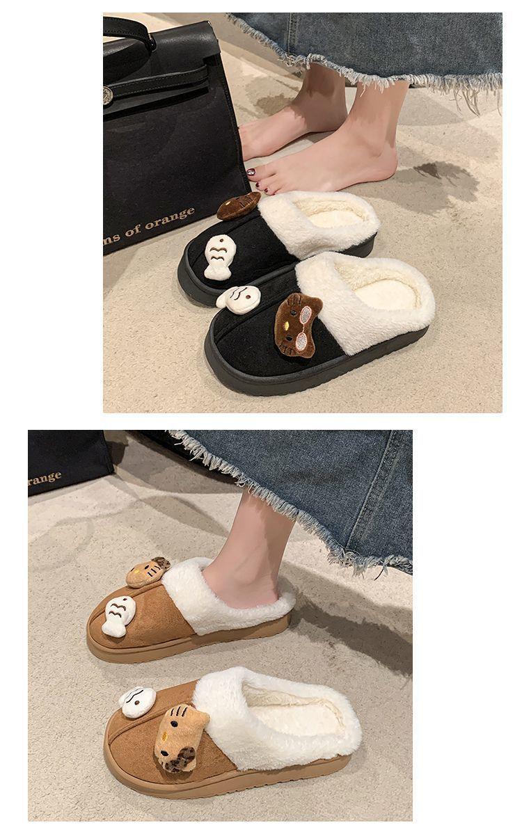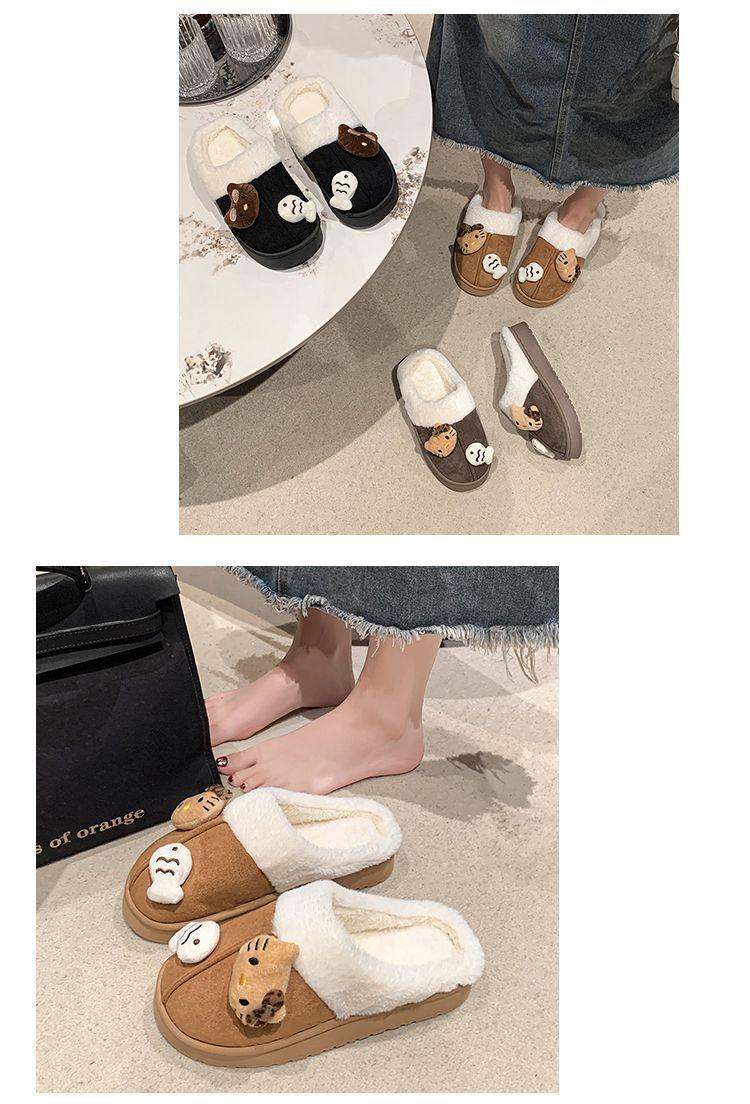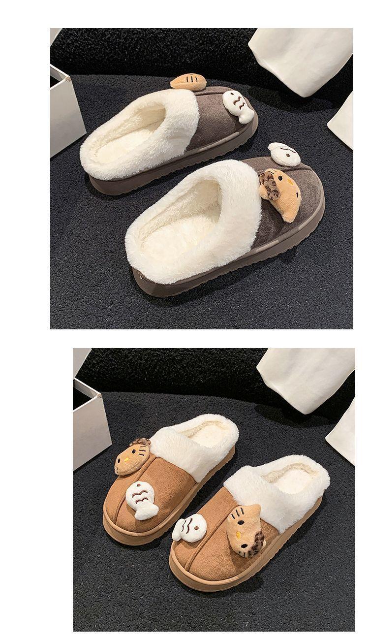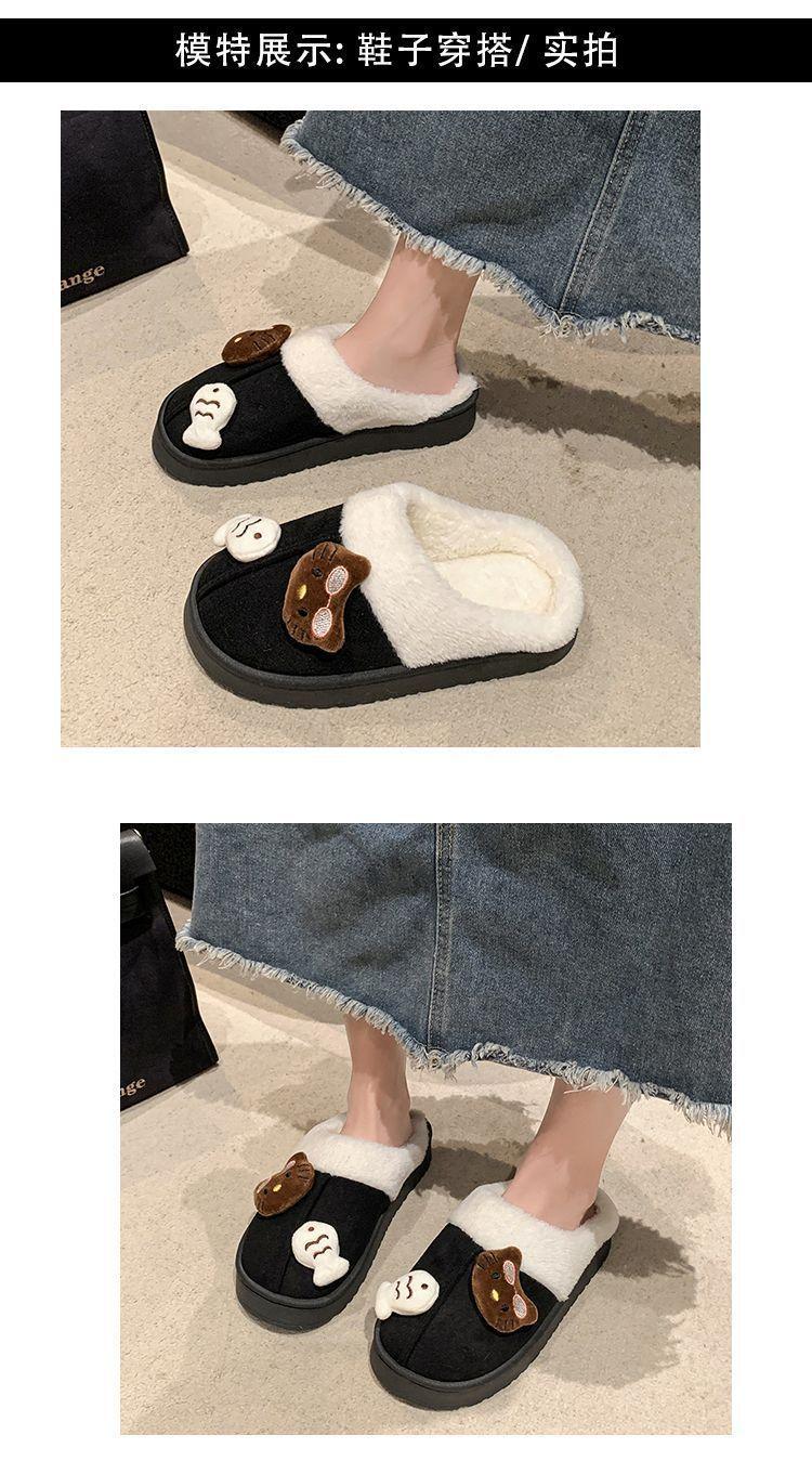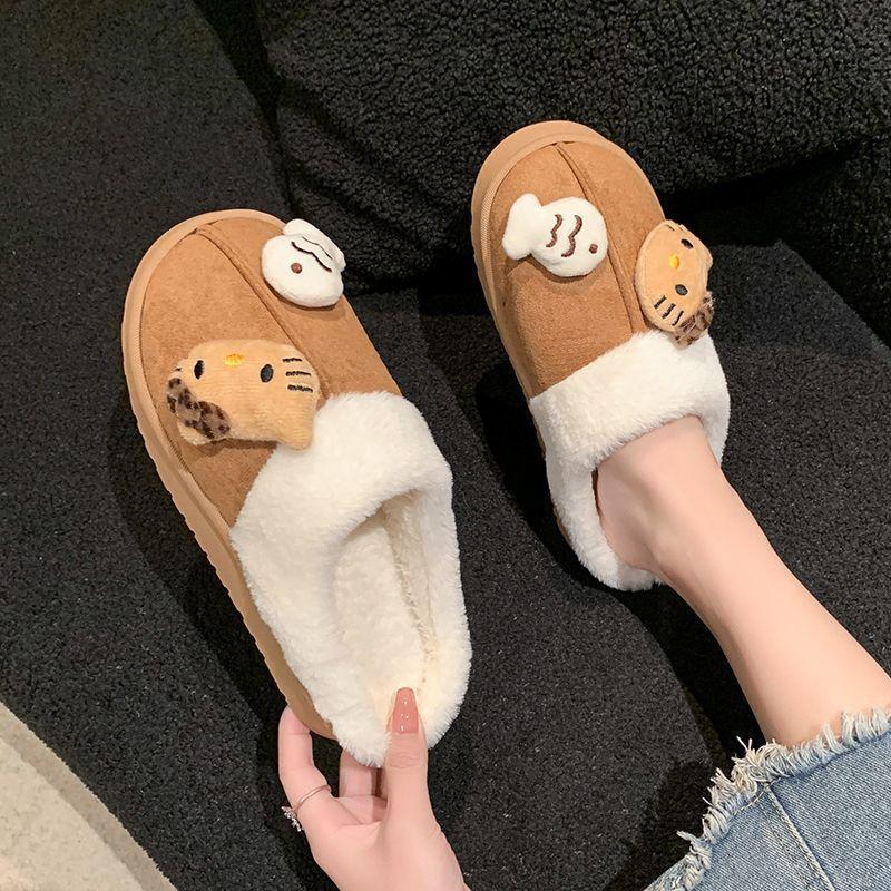 Pantuflas esponjosas de suela gruesa de gatito de dibujos animados lindo 2025 Otoño/Invierno Nuevo Cálido Cómodo Antideslizante Punta Cerrada Algodón