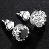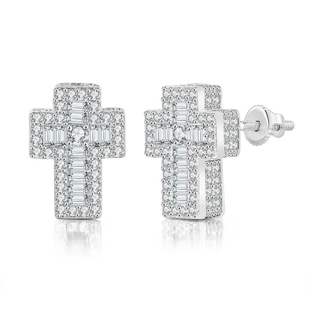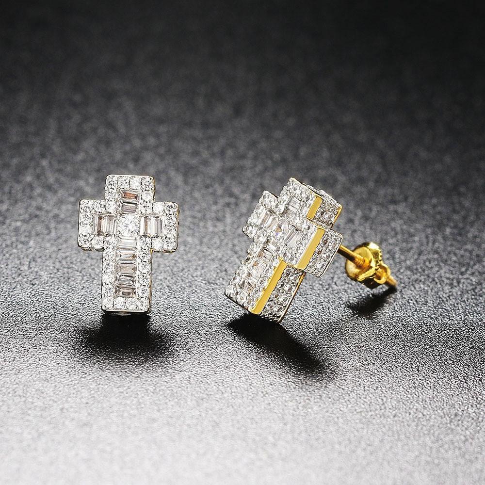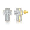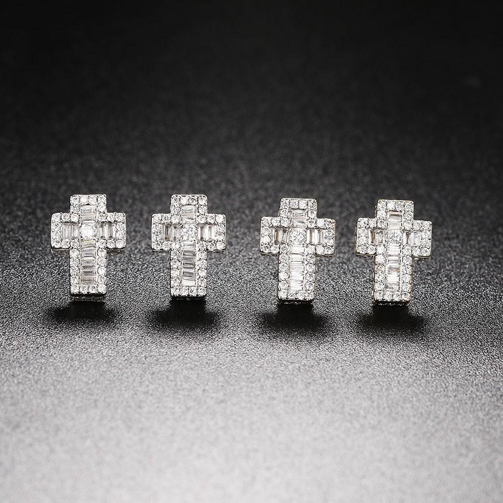 Aretes de botón cruz tridimensionales de hip hop con diamantes completos, para hombre, con separación de color, circonita micro incrustada galvanizada, aretes populares europeos y americanos