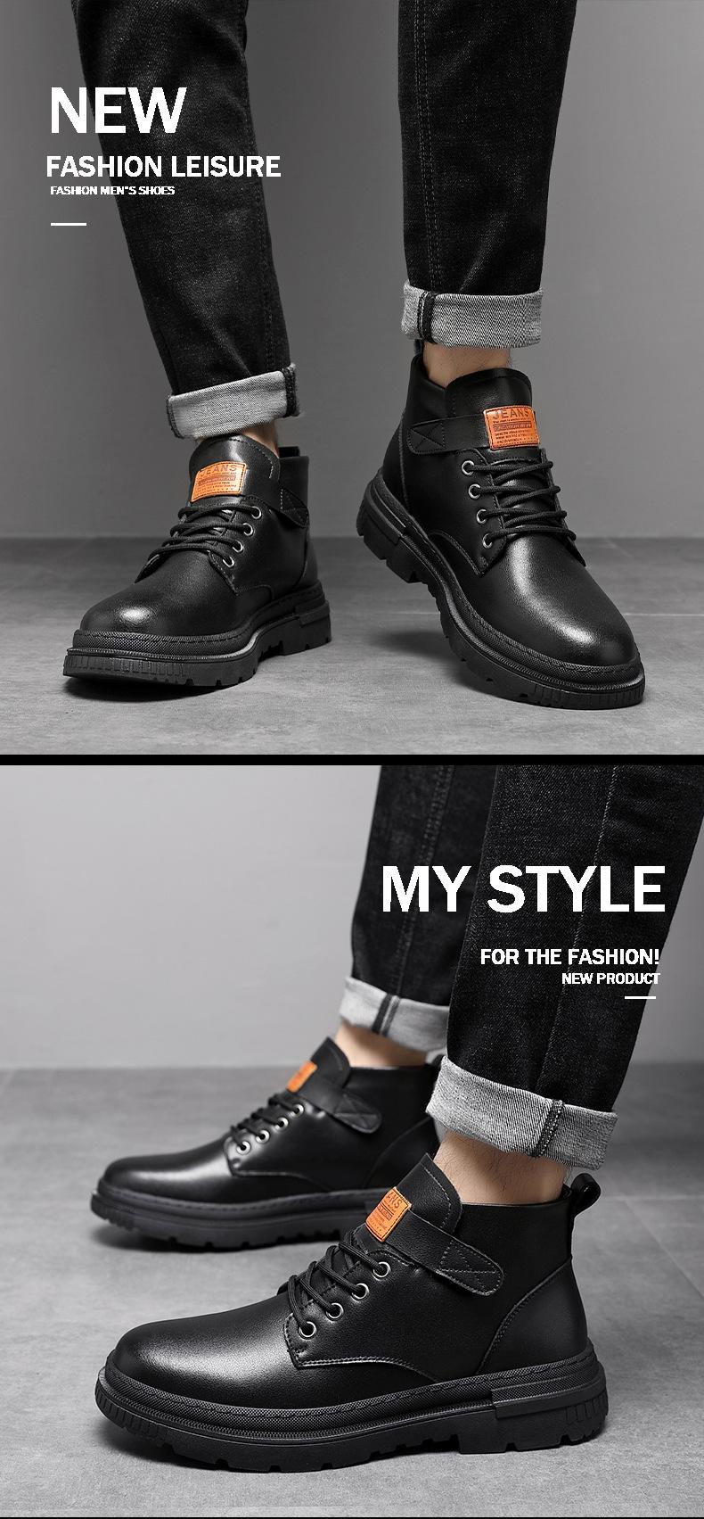 Botas Martin para hombre 2025 nuevo otoño e invierno de media caña de piel genuina casual zapatos de cuero negro estilo británico ropa de trabajo botas cortas