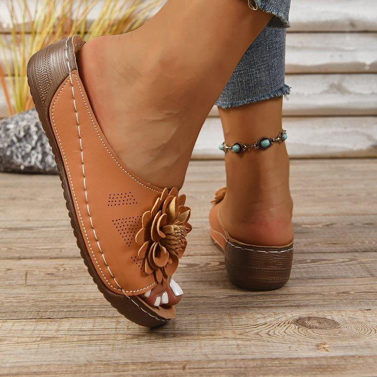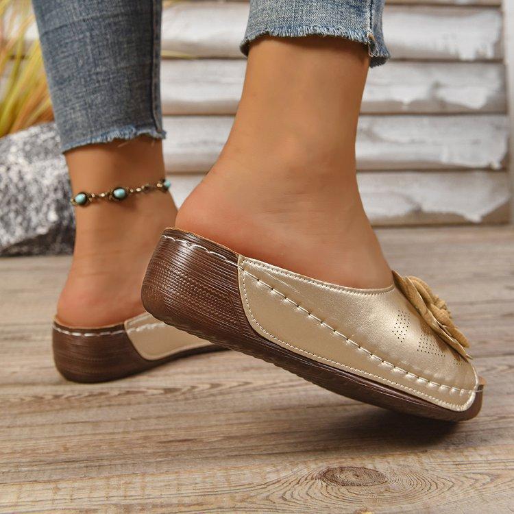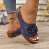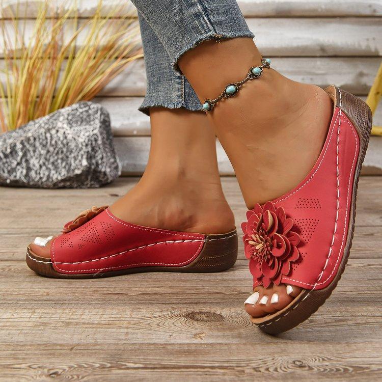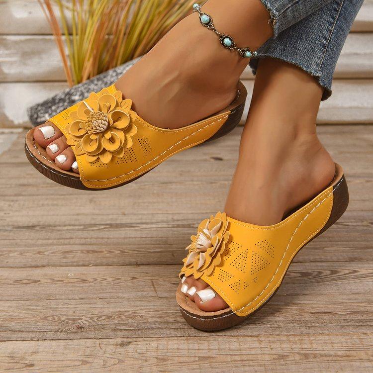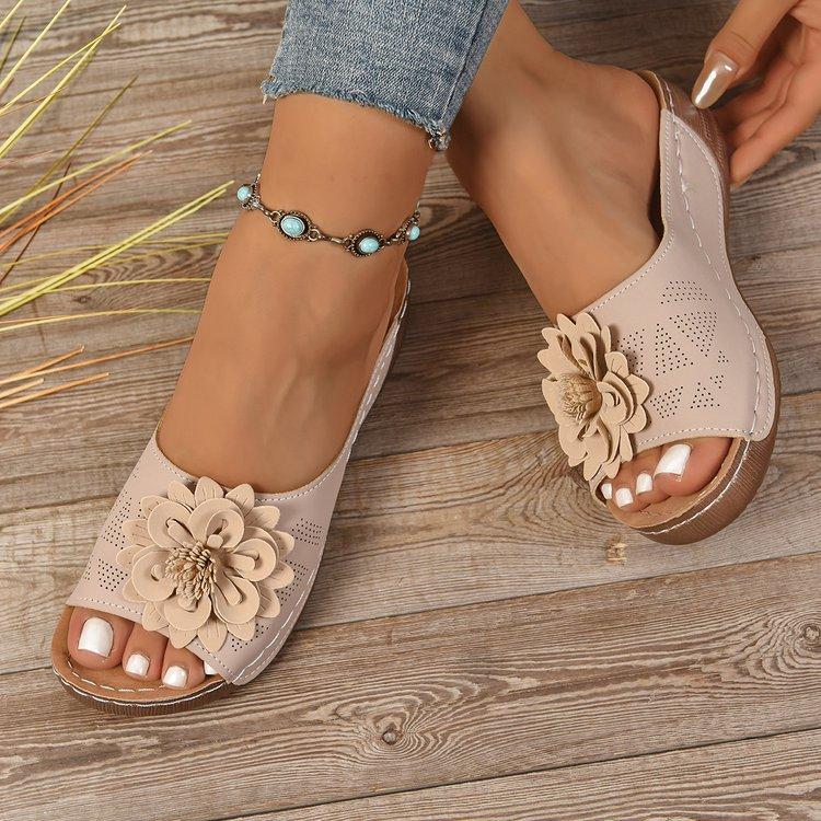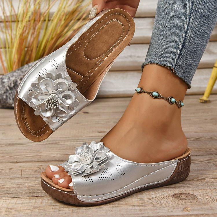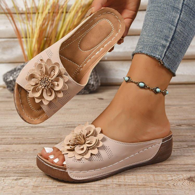 Compra Zapatillas de talla grande florales de una palabra con suela gruesa para comercio exterior europeo y americano, nuevas para mujer, de cuña, con puntera abierta, sandalias de playa para exterior al por mayor en Joom.pro
