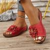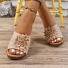 Zapatillas de talla grande florales de una palabra con suela gruesa para comercio exterior europeo y americano, nuevas para mujer, de cuña, con puntera abierta, sandalias de playa para exterior