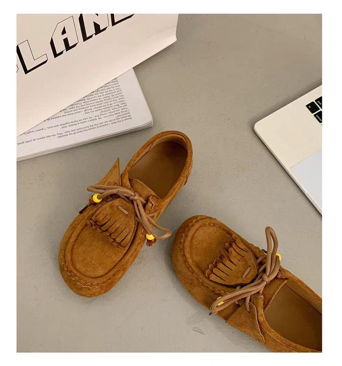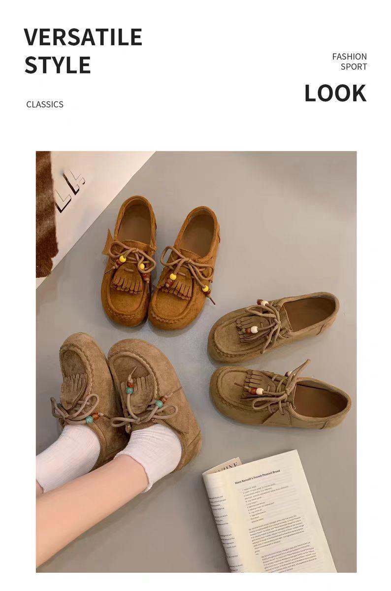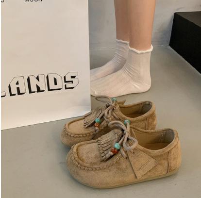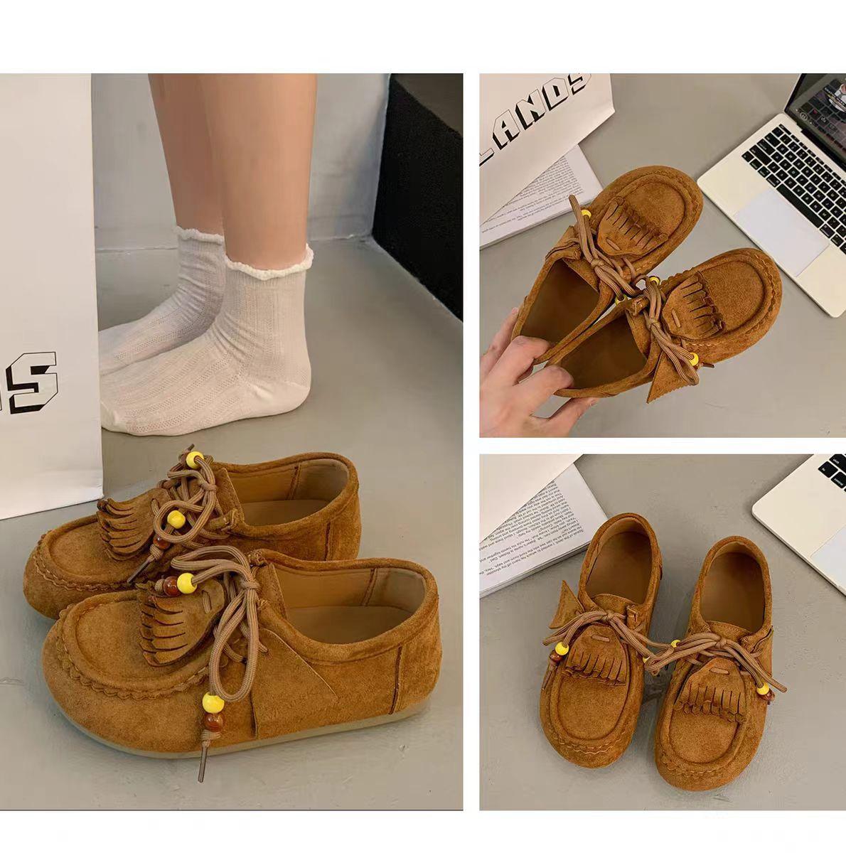 Retro Cordones Borlas Birkenstock Mujer 2025 Otoño Nuevo Gamuza Suela Gruesa Zapatos Canguro Mujeres Embarazadas Mocasines Suela Blanda
