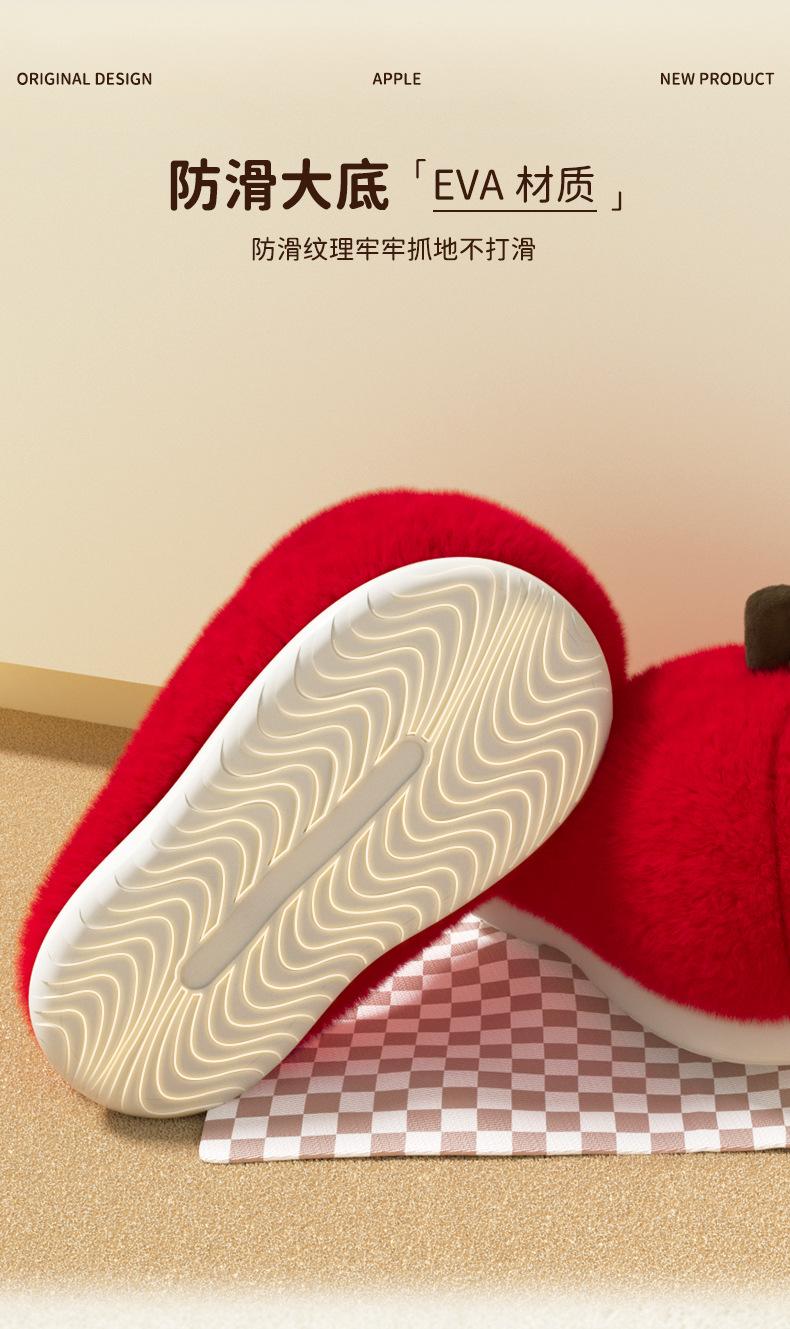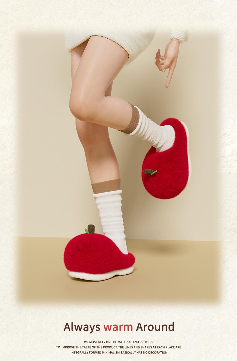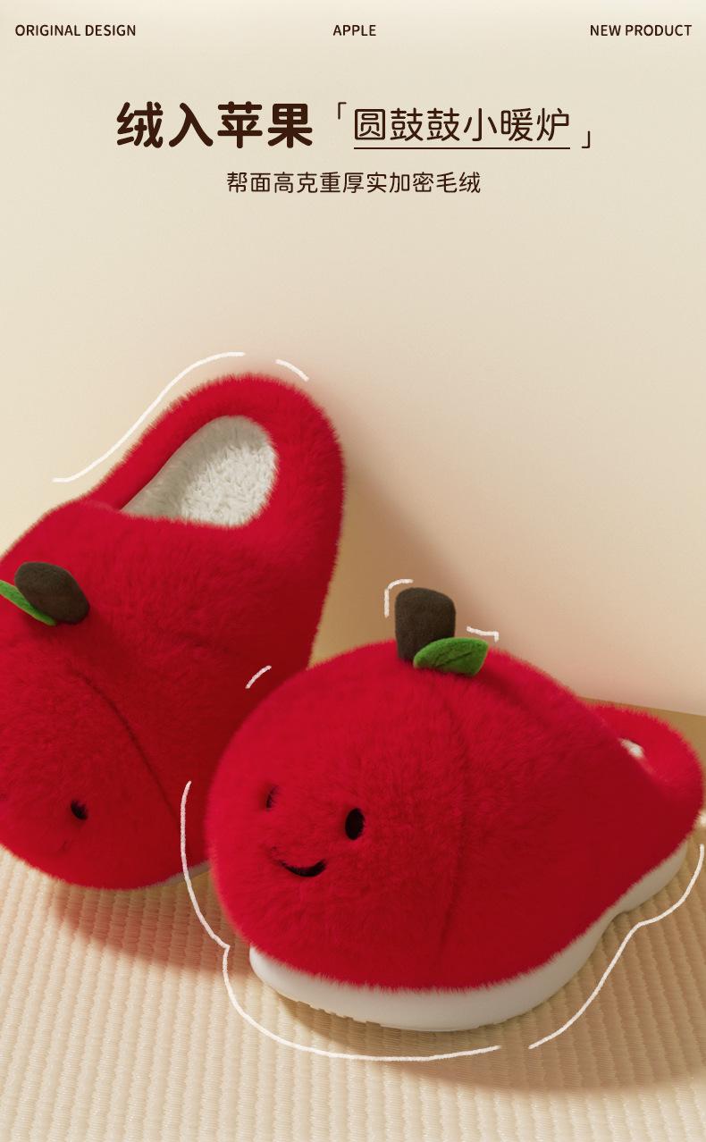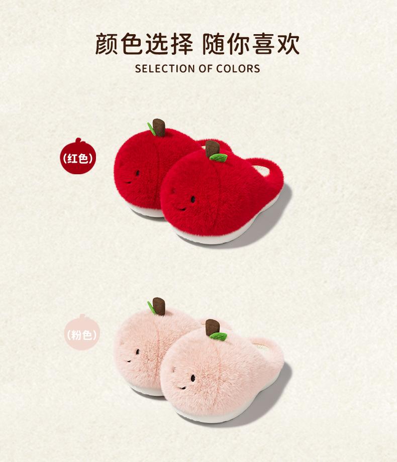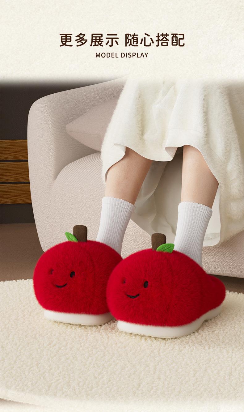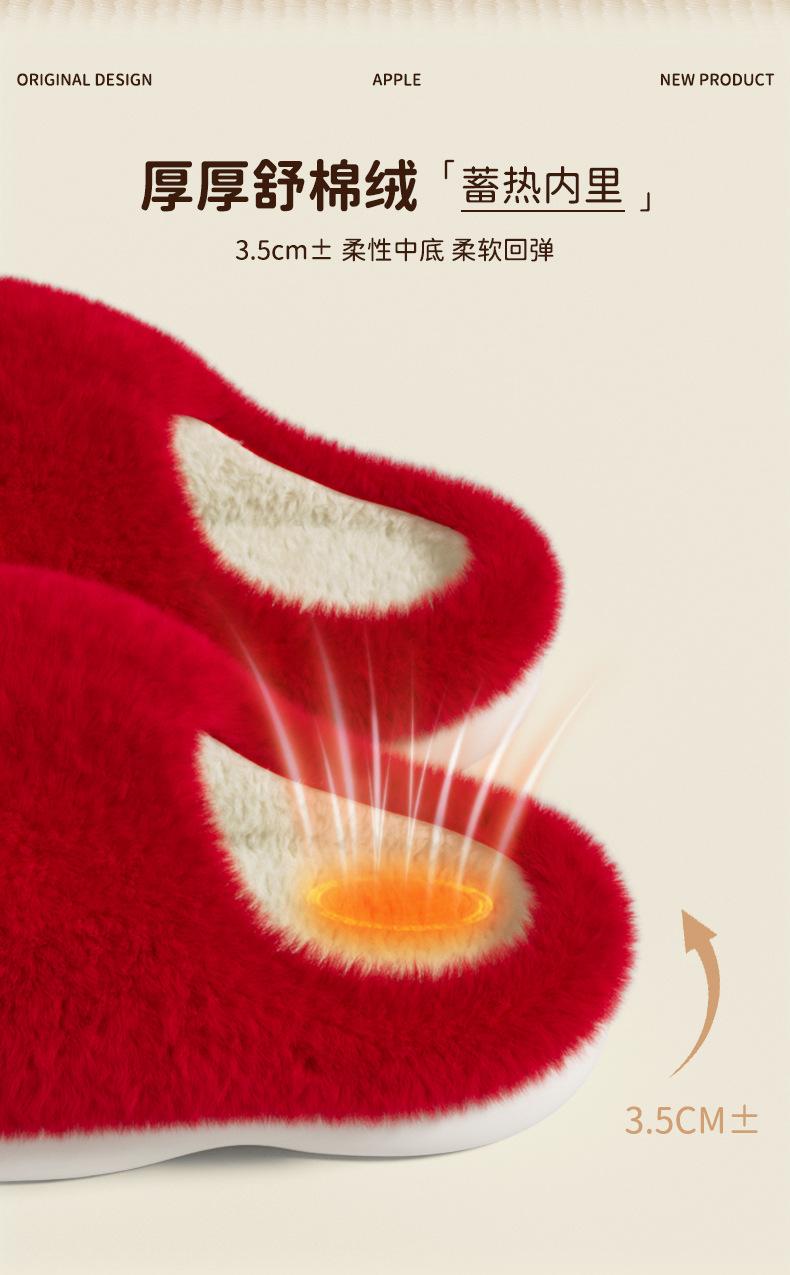 Pantuflas de Algodón Cabeza de Manzana Grande para Mujer Otoño Invierno Lindo Nuevo Estilo 2025 Interior Casa Gruesas de Algodón Felpa Pantuflas Peludas para Estudiantes