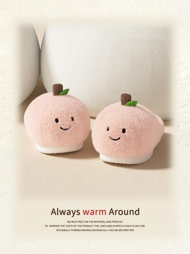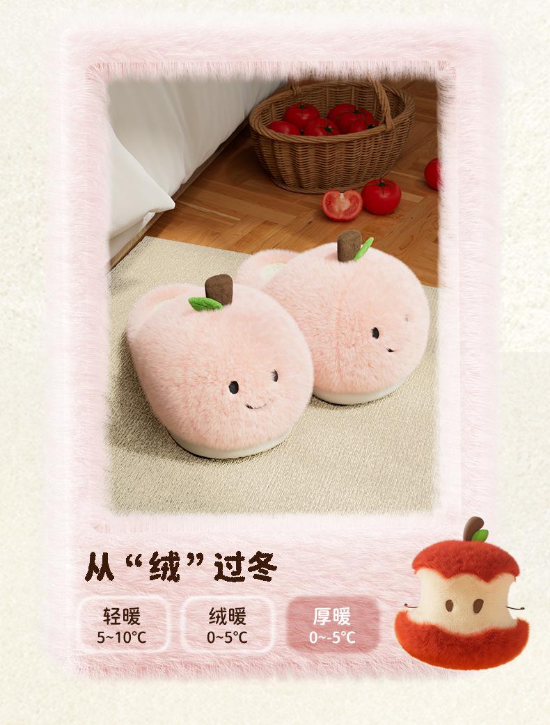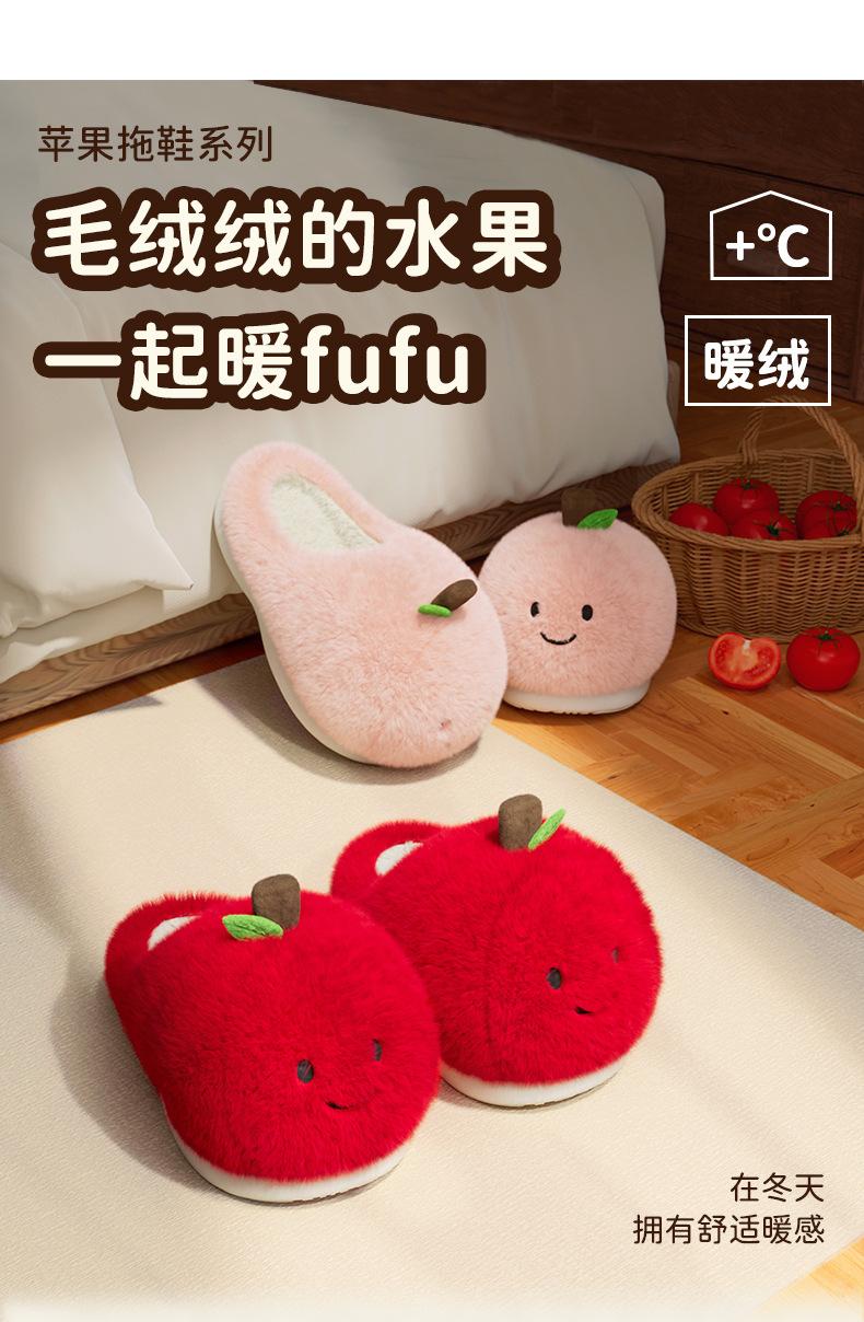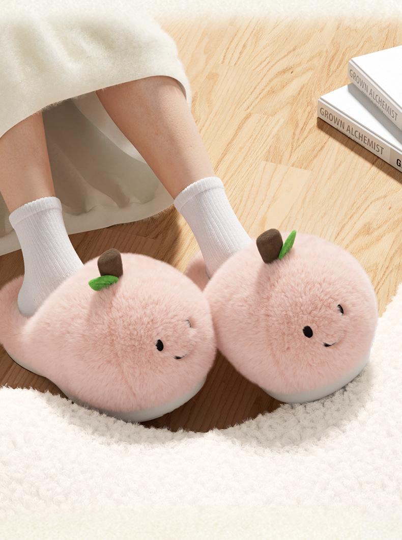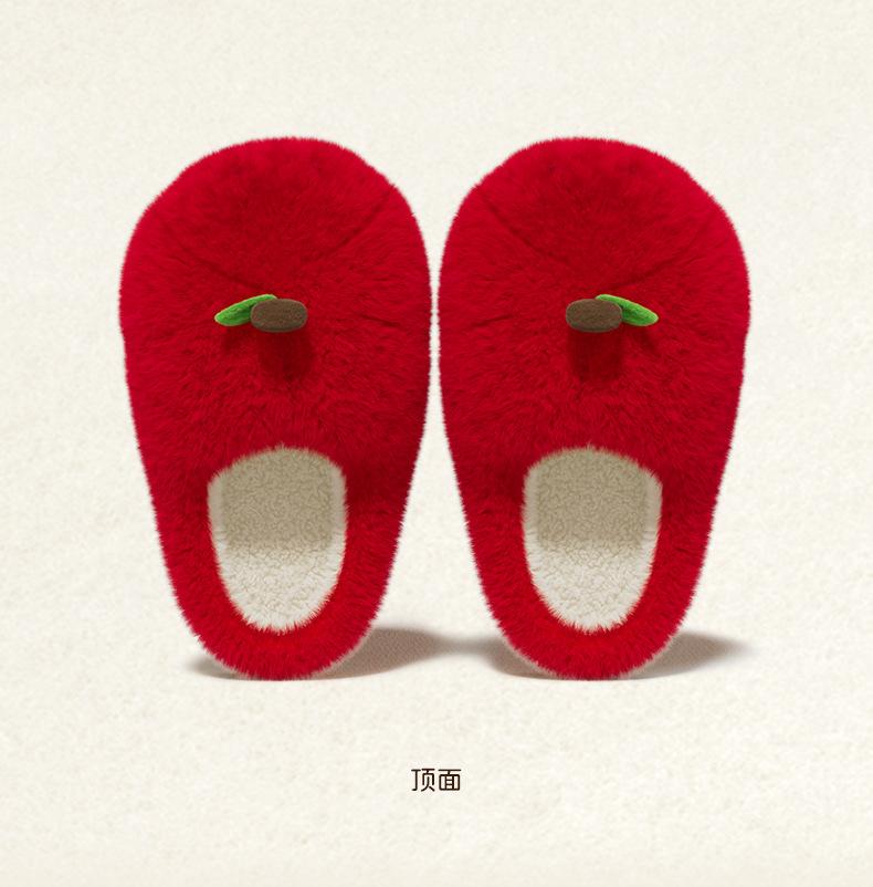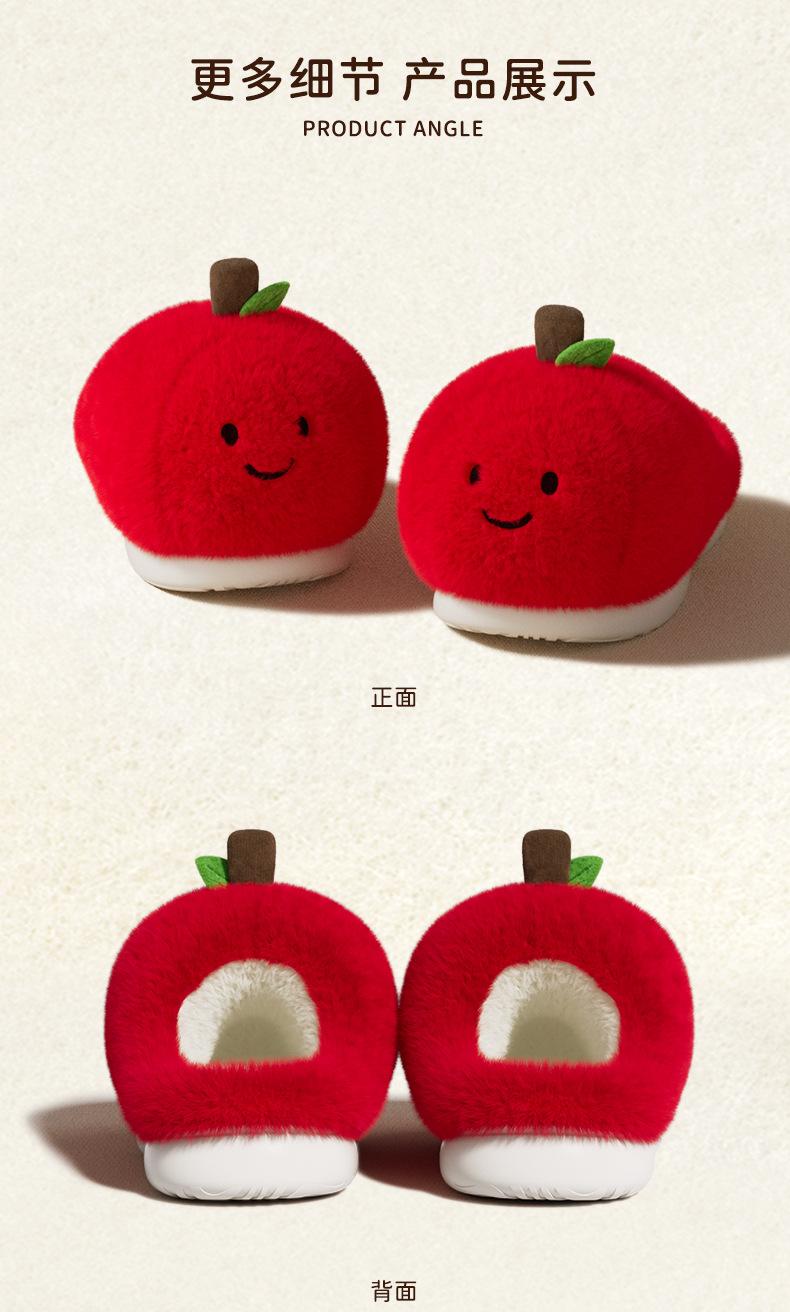 Pantuflas de Algodón Cabeza de Manzana Grande para Mujer Otoño Invierno Lindo Nuevo Estilo 2025 Interior Casa Gruesas de Algodón Felpa Pantuflas Peludas para Estudiantes