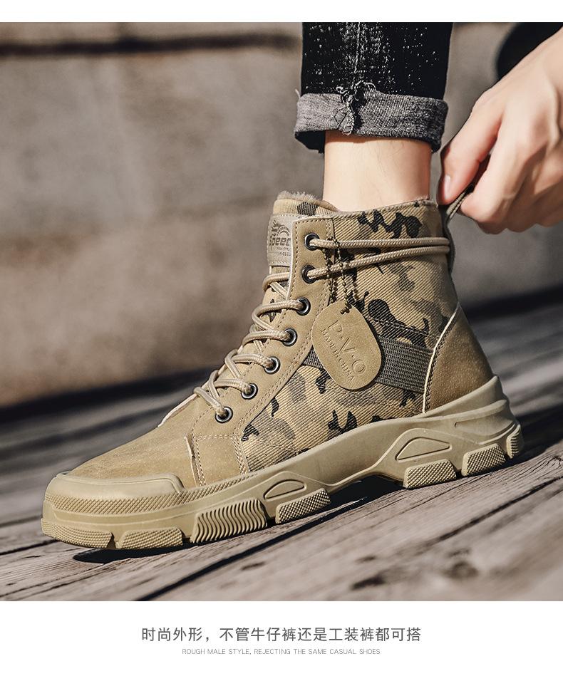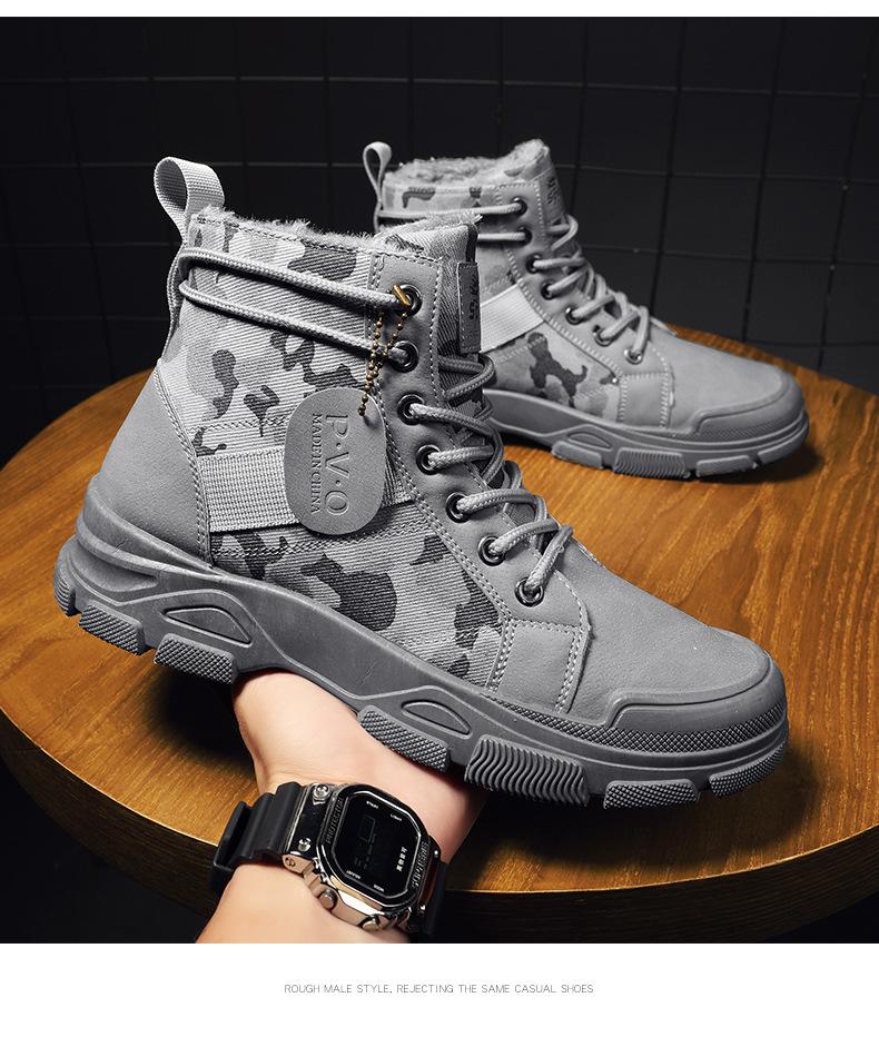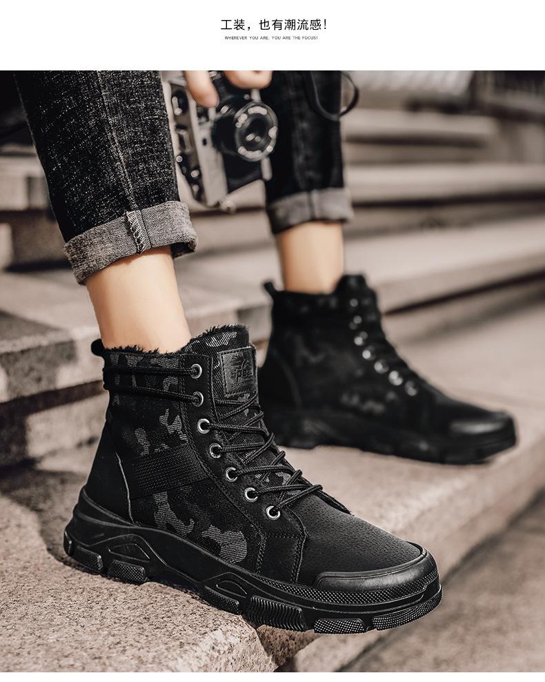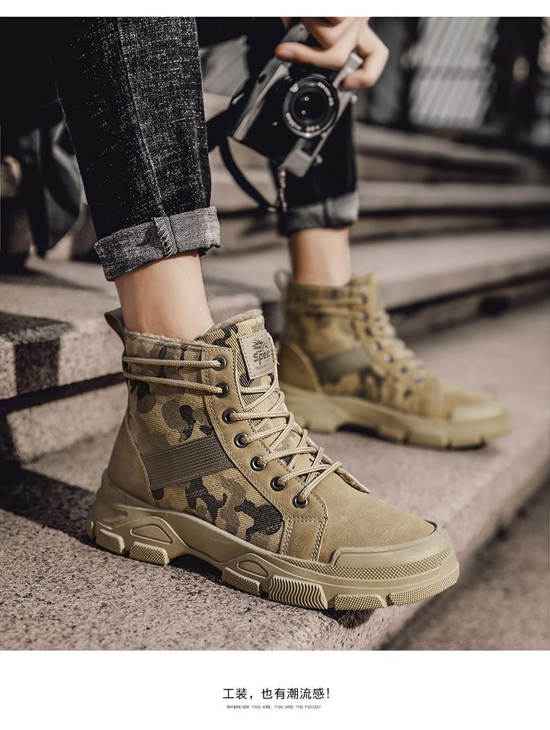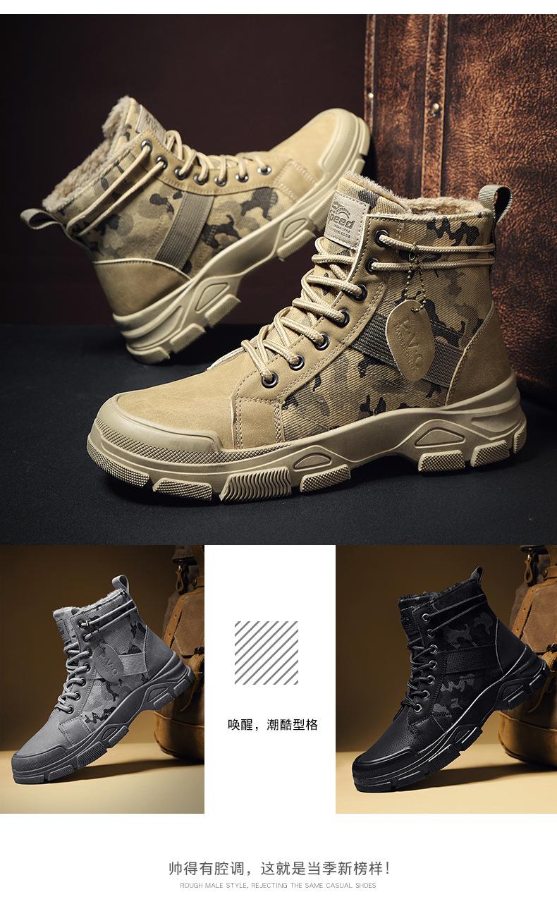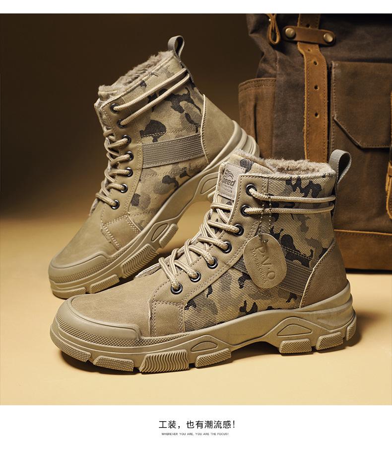Zapatos de Hombre Populares en Douyin 2025 Zapatos de Algodón con Forro Polar Invierno Cálido Camuflaje Botas de Trabajo Ropa Deportiva Casual Resistente al Desgaste Zapatos de Moda