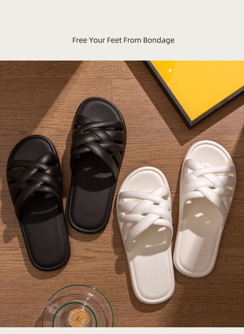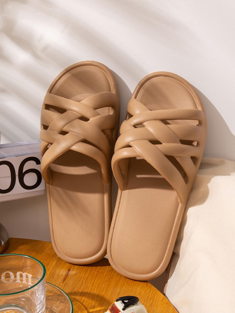 Gran Venta 2025 Nuevas Pantuflas Cruzadas para Mujer Verano Hogar Interior Baño Antideslizantes Pantuflas Desgastables para Mujer