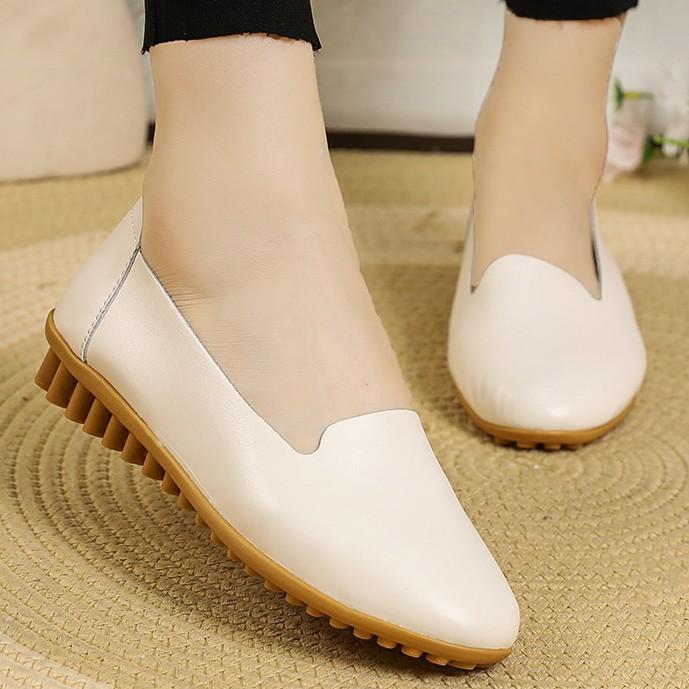 Mocasines de Cuero Suave Mujer Slip-on Suela Suave Cuero Suave Zapatos Casuales Planos Mediana Edad y Adultas Mayores Cómodos Zapatos Individuales de Mamá Nuevos de Mujer