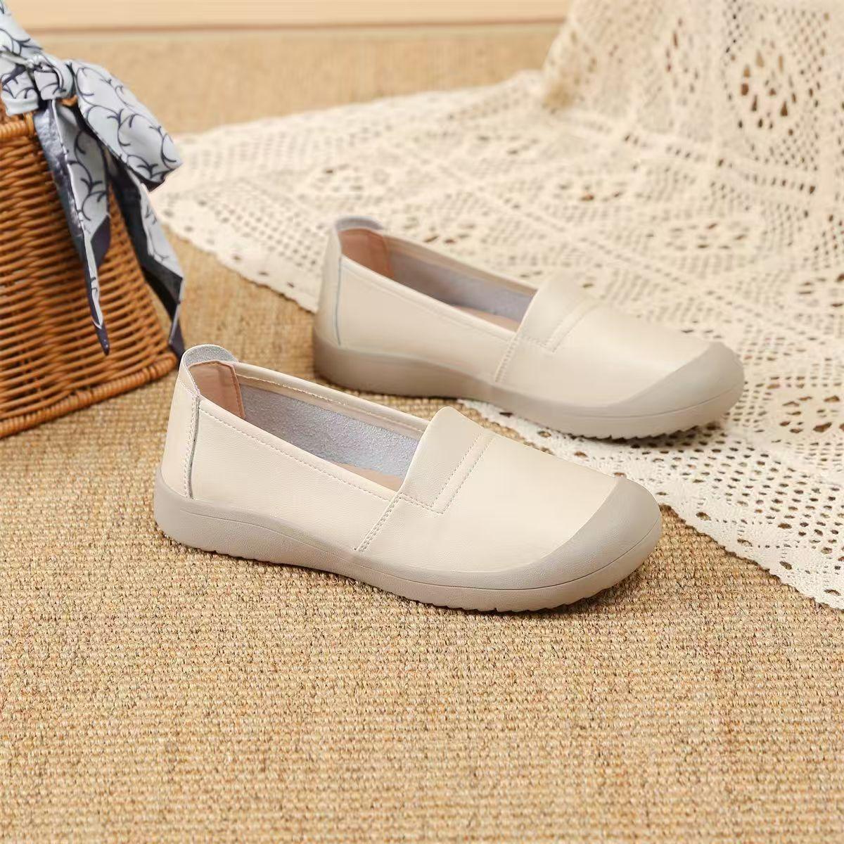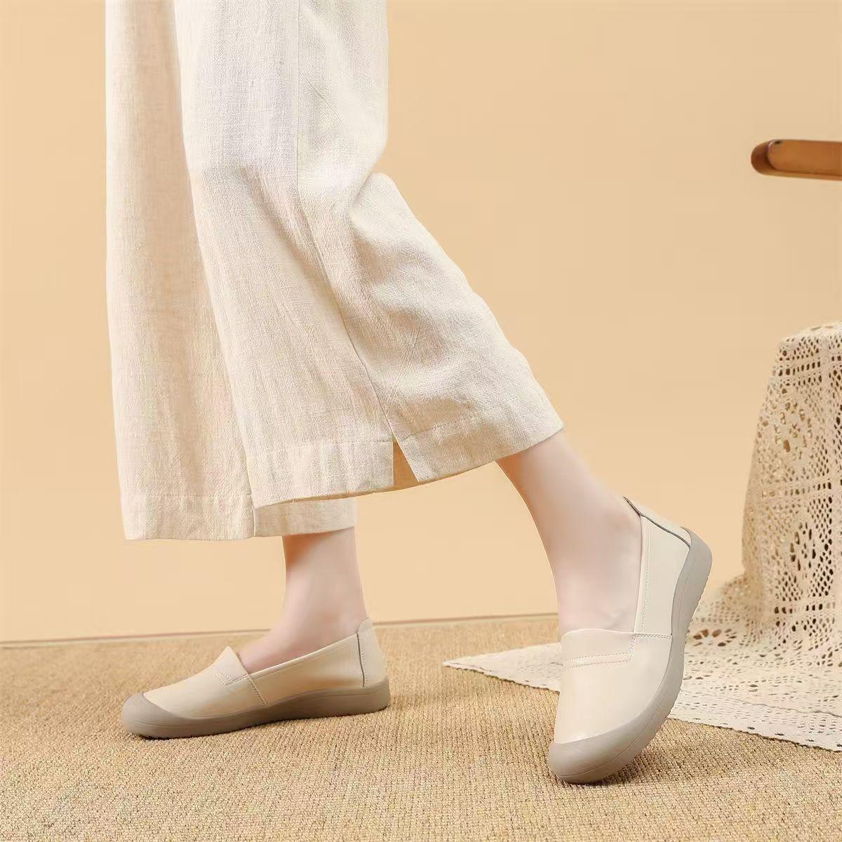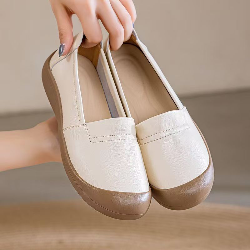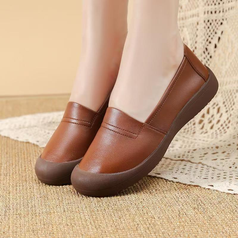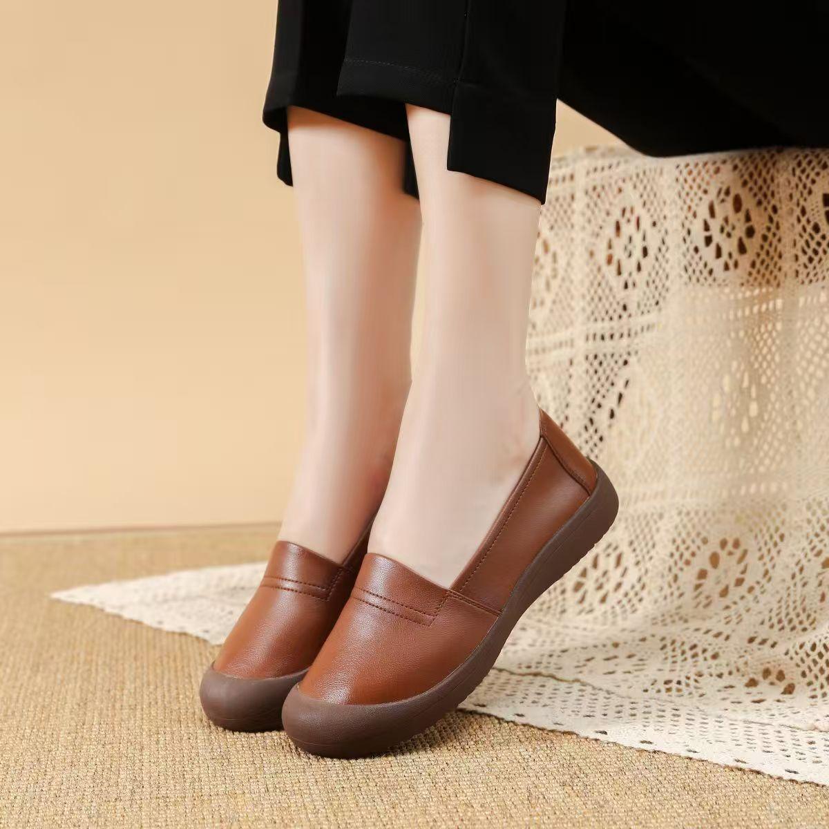 Mocasines para mujer 2025 nuevo estilo cuero impermeable antideslizante tendón suela blanda otoño versátil cómodos zapatos de mamá perezosa