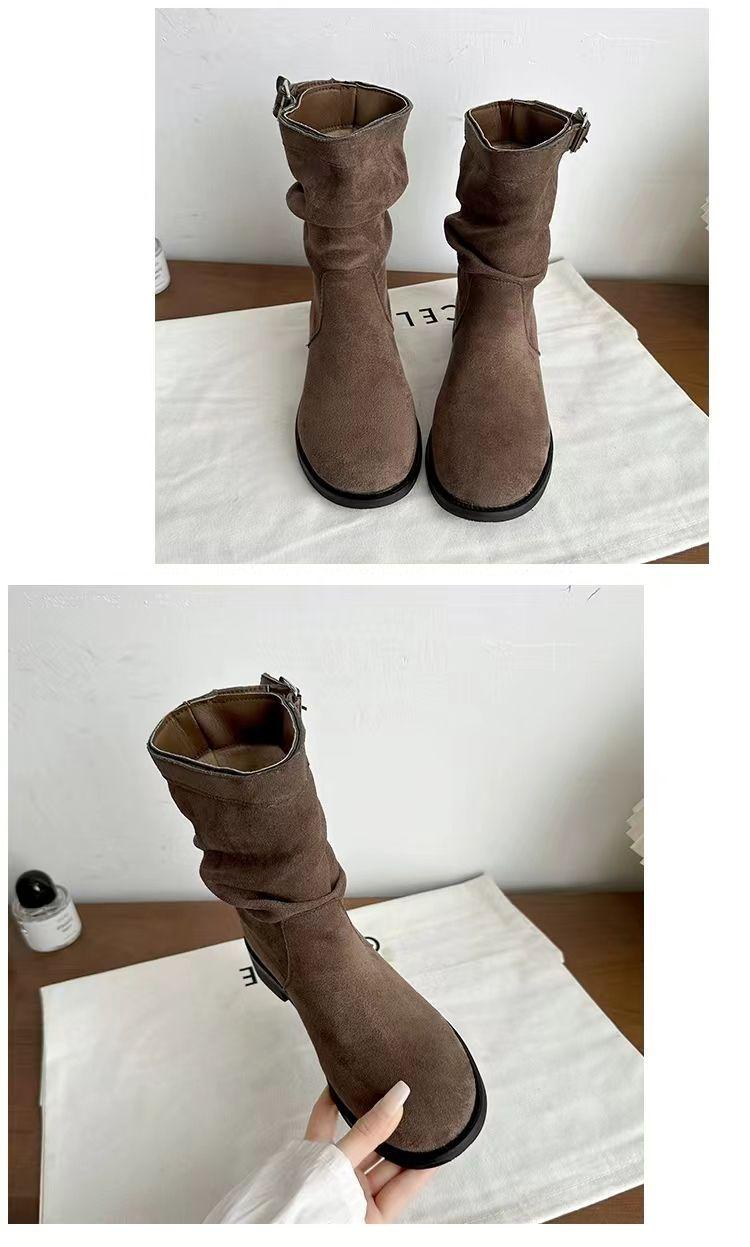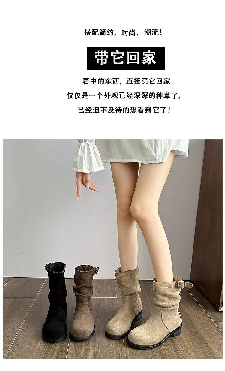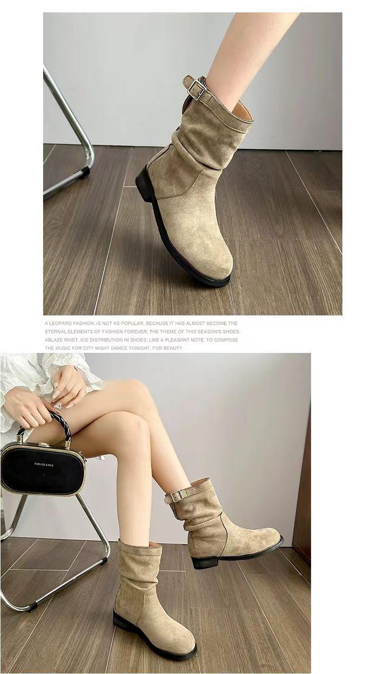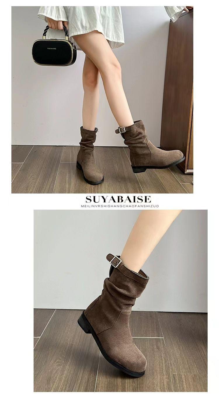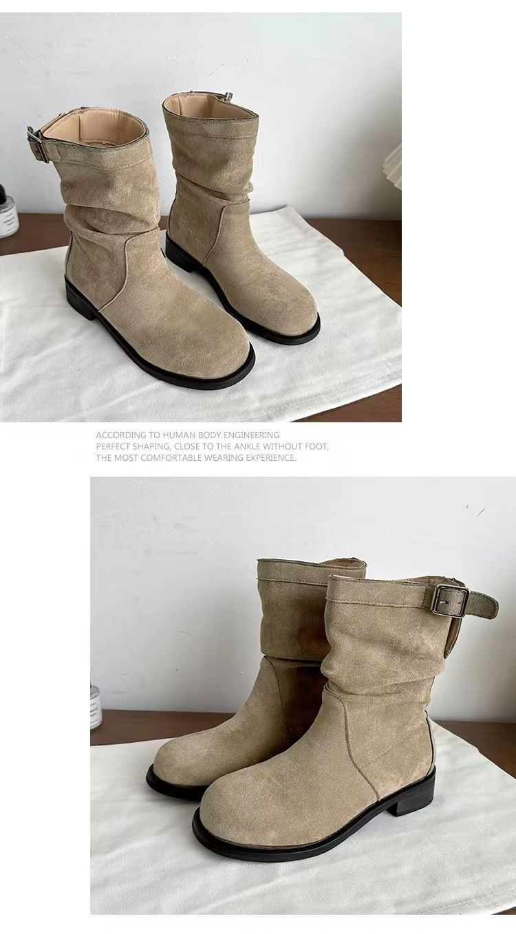 Botas Martin de Tacón Grueso Estilo Británico Retro para Mujer 2024 Otoño/Invierno Nuevas Botas Adelgazantes Apiladas de Media Caña Botines Slip-On