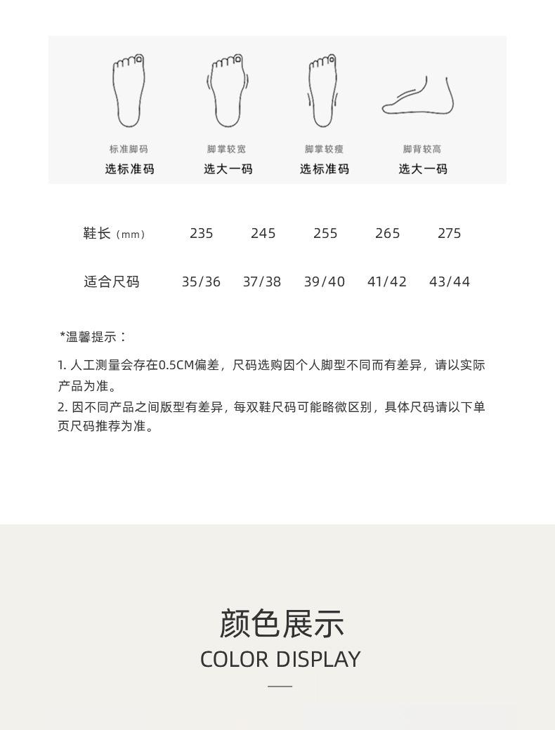 235 (suitable for size 35-36), 245 (suitable for size 37-38), 255 (suitable for size 39-40), 265 (suitable for...